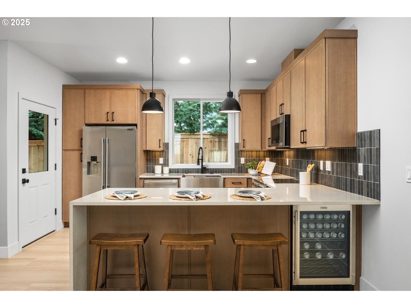 Enjoy living in Kenton, one of Portland's fabulous historical neighborhoods! Located just a block from the nearly 13 acre Kenton City park and nearby main street- a sliver of an urban oasis with a wonderful mix of residential and inviting local shops and restaurants. This home is beautifully designed, constructed and appointed living spaces at their best! Thoughtful details and space saving features, such as high-end appliances and large double stainless farmhouse double bowl sink, mini-split heating and cooling, built in vacuum system, outdoor fans, in counter mini-beverage refrigerator, artful finishes from flooring to counters, tile and more. Situated in a very private setting. [Home Energy Score = 10. HES Report at https://rpt.greenbuildingregistry.com/hes/OR10242742]