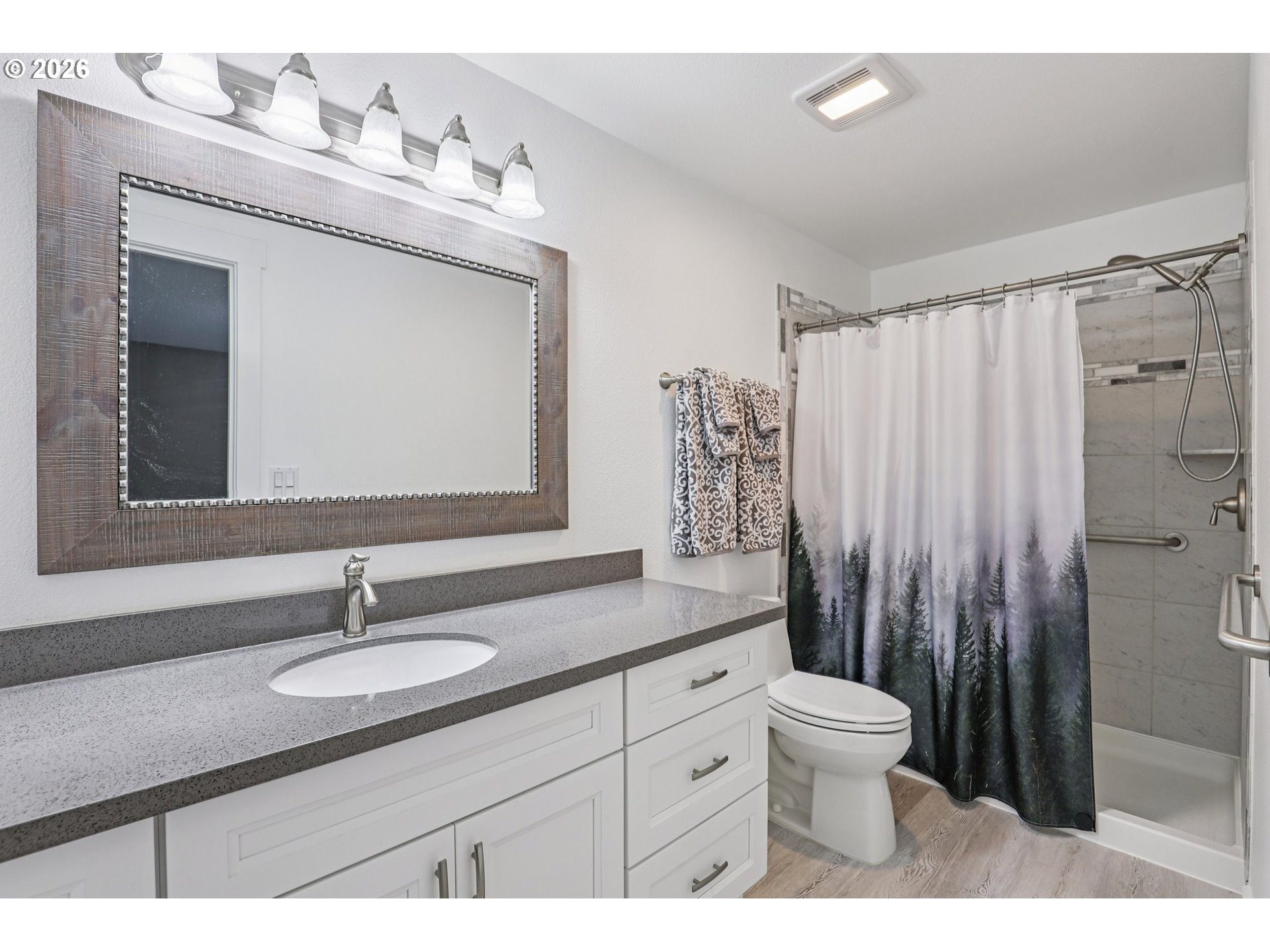 Beautifully remodeled home on a fully usable 0.6 acre lot in Scappoose. This property has been thoughtfullyupdated throughout and is truly move-in ready. The grounds are meticulously maintained with a clean,manicured feel that stands out immediately upon arrival.The home offers 1,306 square feet with 3 bedrooms and 2 bathrooms, featuring a functional layout and qualityfinishes. The setting provides a great balance of comfort and space, with room to enjoy both indoor and outdoorliving.Outside, the property is fully fenced and includes a patio area, RV parking, and two outbuildings for additionalstorage or workshop. The yard features established blueberries and fruit trees along with a sprinkler system tokeep everything looking its best. Additional features include a well, sewer system, and wiring for a built-invacuum.A rare opportunity to own a clean, fully updated home on a spacious lot with room to spread out.