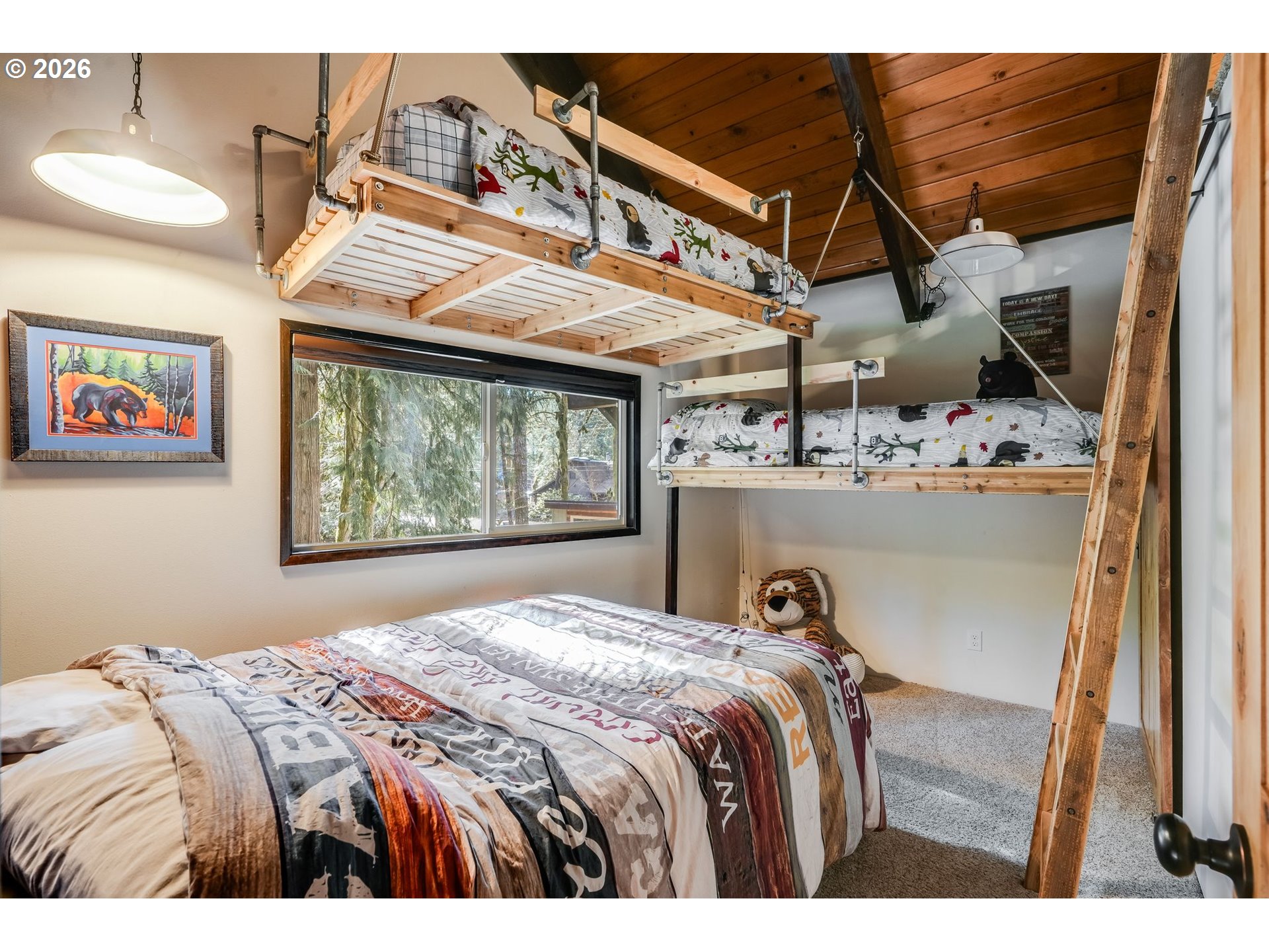 Tucked into the natural beauty of Mt. Hood, this remodeled 3-bdrm, 2 bath cabin blends rustic charm with modern comfort—inviting you to slow down and fully embrace mountain living. Step inside to a full down-to-the-studs renovation (2017) that transformed the home into a warm and welcoming retreat. Updated sheetrock replaced original paneling, while electrical and plumbing were upgraded. New cabinetry, flooring, tile, lighting and fixtures create a fresh yet timeless feel, complemented by updated windows that frame the surrounding landscape and bring in natural light. The main living space is designed for gathering, anchored by a propane fireplace insert that adds both ambiance and efficiency. Thoughtful details throughout—including custom bunk bed frames and updated finishes—enhance both function and style. An auxiliary kitchen addition expands the home’s versatility, offering flexible living options ideal for guests, multi-generational use or a private retreat space. Set on one of the largest lots in the area, the property offers a rare sense of space and privacy, complete with a small creek running through, fencing along the sides and a private gated entry. Custom stone pillars with integrated lighting create a welcoming sense of arrival, while the grounds provide room to relax, entertain, and enjoy the outdoors, along with a storage shed for added convenience. A standout feature is the impressive 20’ x 40’ outbuilding (2020), offering flexibility with garage space and a finished area currently used as a game room—perfect entertaining or additional storage. Enjoy access to HOA amenities including a pool, lodge, tennis courts and parks enhancing the overall lifestyle of this unique mountain community. Extensively well maintained, this home offers a move-in ready feel while still capturing the essence of a Mt. Hood retreat. Ideal as a full-time residence, weekend getaway or STR investment. Most furnishings are negotiable, creating a turnkey opportunity.