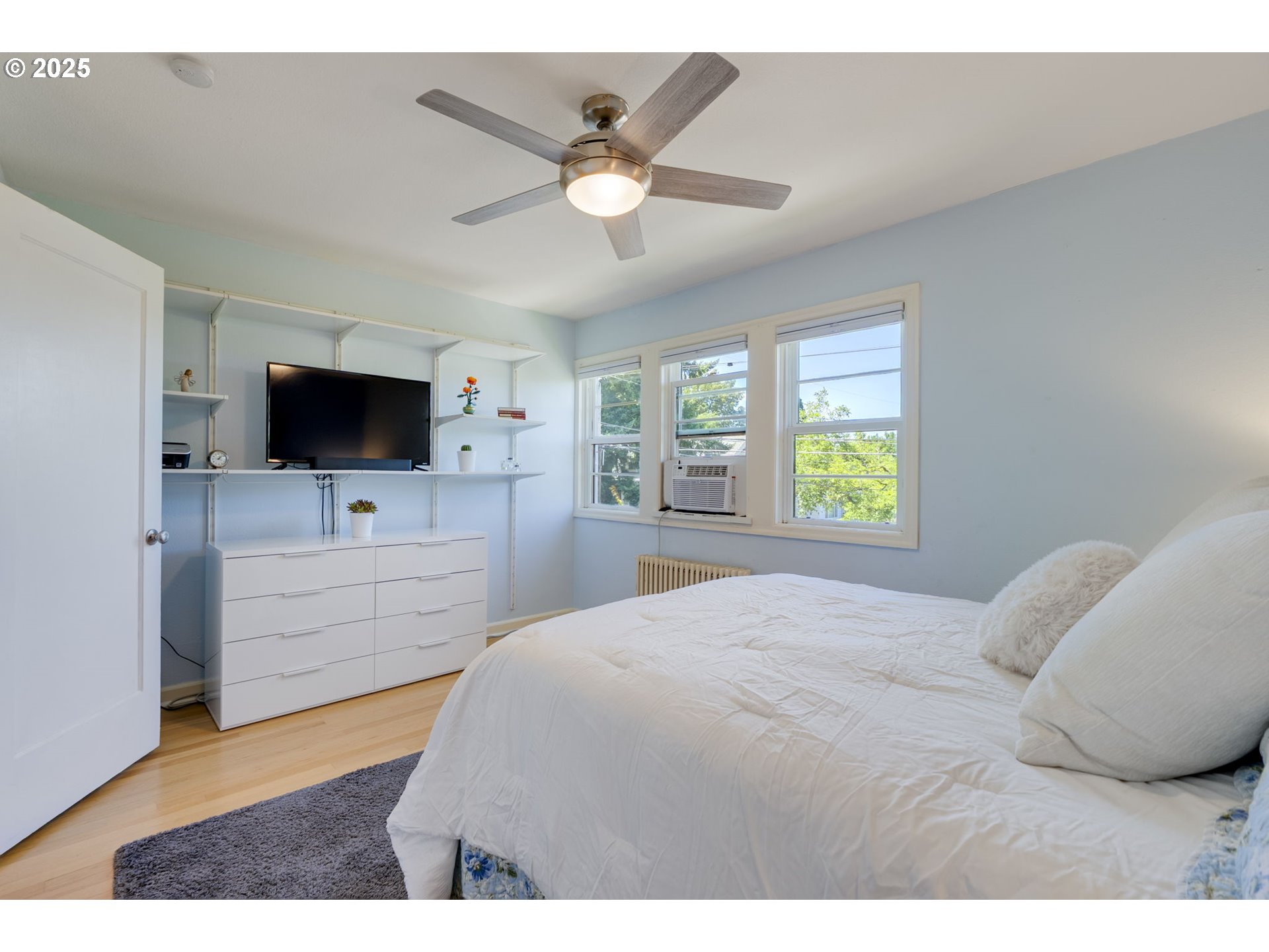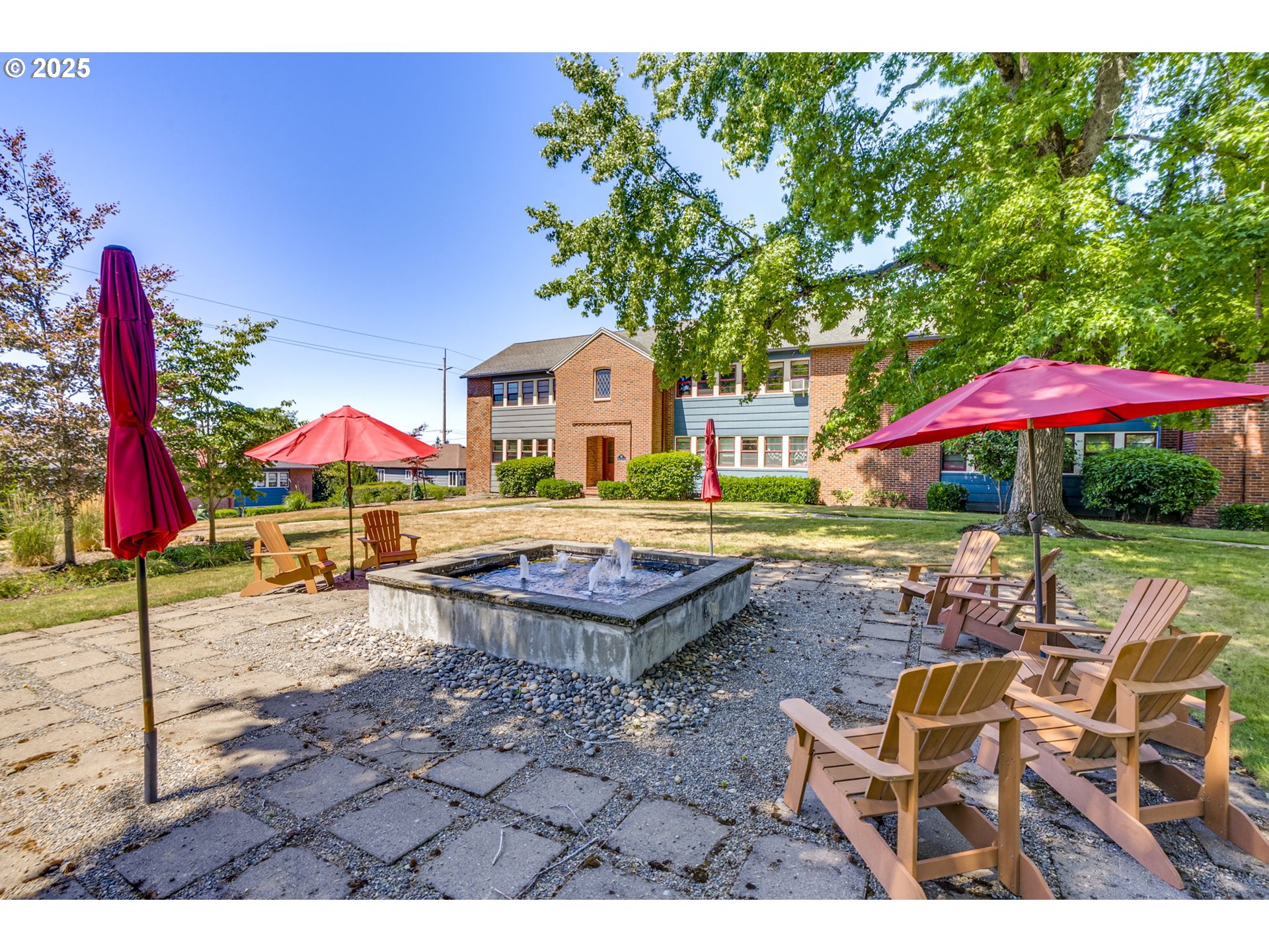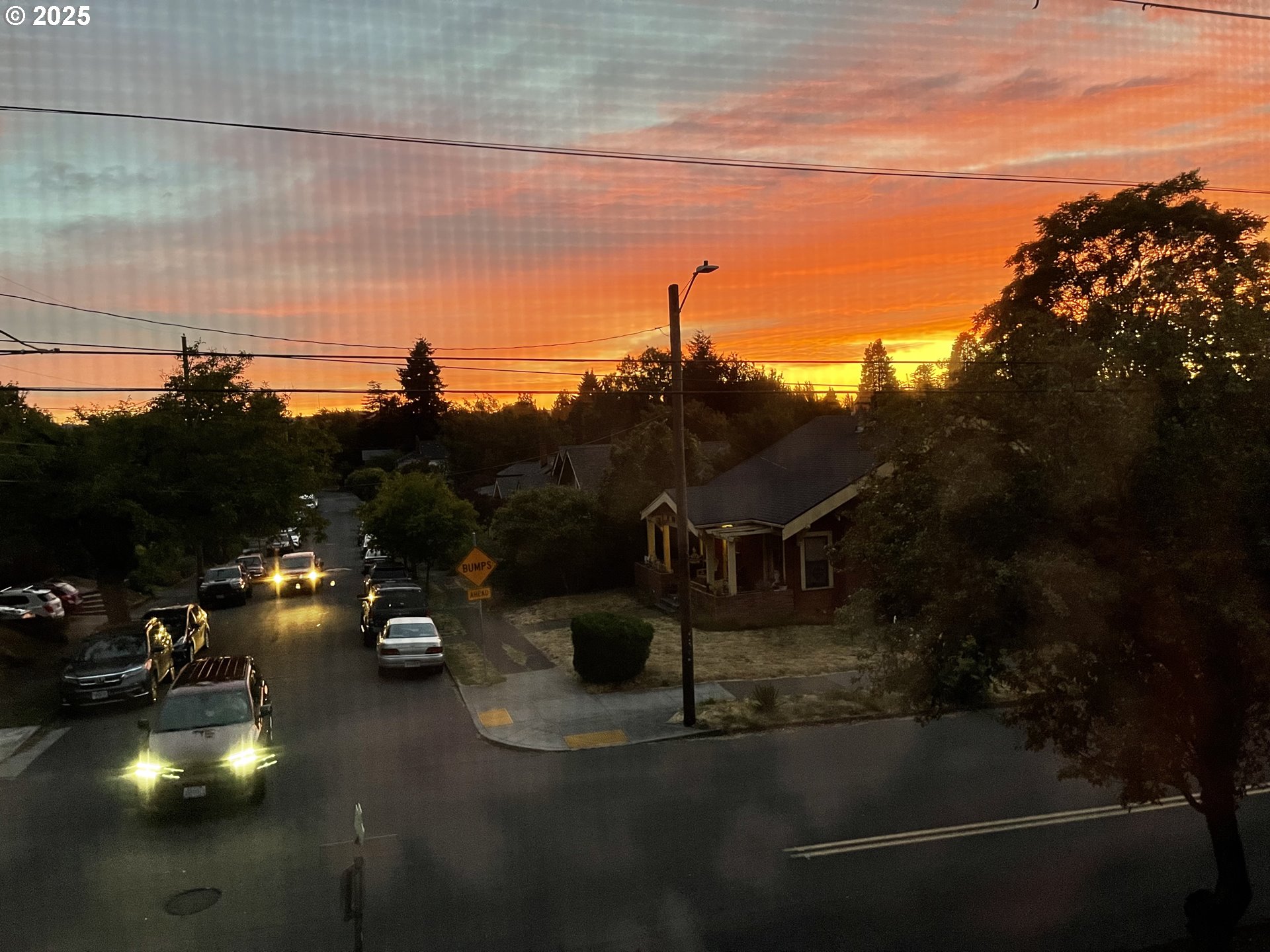 Welcome to The View Condos— Where the saying “They just don’t build them like they used to” really hits home. This charming, well-loved, and well-managed community in North Tabor offers a peaceful, convenient lifestyle in one of Portland’s most connected neighborhoods. This second-floor unit feels like a quiet retreat, with no shared walls, beautiful natural light from both east and west-facing windows, and incredible sunset views. Inside, you'll find thoughtful updates like new windows, a stylish bathroom refresh, Bosch washer/dryer, new dishwasher, and custom-built-ins in the dining room. The hardwood floors add warmth, and the cozy radiant heat (included in the HOA dues!) makes it feel like home year-round. The kitchen blends charm and function with a gas range, vintage marmoleum flooring, and tiled counters.You’ll love the spacious layout, with two generous bedrooms, great closet space, and bonus storage in the basement. Window AC units are included, and your deeded parking spot is just steps away.Enjoy the lush, shared courtyard with its shady trees, fountain, and lounge chairs—a true community gathering space. With a 79 walk score and 78 bike score, you're blocks from groceries, coffee shops, restaurants, and just minutes to both Laurelhurst and Mt. Tabor Parks. Plus, you're only 8 blocks from Providence Portland Medical Center and 3 blocks from I-84—location really doesn’t get more central. Book a tour today!
