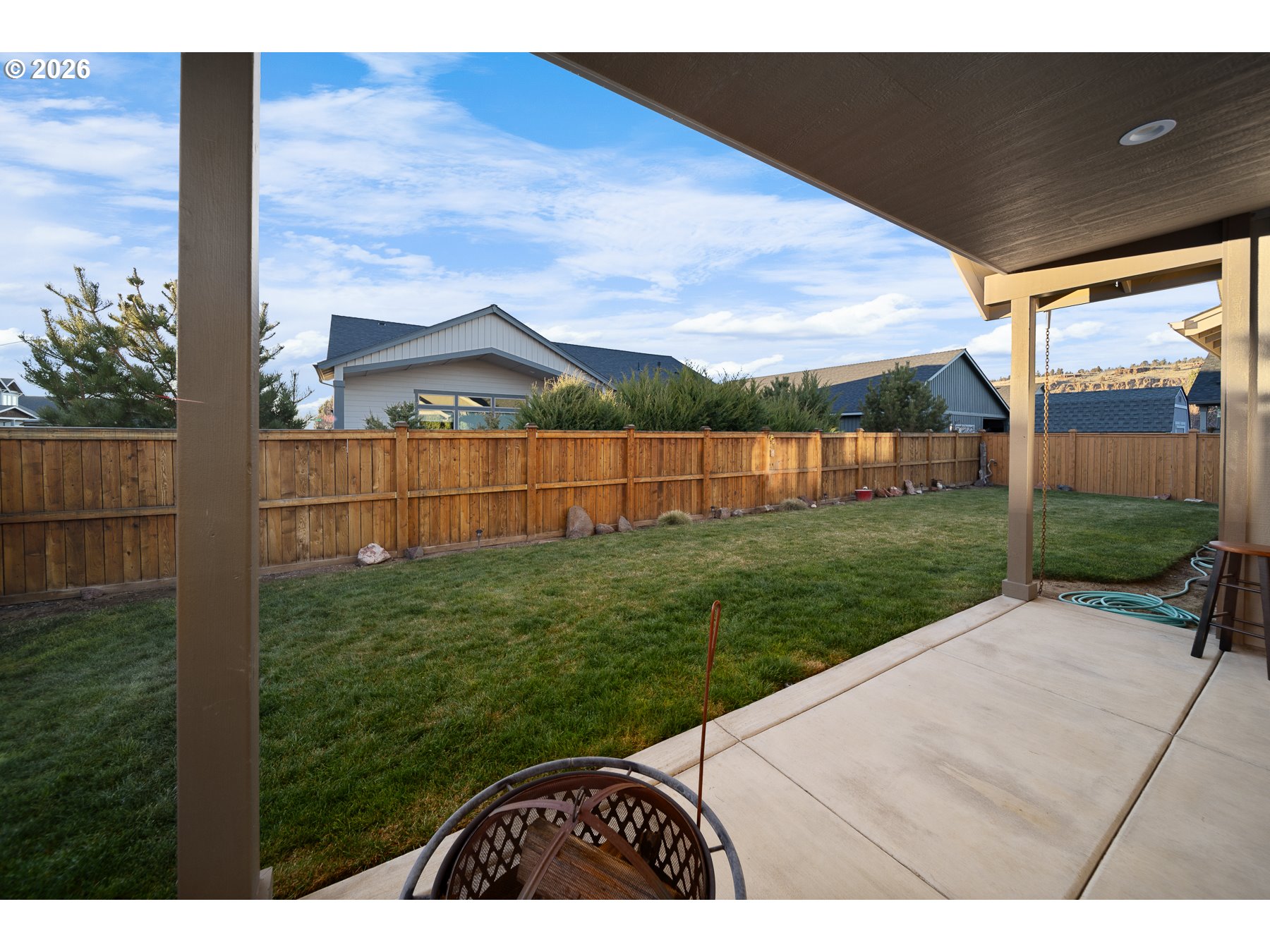 Built in 2021 and located on a desirable corner lot in Prineville’s Crystal Springs neighborhood, this single-level home offers modern comfort with a thoughtful, open layout. With 1,775 square feet, 3 bedrooms, and 2.5 bathrooms, the design features a private primary suite separated from the additional bedrooms—ideal for both everyday living and hosting guests. The great room is filled with natural light and anchored by a gas fireplace, creating a warm and inviting space that flows seamlessly into the kitchen. Enjoy stainless steel appliances, a large island with breakfast bar seating, solid surface countertops, and generous cabinet storage. Step outside to a covered back patio overlooking a fully fenced, landscaped yard, perfect for relaxing or entertaining year-round. Additional highlights include central air conditioning, natural gas furnace, double-pane windows, and an attached two-car garage. This move-in ready home offers the ease of newer construction without the wait. A rare opportunity for single-level living in one of Prineville’s most desirable neighborhoods.