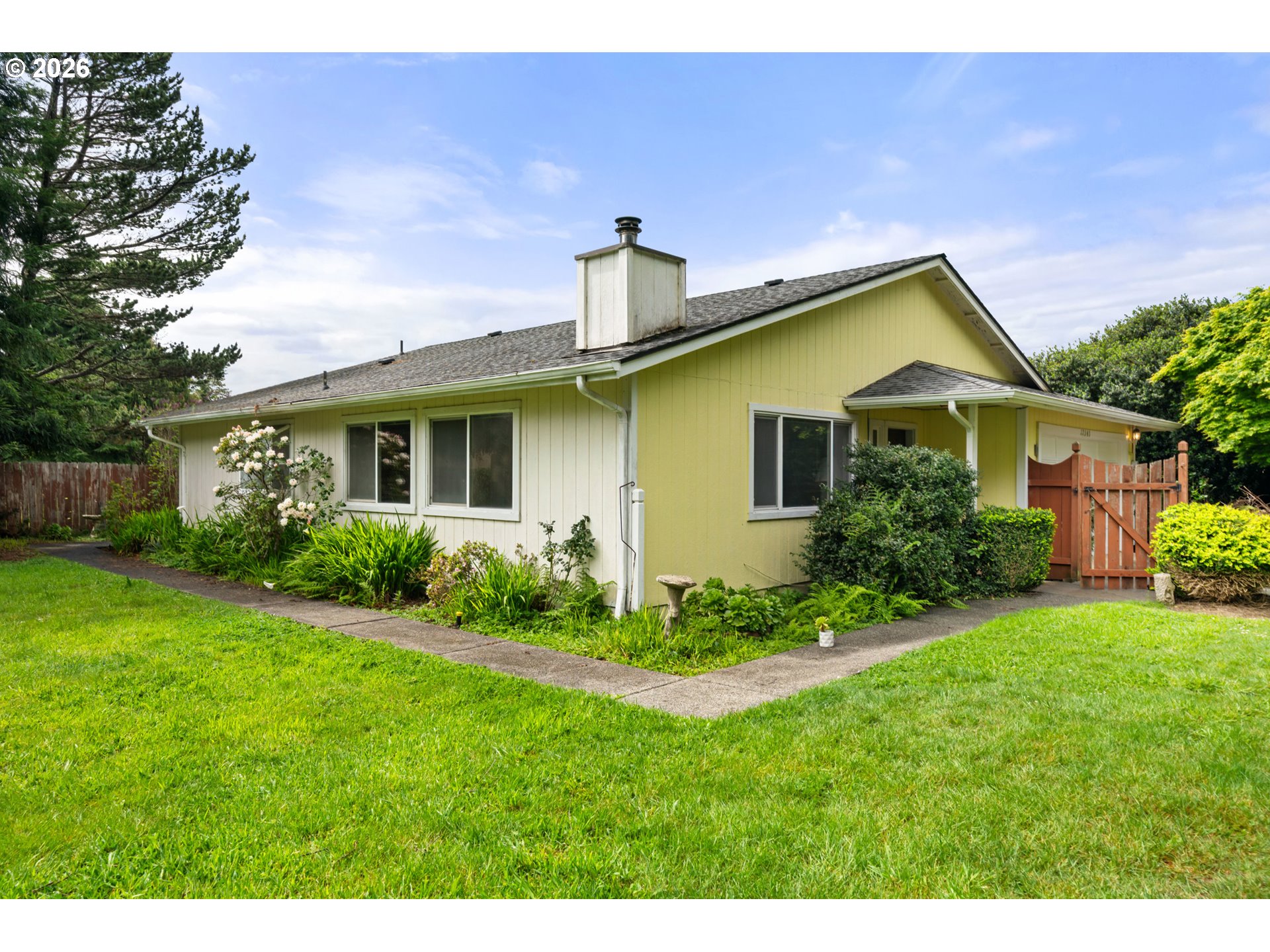 Tucked quietly within a charming coastal community, this adorable cottage-style home is one of those rare finds you don’t even realize is there, until you do. Surrounded by lush greenery and set back for privacy, it offers that peaceful, hidden retreat feel while still being right where you want to be.Just blocks from million dollar oceanfront homes...yes, that speaks volumes! This location delivers both lifestyle and long term value. Enjoy an easy walk or bike ride to Harris Beach State Park, one of the most iconic photographed areas on the Southern Oregon Coast.Inside, the home has been thoughtfully refreshed with new interior and exterior paint, along with updated laminate flooring in the kitchen. All appliances are included, making it truly move-in ready or turnkey for your next investment. Step outside to a generously sized, fully fenced yard perfect for added privacy, pets, or hosting those laid back summer gatherings.Picture this: Your coastal home where friends and family gather and your own little cottage retreat to come home to. Whether you're looking for a full-time residence, a vacation escape, or an income producing Airbnb opportunity, this property checks all the boxes.