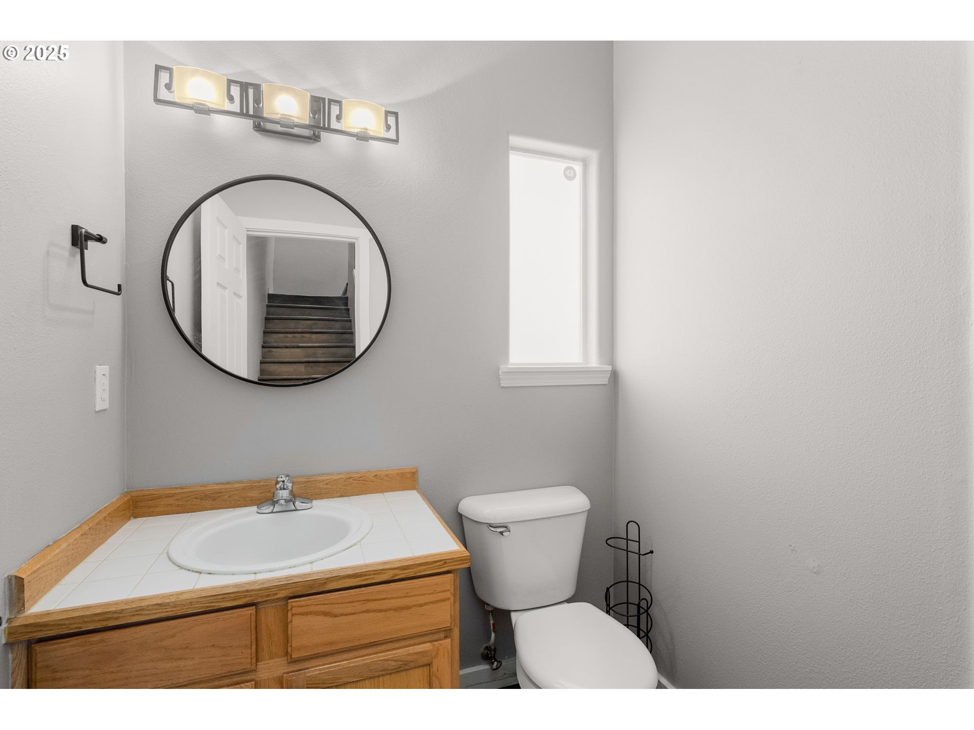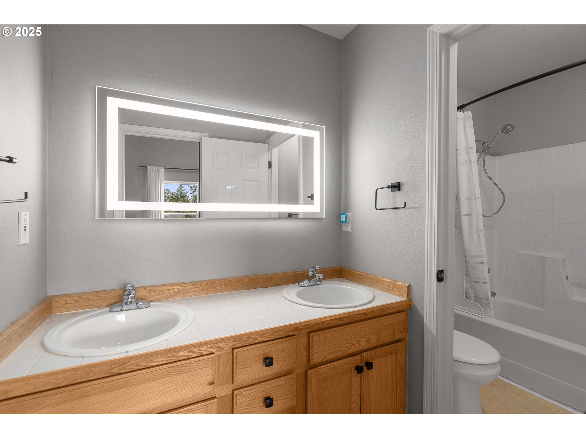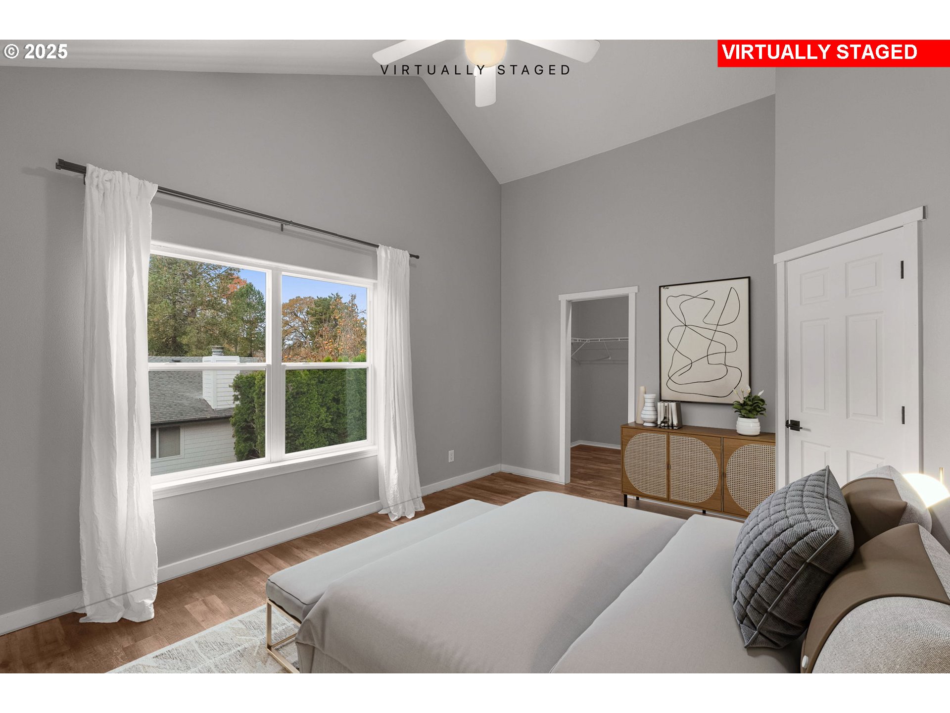 Flooded with natural light, this beautifully maintained home combines comfort and functionality. The open main level features 9-foot ceilings and durable laminate flooring that flows throughout the entire home connects the living, dining, and kitchen spaces in a seamless layout perfect for entertaining. The kitchen is thoughtfully designed with a large island and tile counters, opening to the spacious great room anchored by a cozy gas fireplace. Upstairs, every bedroom feels open and inviting thanks to 14-foot vaulted ceilings. Laminate flooring continues throughout the entire 2nd floor. The primary suite offers a walk-in closet and a private bath complete with a dual-sink vanity and tub/shower combo. The laundry room is conveniently located on the upper level and includes a Whirlpool washer and dryer. Enjoy peace of mind with recent upgrades including new siding, roof, exterior paint, and gutters. The fully fenced backyard provides the perfect private retreat for gardening, play, or outdoor dining. Ideally situated nearby major employers like Nike and Intel, this home is also within vicinity of shopping, dining, Unity Park, and local recreation. With walkable streets, bike-friendly paths, and a welcoming community atmosphere, this property offers the perfect blend of convenience and quality living.