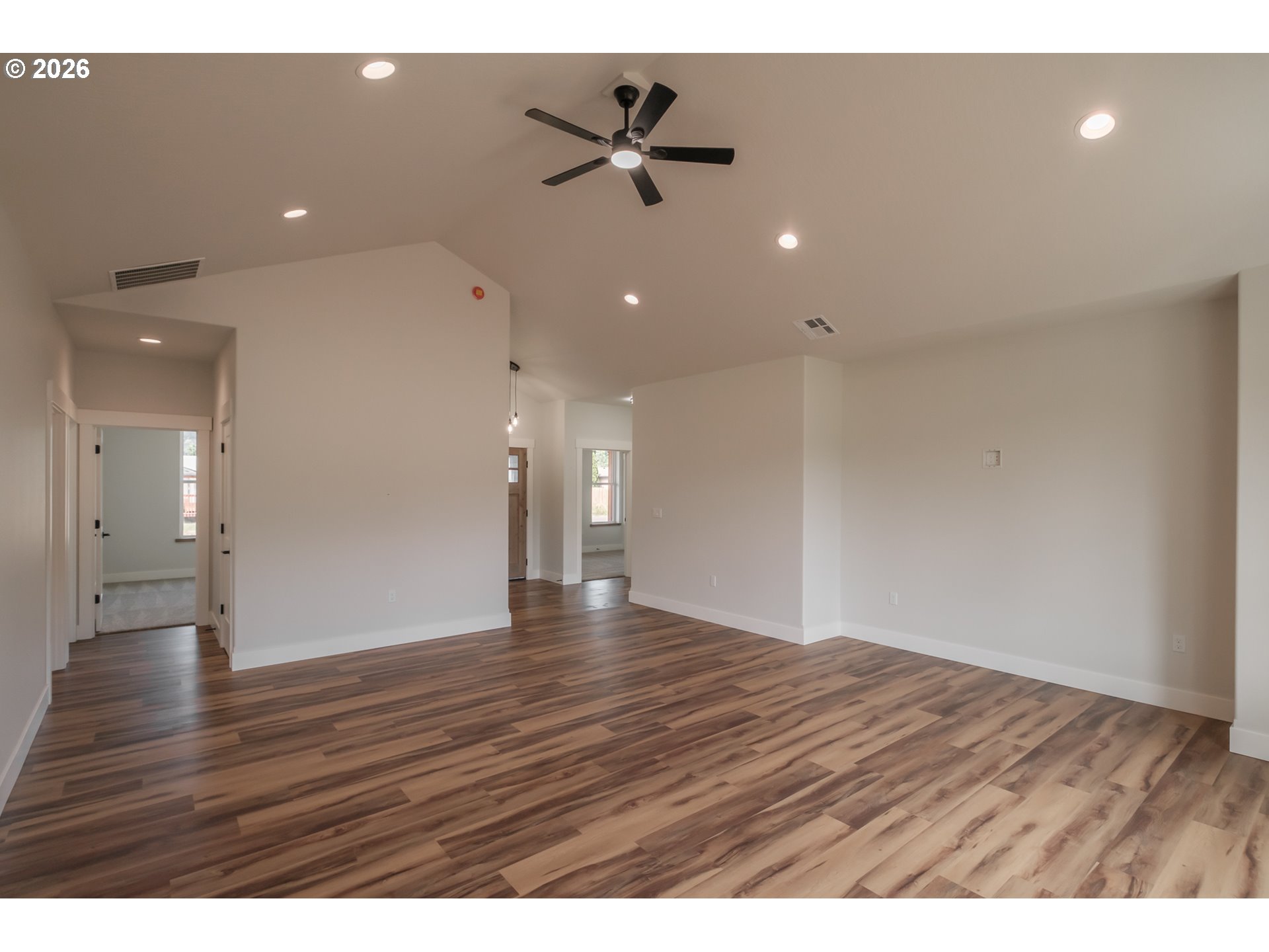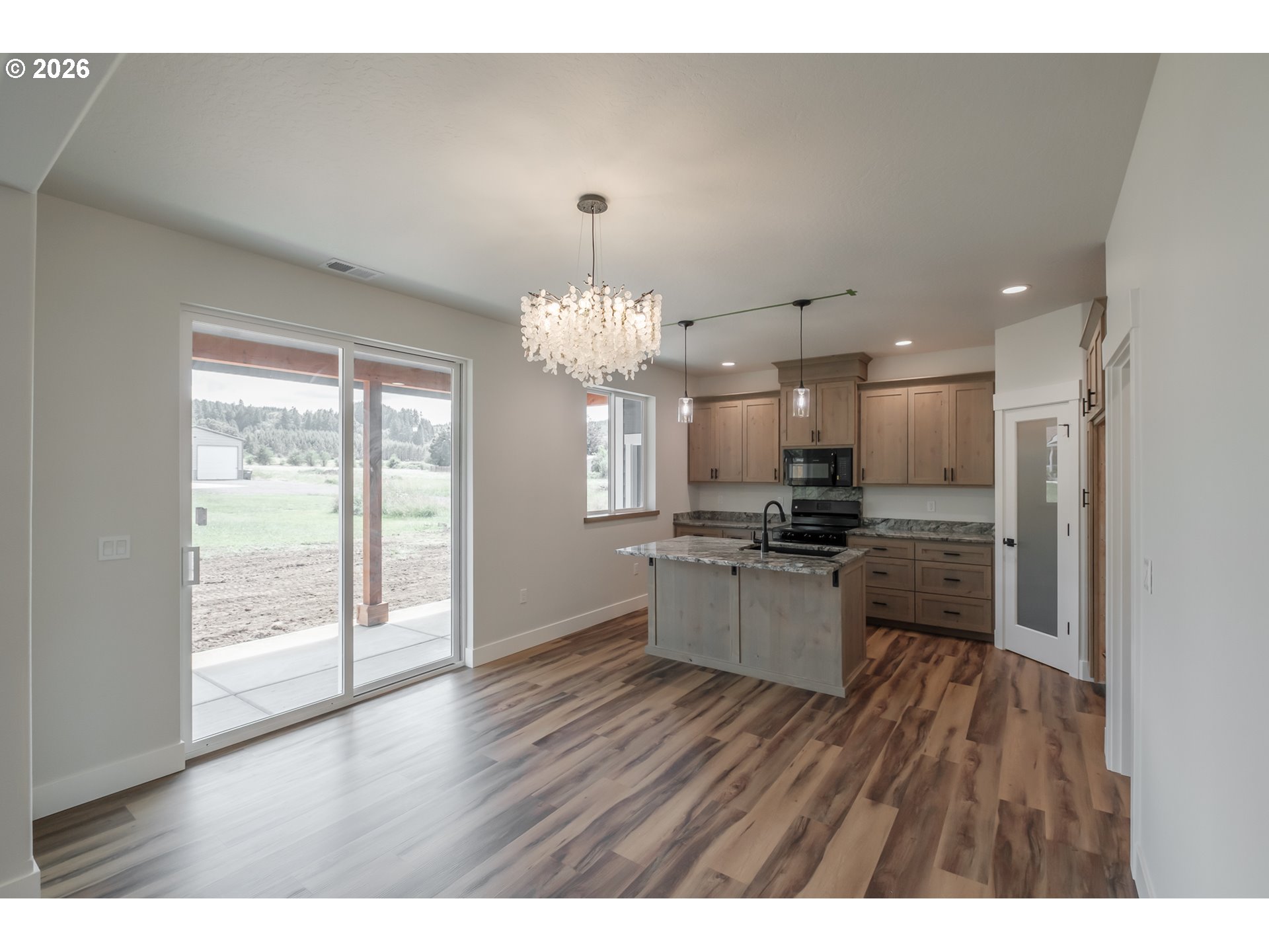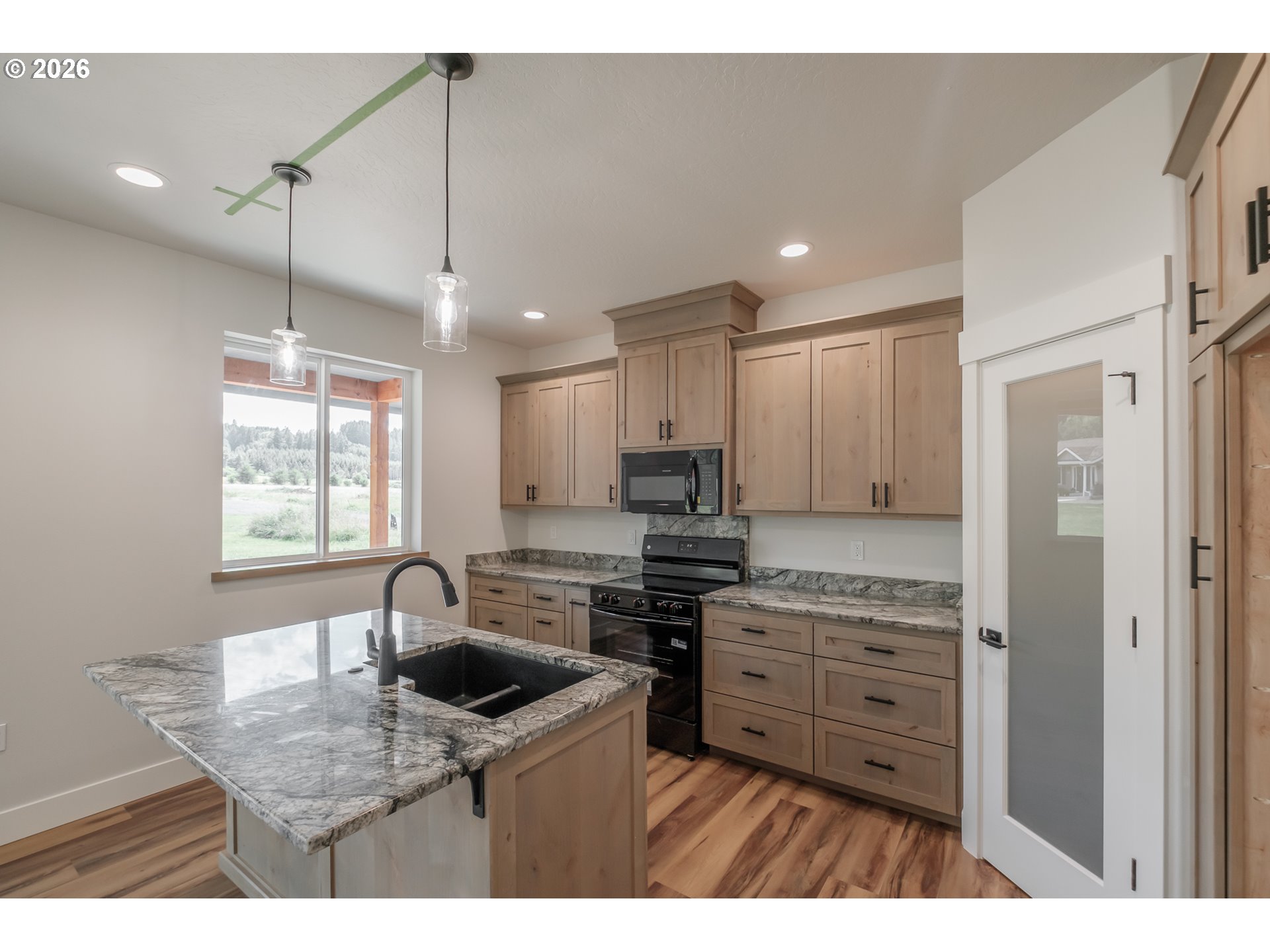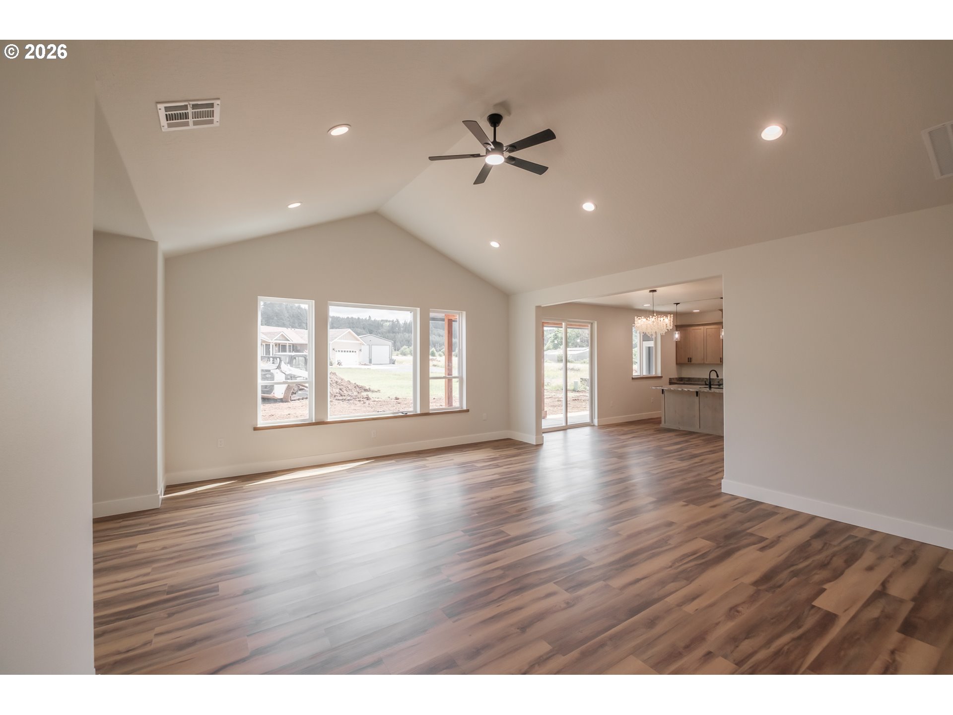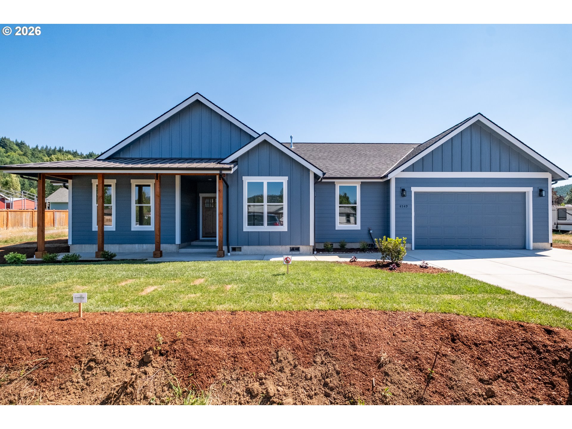 Brand new custom home with high-end finishes and thoughtful design throughout. Step into an open-concept layout with 9-foot ceilings and a vaulted great room that creates an airy, inviting feel. The custom kitchen is built to impress—featuring quality cabinetry with built-in extras, granite countertops, a breakfast bar, pantry, and seamless flow for entertaining. The spacious primary suite offers large windows for natural light, a spa-inspired en-suite with a freestanding soaking tub, separate shower, and a walk-in closet with adjustable shelving. The laundry room is fully equipped with cabinetry, counter space, and a sink for added functionality. Durable LVP flooring runs throughout the main living areas for low-maintenance style. Outside, enjoy a 10x20 covered patio—perfect for relaxing or hosting guests. The garage includes a tandem bay for extra parking or storage, plus pull-down attic access for added convenience. RV parking available. This custom-built home blends comfort, function, and timeless style in one smart package.