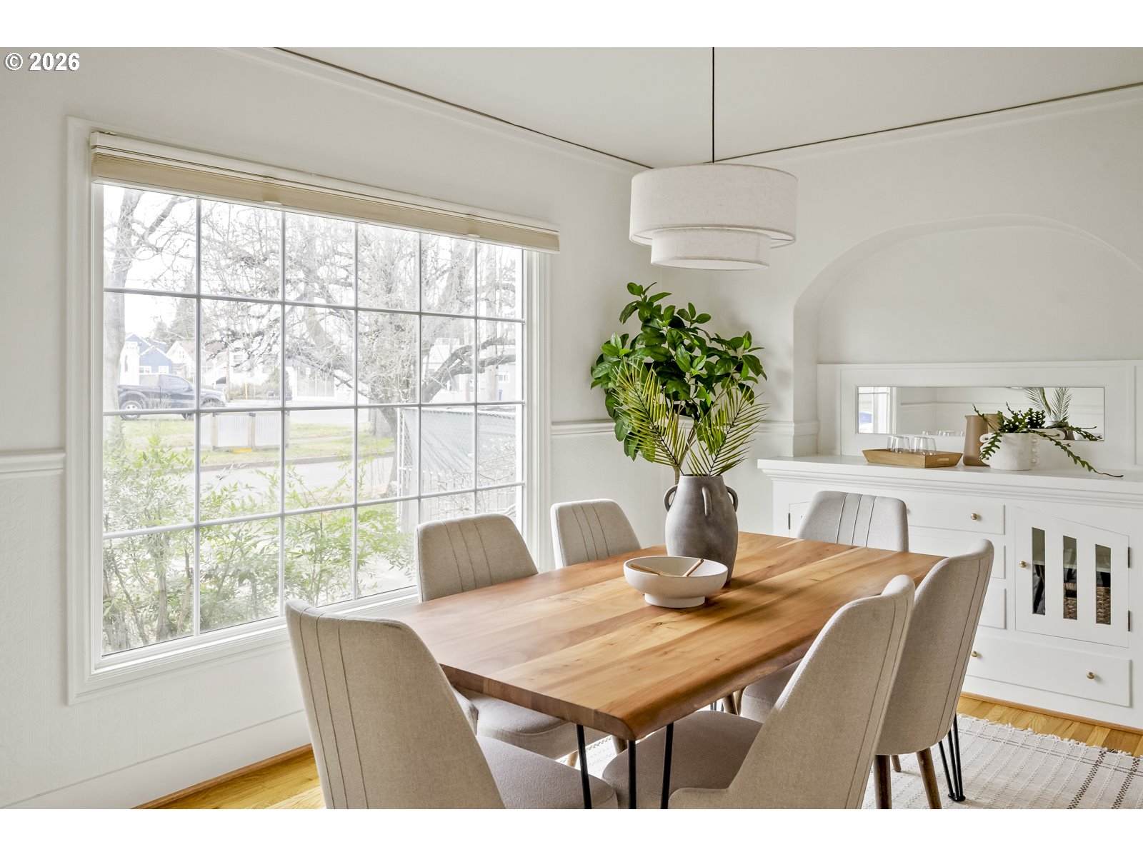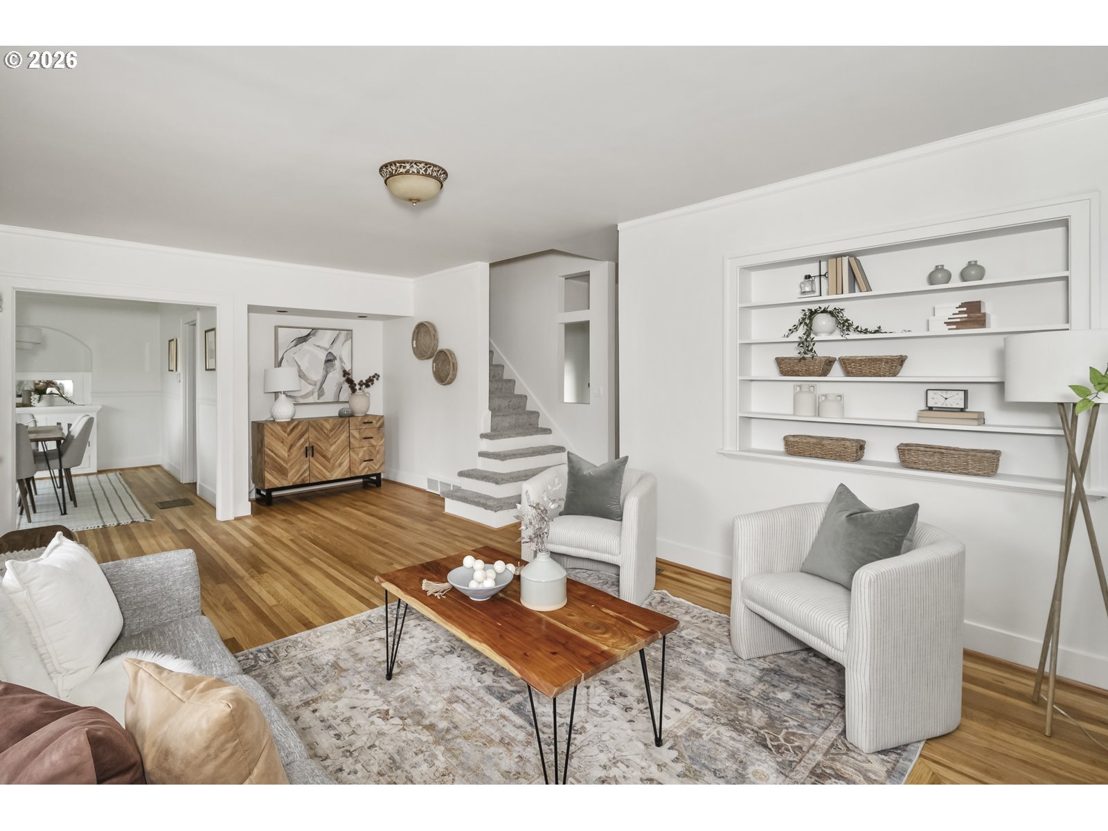 Set on a sunny, beautifully landscaped lot, this warm and inviting home blends classic charm with thoughtful updates throughout. Refinished hardwood floors and fresh interior paint create a bright, move-in-ready feel, while the spacious kitchen offers great flow for everyday living and entertaining. The living room offers a cozy fireplace with built-in bookshelves, creating a warm, inviting space to relax, while the dining room features charming built-ins. The family room off the kitchen—previously a third bedroom—offers flexibility and the option to convert back if desired. The upper-level primary bedroom provides a peaceful retreat with bonus space ideal for a home office, reading nook, or flex area. Enjoy outdoor living in the sun-filled yard, perfect for relaxing, gardening, and gathering. Perfectly positioned in one of NE Portland’s most loved pockets, this home sits in the heart of the Roseway/Cully corridor—just minutes to neighborhood favorites like Ottos pizza, parks, and everyday conveniences, with easy access to PDX, downtown Portland, and major arterials, all while enjoying the feel of a quiet, residential street. Seller will replace the roof prior to closing or offer credit [Home Energy Score = 3. HES Report at https://rpt.greenbuildingregistry.com/hes/OR10243700]