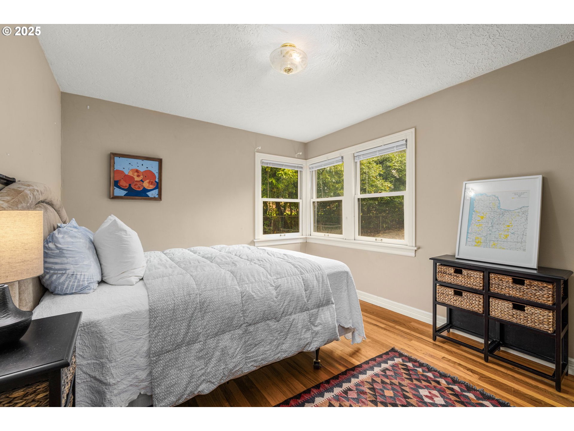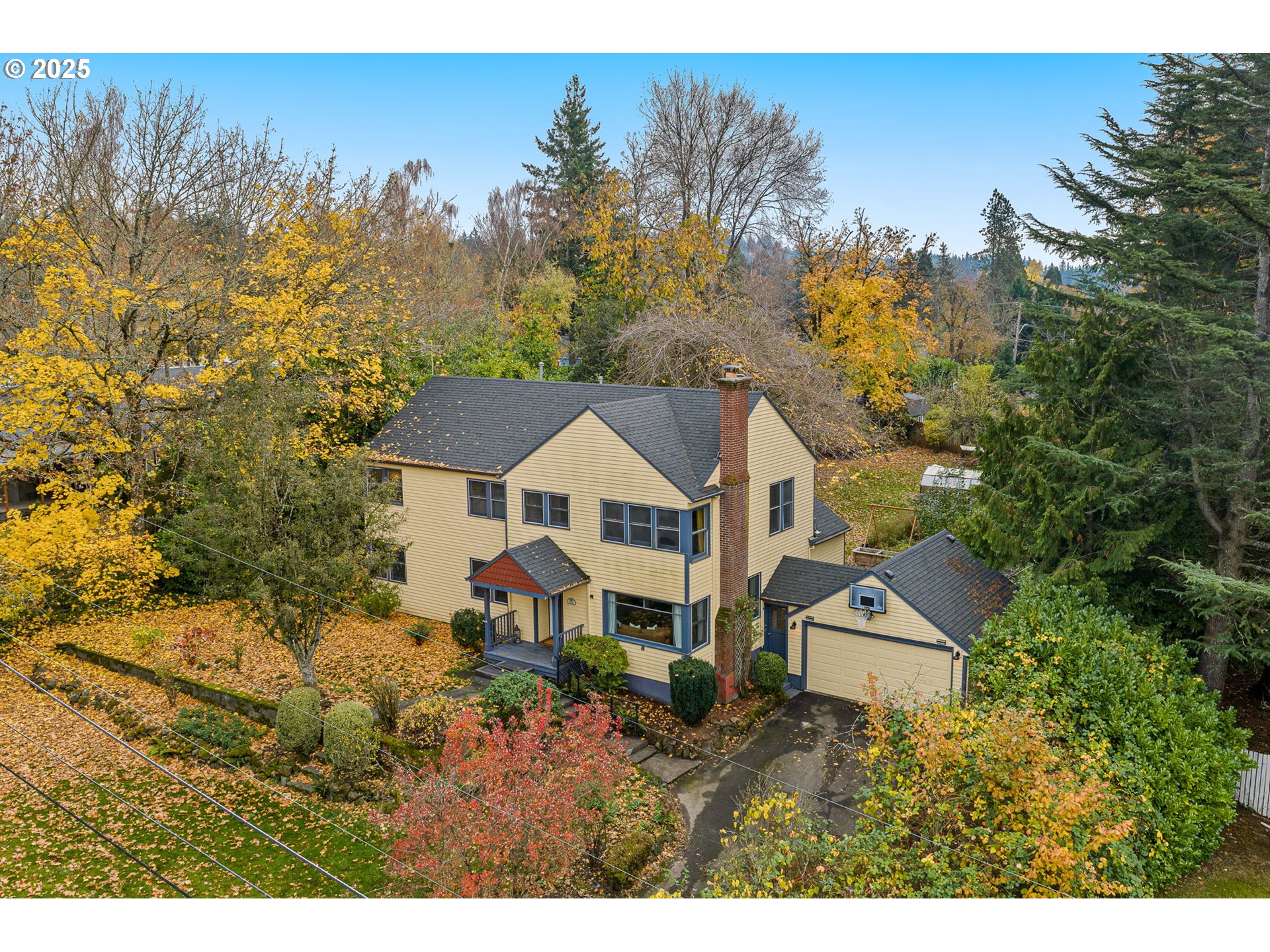Big farmhouse dreams at this level, half acre property in Ashcreek–perched above the street with FANTASTIC westerly views! Built in 1941, the Cape Cod style homes on Brugger Street were part of the Tualatin Acres development, featuring large, fruitful view lots, just a touch out of the city, where old farmland could offer a respite from the hustle + bustle. Southwest Brugger Street still feels that way today. This generous floorplan will not disappoint! 4 beds, 3 baths with lots of flex spaces, the 3311 home has been modernized and expanded, to include a spacious upper level, 3 bedrooms and laundry. The primary suite with exceptional views, a full bath with a W/I shower and big W/I closet. Across the hall, a full bathroom plus laundry, 2 more bedrooms and a nice library inspired reading nook above the stairs. The main floor has much of the charming vintage character but updated over the years to include a large open kitchen, dining + breakfast nook. French doors open to the back deck with a gazebo leading out to the fenced backyard and orchard style property! The formal living room with picture windows, another view opportunity, Vermont Castings woodstove, cedar lined coat closet, coved ceilings. The big family room on the main level is practical and centrally located with lots of room to find your nook! A full bedroom and bathroom, for convenience or a home office, on the main level. Smart breezeway, which provides shelter and covered access from garage to the home. The lower level is unfinished but with a fireplace and good ceiling height, could add to the livable square footage. This house lives large, capturing amazing views + sunsets, lots of space to roam and possibilities, endless!