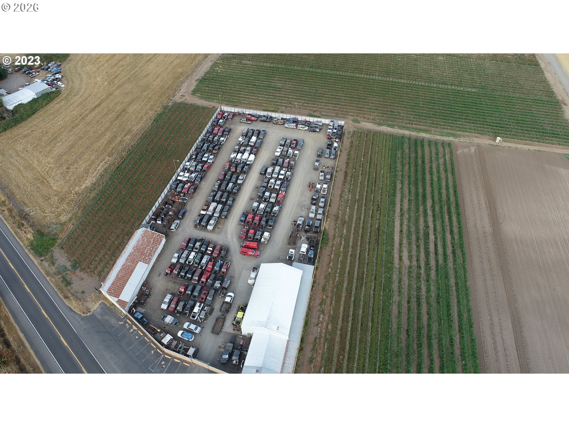 Amazing opportunity to purchase 200 feet of frontage on 99E! Centrally located between PDX and Salem, has been a staple in the community since the mid 60's as an auto salvage yard. Fully secured with a high voltage fence, this property includes two warehouses, mechanic shop with hydraulic lift, store front and tow yard. Current business and inventory will be liquidated by owners. This sale is for the property only. Seller's are willing to work with potential buyers IF they want to continue current business. Buyer to do own due diligence regarding potential uses. Currently EFU Zoned with a grandfathered exemption.Store front and office approximately 2600 sqft, Workshop is approximately 2652 sqft with a 17 foot door, and detached storage shop is approximately 2700. Whether you have a business that supports the EFU community or want to carry on this business. This space is a great opportunity to bring creativity and make your own.