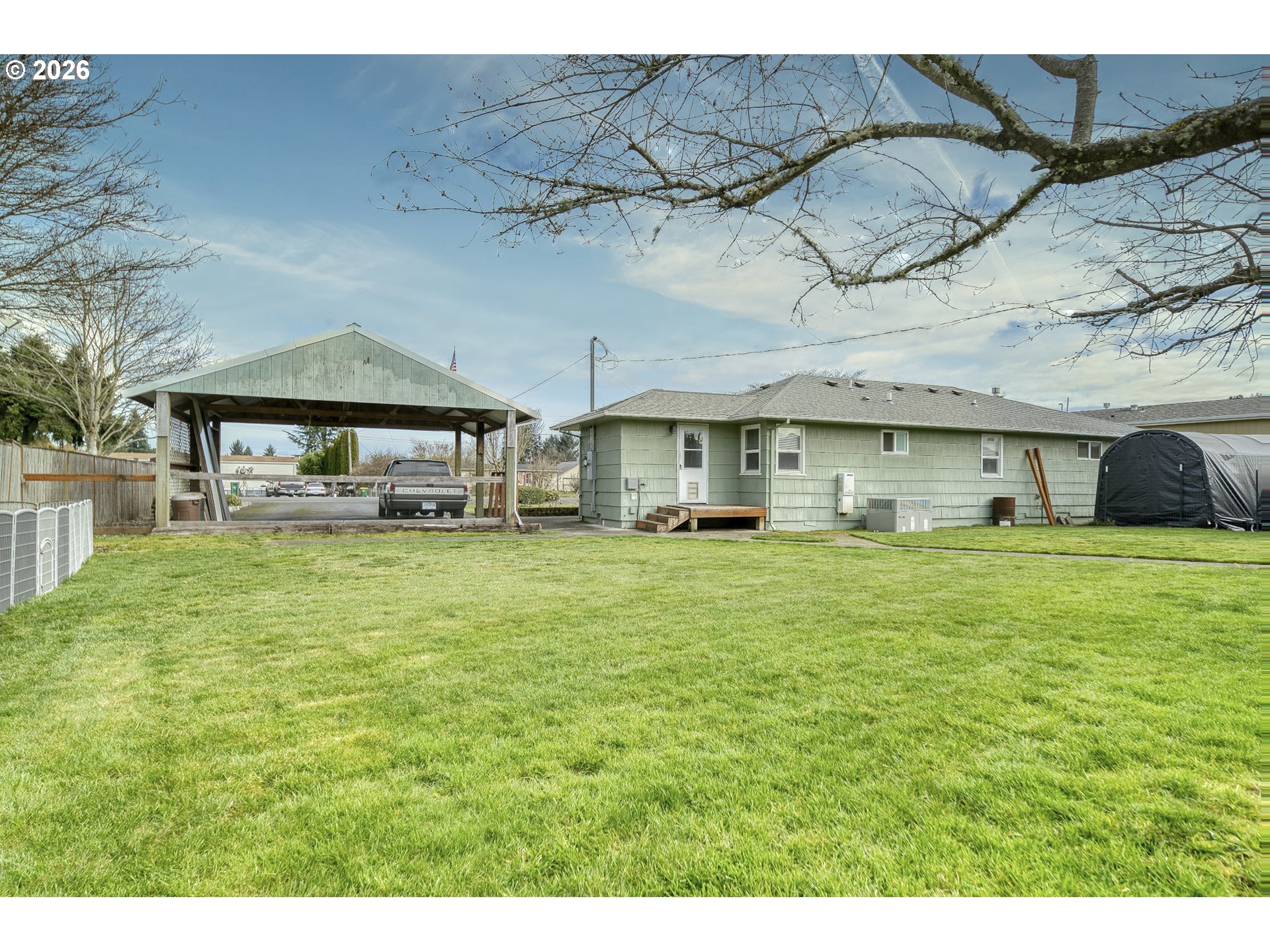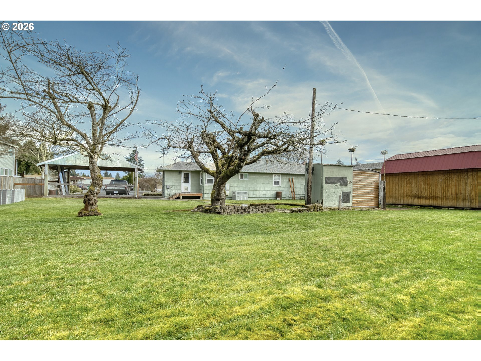 One level home on extra large lot in SE Scappoose. Located on 1/3 of an acre, this property offers lots of space in town. Located on a non through street. Inviting open layout to kitchen and dining area. Hardwood floors throughout living spaces. Kitchen was updated in 2008 and recently with updated appliances that are included. Plenty of cabinets for ample storage. Granite countertop with eating bar opening up into formal dining space. Living area with heater rated gas fireplace perfect for warming up on chilly days. Primary bedroom with adjacent half bath for convenience freshly painted with new flooring. All bedrooms have laminate flooring for easy maintenance. Laundry/Mudroom with direct access to oversized fenced backyard. Paved walkways in backyard perfect for entertaining. Direct access from backyard to expansive long and wide paved driveway. 24x24 carport with metal roof located next to side door access to home, could be a great option to be enclosed for garage. Forced air gas furnace and heat pump for cooling down on hot summer days. Vinyl Windows. Washer and Dryer included. Gas Tankless Water Heater. Plenty of room to park all your vehicles, boat, and/or RV. 16X20 Shed in backyard is included and offers more space for storing all your necessities. Call to see today!