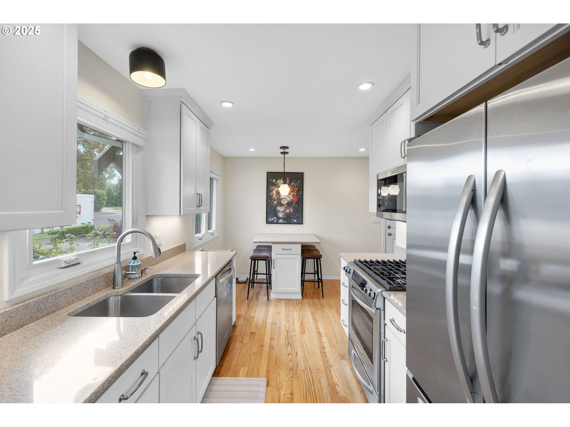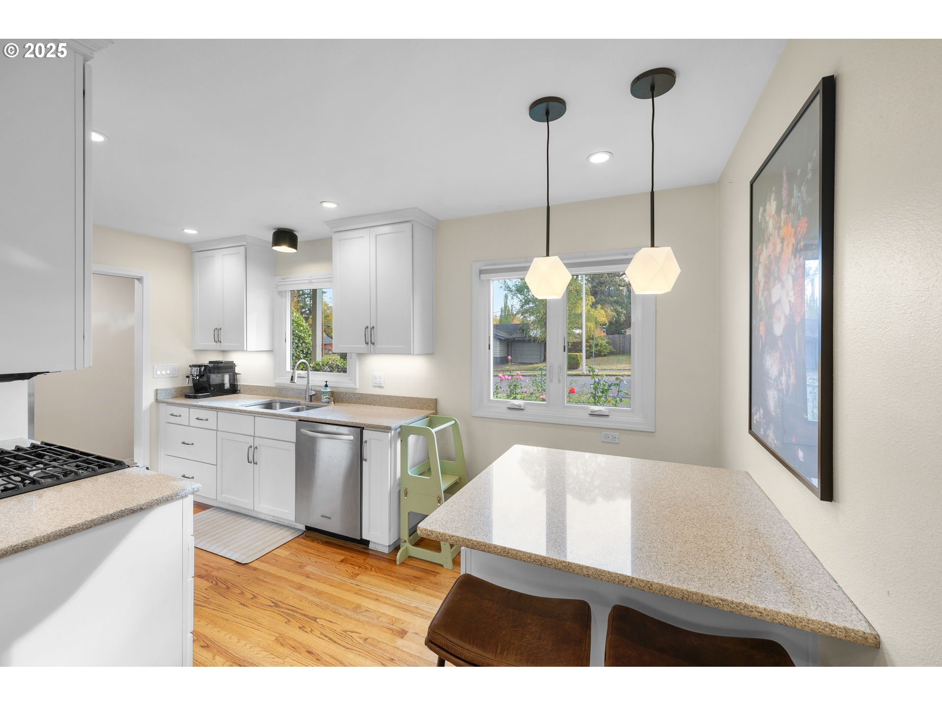 **open house cancelled!* 2 offers in hand! Love the home you live in! Welcome to this beautifully updated and modern one level home in an established neighborhood with access to great schools, parks, shopping, restaurants and walking trails- all within walking distance! Walk through your front door into sundrenched rooms with a view overlooking your private and serene backyard. The updated kitchen has quartz countertops, stainless steel gas appliances and a beautiful island, the showstopper is the unexpected huge, organized pantry. You will love cooking in this well thought out kitchen! The kitchen opens into the dining room with modern lighting and room for a family Thanksgiving dinner. The dining room opens into the living room, with a cozy gas fireplace, a wall of windows, and access to the backyard. It is a perfect place to sit with a good book and contemplate life. The private oasis of a backyard is fully fenced with paths that meander through patios and planting areas. Down the hall from the living/dining room are 3 spacious bedrooms, one is being used as a home office as well as an additional bedroom and the primary bedroom. The primary bedroom has 2... count them 2... oversized closets with organizers and an ensuite bath which has been fully remodeled with a beautiful walk-in shower. The hall bath has a tub/shower combo and has also been remodeled. Hardwood floors throughout, no carpet here! You have laundry? well, enjoy your beautifully remodeled laundry inside the home with open shelving and a storage closet. Speaking of storage- this home has STORAGE! inside there are plenty of closets, but wait-- the garage has a third bay that can be used for exercise equipment, storage or even a workshop! Don't forget the EV charger in the garage for your electric car. This home is mere blocks from parks, shopping, restaurants, Foothills Lake and park, walking trails, close to schools, Nike, Intel and easy access to freeways. You will love what you see! Visit us today!