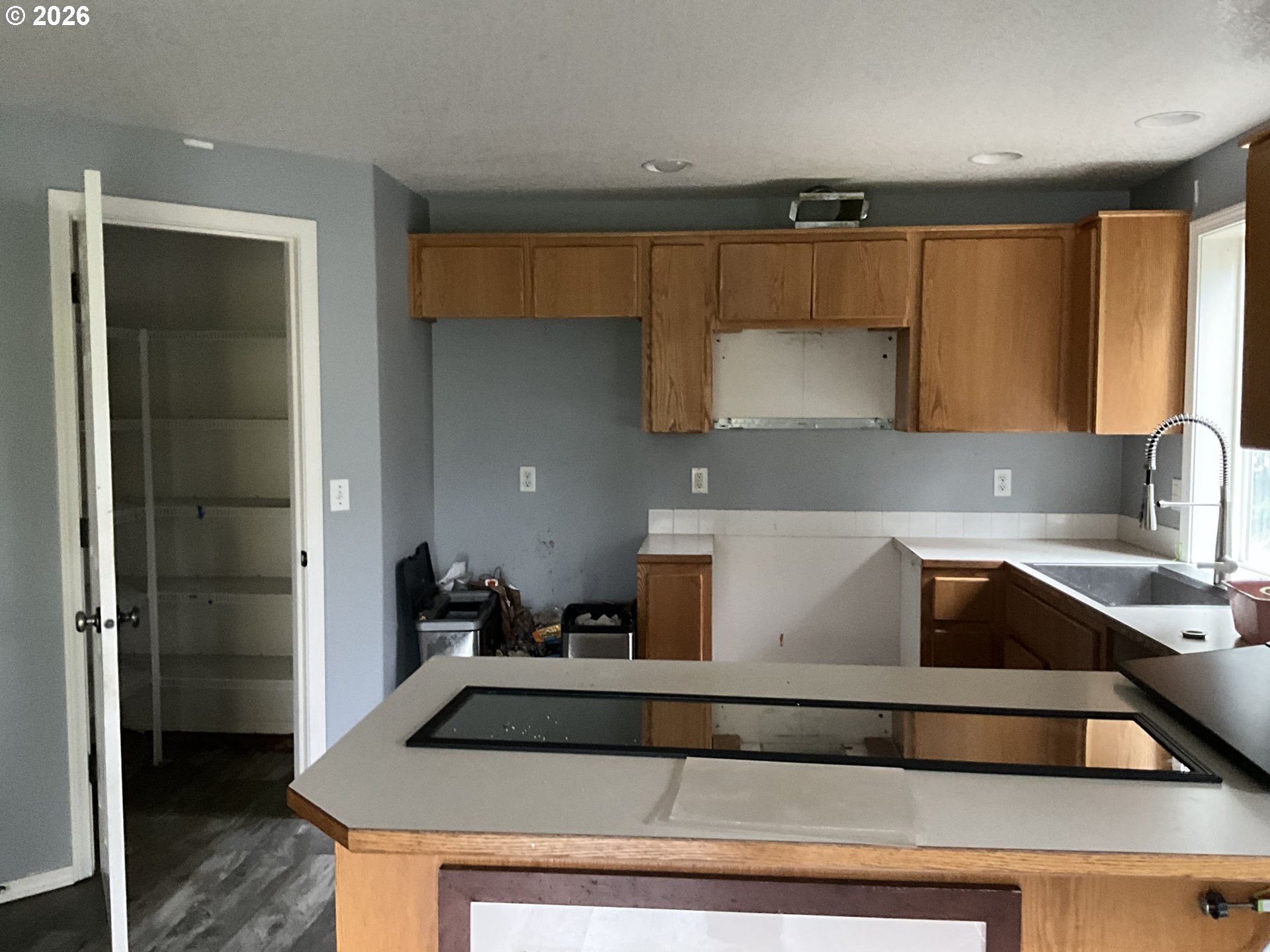 Cute floor Plan on a corner Lot with air conditioning. The home is a fixer and is being sold as is. Appliances are missing, the roof is at the end of its useful life, and there is missing flooring, drywall damage, and several missing lights and fixtures.
