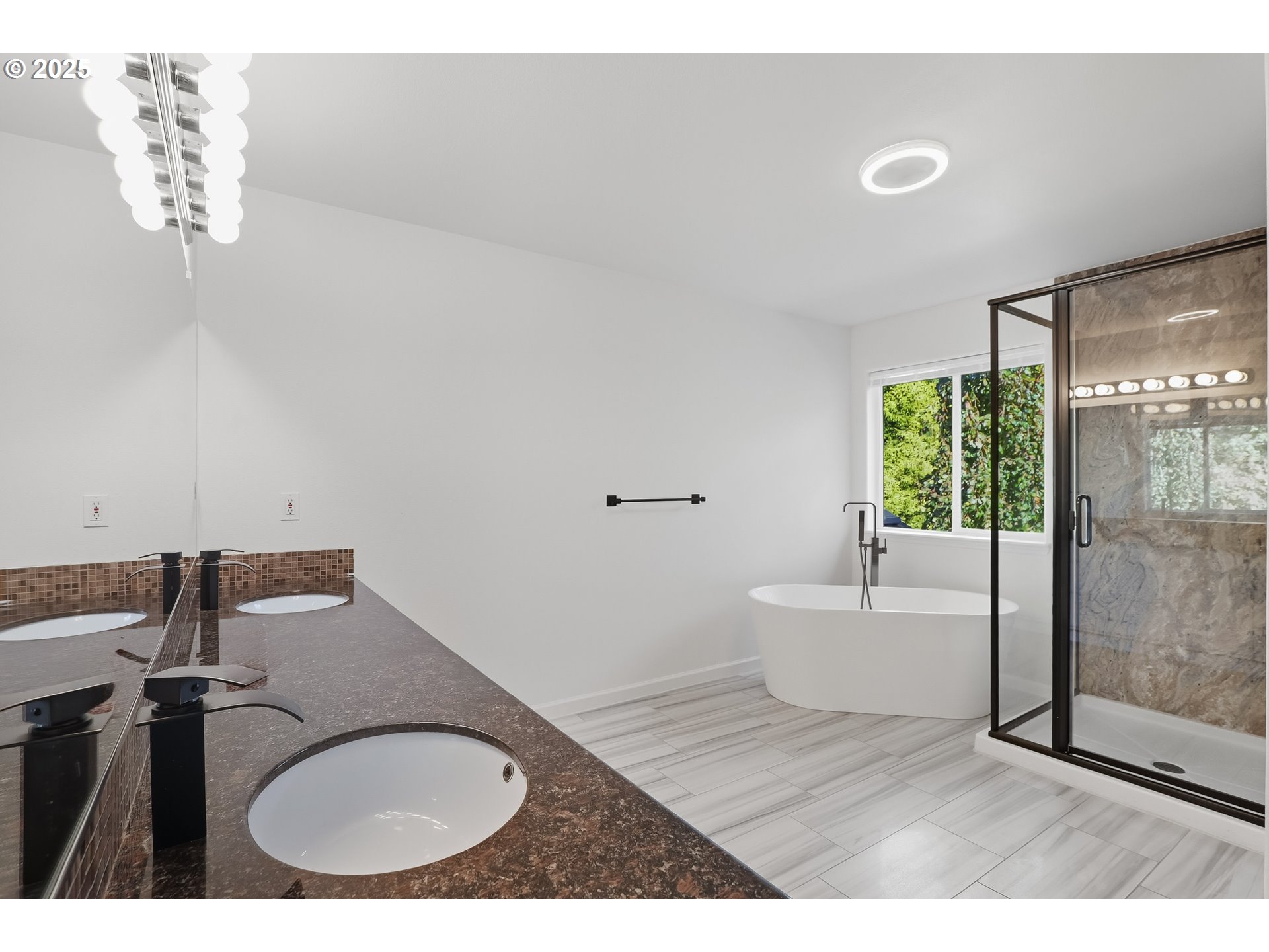 Outstanding 4 bedroom home in prime location! Private, serene backyard boasts mature fruit trees and a view of majestic fir trees make this backyard a quiet retreat! Charming covered patio ideal for entertaining with vinyl tile flooring for comfort and outdoor WiFi speakers! Inside the home boasts impressive engineered hardwood floors throughout and a freshly painted interior! This fabulous kitchen is equipped with a granite island and counter tops, gas cooking, stainless steel appliances and generous cabinetry with custom pull out drawers. A bright and sunny breakfast nook for dining and gathering with friends. This luxurious and spacious master bedroom offers a beautiful view, en suite with tile walk-in shower, a soaking tub, a dual vanity and large walk in closet! Additional features include a surround sound system, solar panels, sprinkler system, newer roof and Tesla EV fast car charger providing significant energy savings and Eco-friendly living. The oversized 3-car tandem garage features built-in cabinets, ideal for storing sporting goods and hobbies, includes 5 wall-mounted bike hangers. This friendly neighborhood has A+ schools, walk to Jacob Wismer Elementary! Very Low HOA Fees!!! Minutes from Bethany Village Shopping Center, parks, and restaurants. ***A GREAT PLACE TO LIVE***