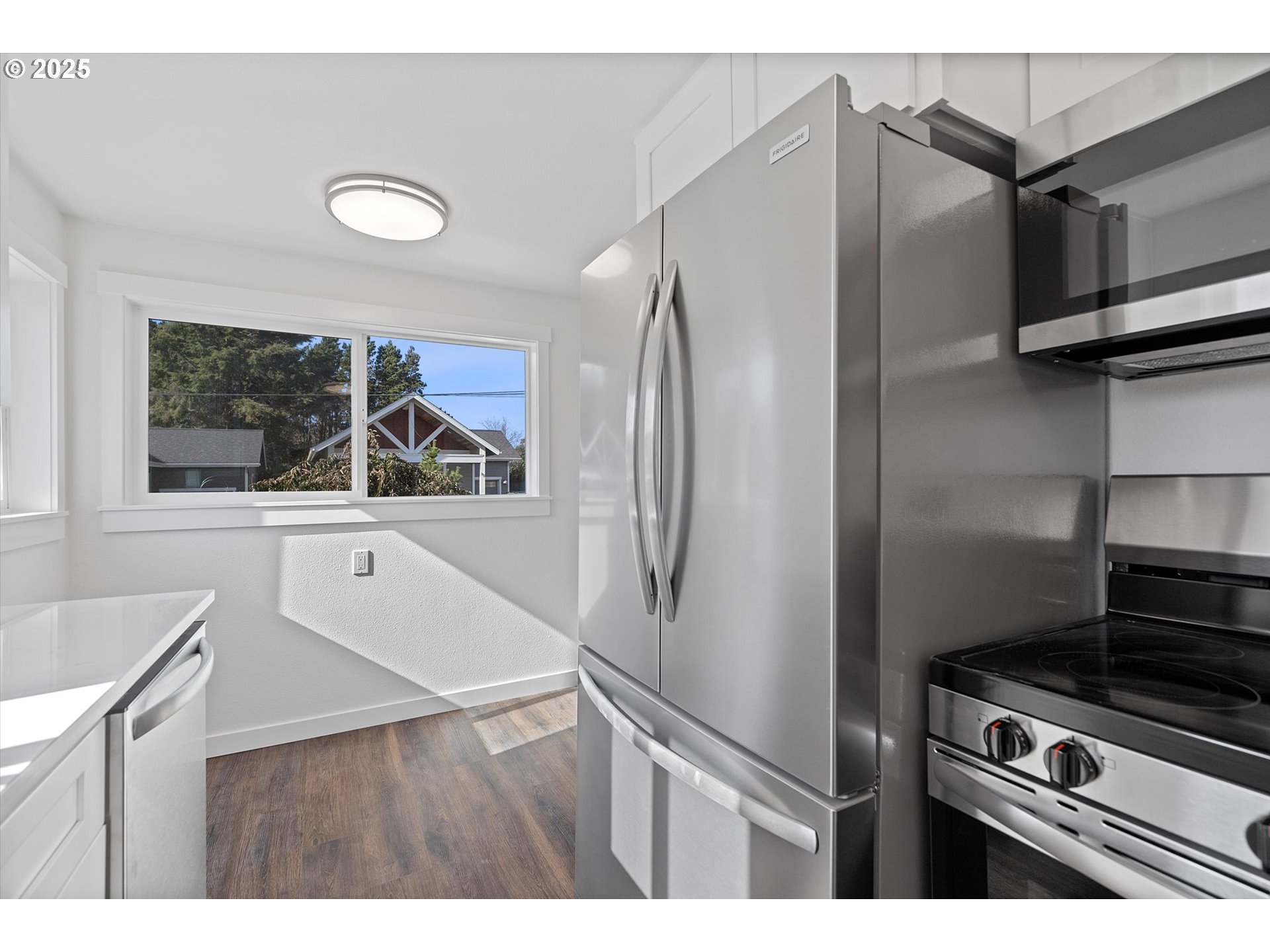 MOVE IN READY! Recently remodeled, this home with 3 bedrooms, 1 bath, 1 car garage, has many updates with a complete remodel completed in 2025, including new paint interior/exterior, roof, gutters, siding, paved driveway, windows, luxury LVP flooring, carpet, energy efficient LED lighting, plumbing fixtures, quartz counter tops, cabinets, stainless steel kitchen appliances. Fully fenced and professionally landscaped low maintenance back yard with a new patio and firepit. Great starter home or beach get away. Close to many amenities such as trails, lake, beach, shopping, post office, library, and more. Move in ready! 1 year basic home warranty included with acceptable offer!