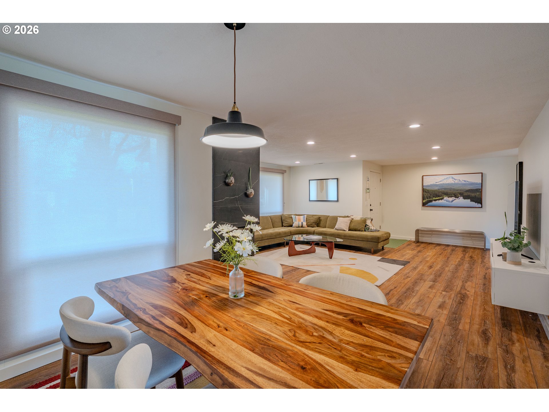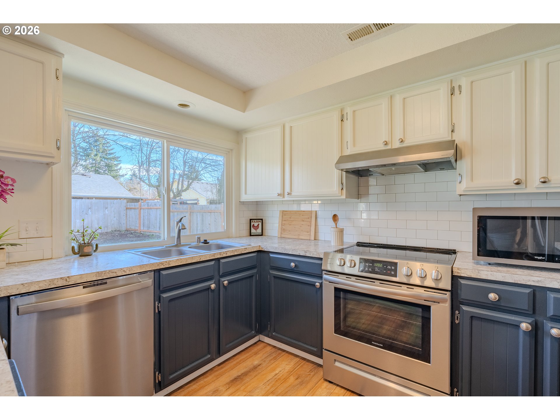 Welcome to your turn-key oasis! This beautifully reimagined 3-bedroom, 2-bathroom ranch offers the perfect blend of one level convenience and high-end modern design. Every inch of this home has been thoughtfully updated to provide a sleek, contemporary aesthetic alongside total peace of mind. Step inside to find stunning, brand-new LVP flooring that flows throughout the open-concept living areas, offering durability without sacrificing elegance. The spacious living room features a breathtaking focal point of large-format tile fireplace, serving as a sophisticated centerpiece for cozy evenings. The heart of the home is outfitted with a full suite of stainless steel appliances, perfectly complementing the home’s modern upgrades.The massive, fully fenced backyard and extended patio are perfectly sized for summer BBQs, outdoor lounge furniture, and includes a raised garden bed ready for your harvest or flowers. A large and deep two-car garage, provides plenty of space for vehicles, a workbench, or additional storage. Move in with confidence knowing the water heater, garbage disposal, and dishwasher were all replaced within the last 3 years.