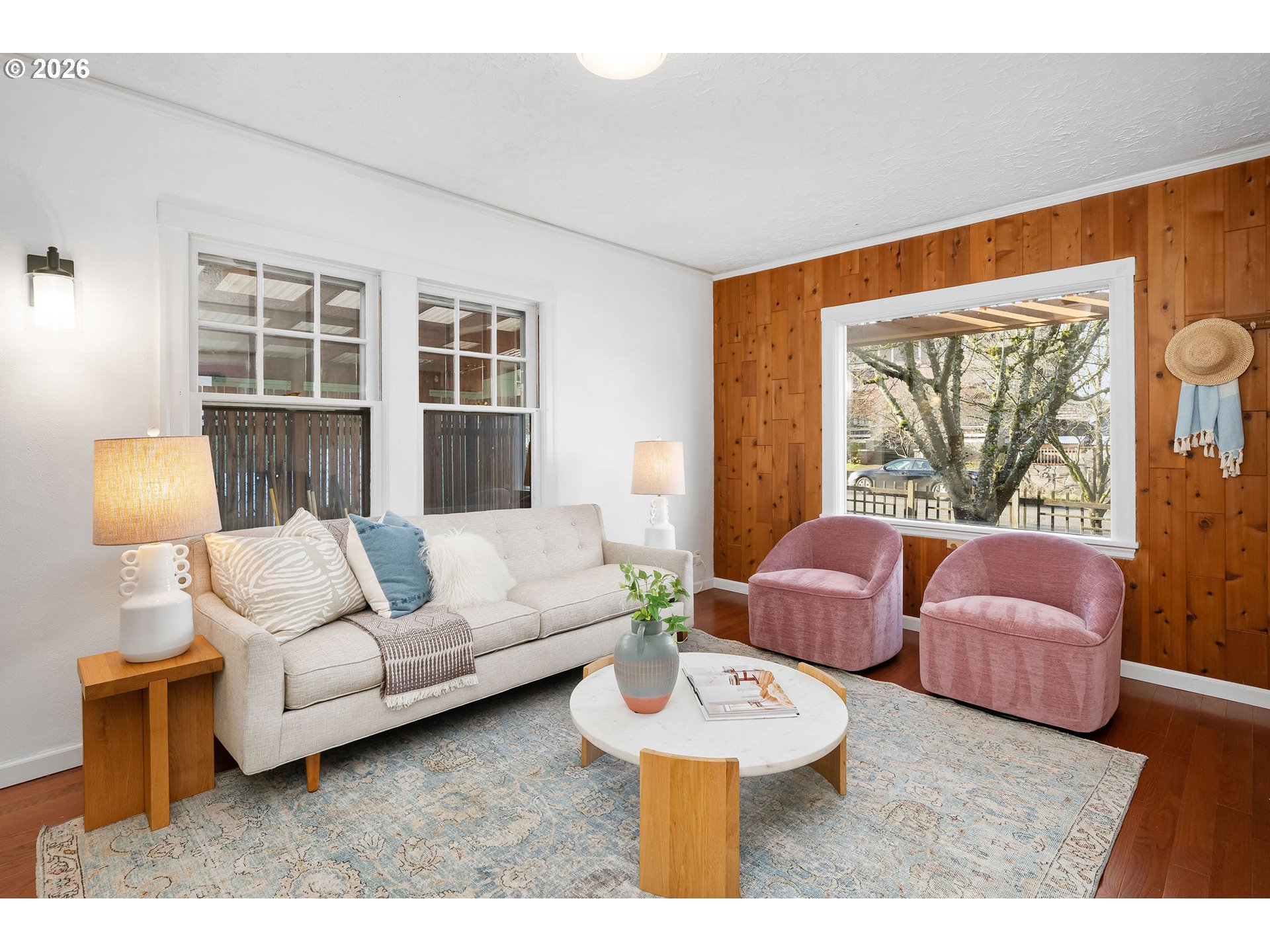 Portland cottage located in the heart of Concordia, thoughtfully updated while preserving the character that makes this style of home work so well. A true primary suite on the main level includes an en suite bathroom. Natural light is a constant throughout. Engineered wood floors, skylights, and added windows create a calm, balanced interior, anchored by a generous dining area. The upper level functions comfortably as a third bedroom, while the main floor includes a dedicated office space. Outside, a large backyard with excellent alley access extends the living space outdoors, featuring a new deck, a new storage shed, and fresh exterior paint.Just two blocks from Alberta Street, with easy access to some of Portland’s most iconic restaurants, coffee shops, boutiques, galleries, food cart pods, and the Last Thursday art walk.