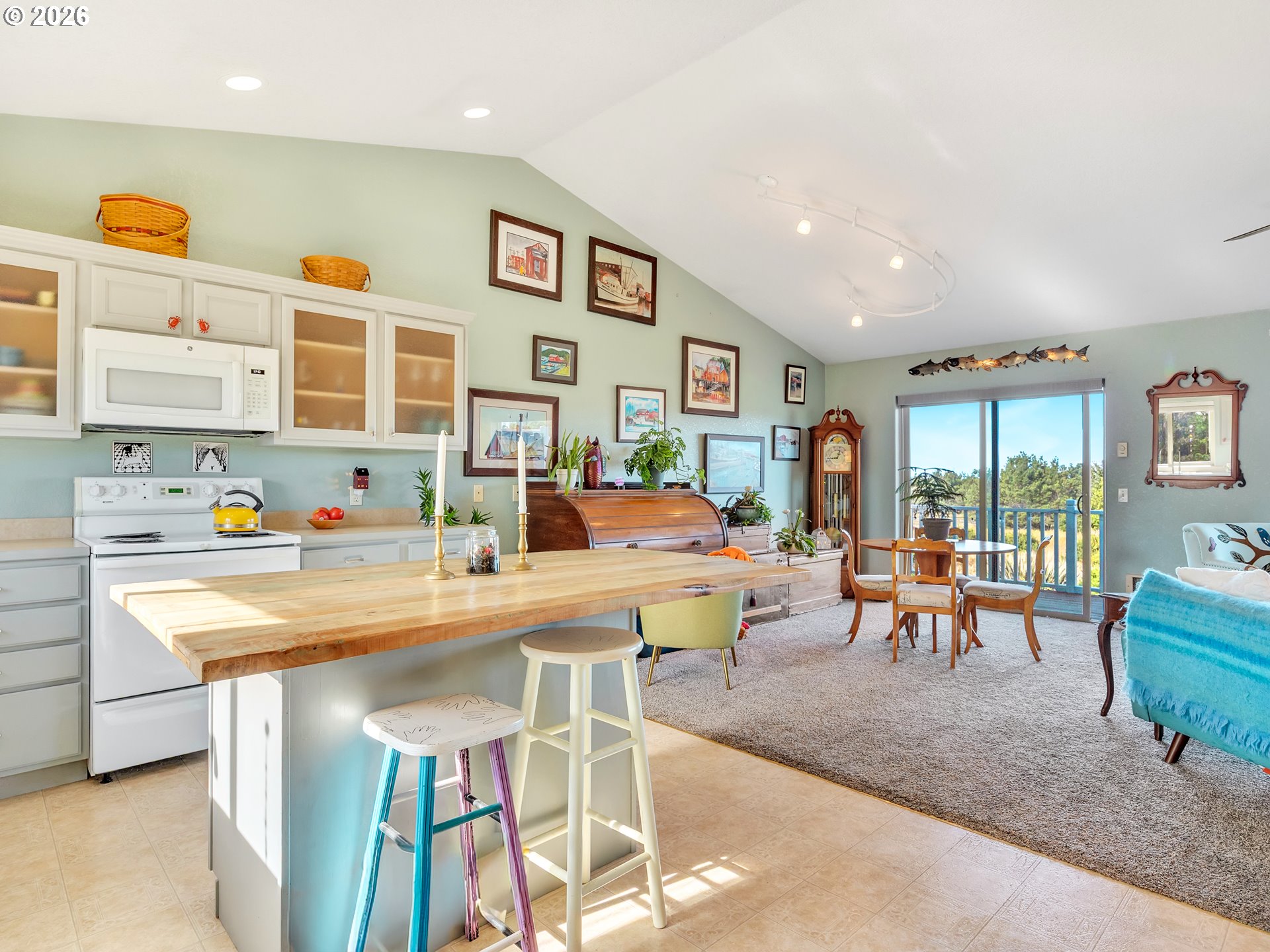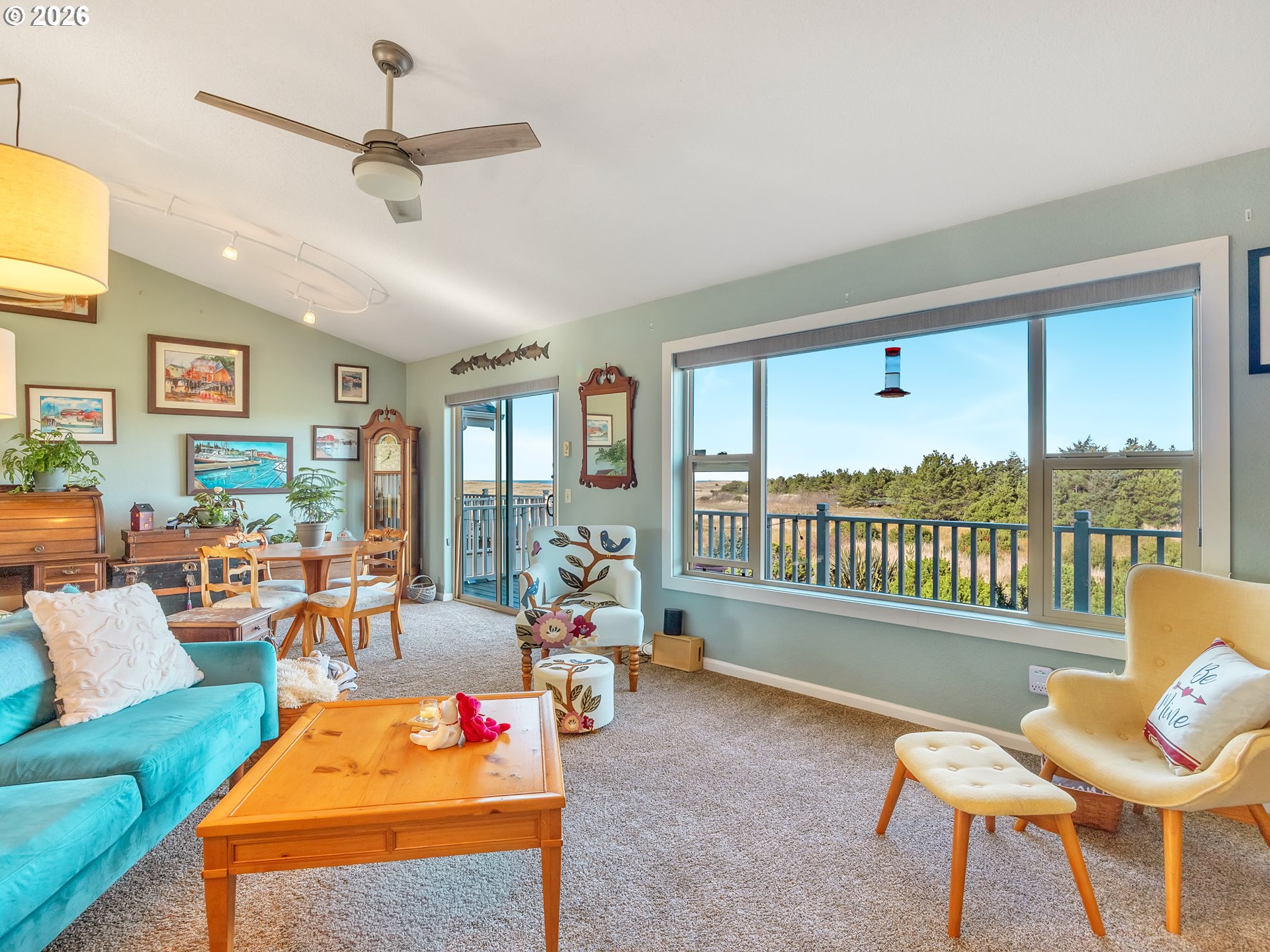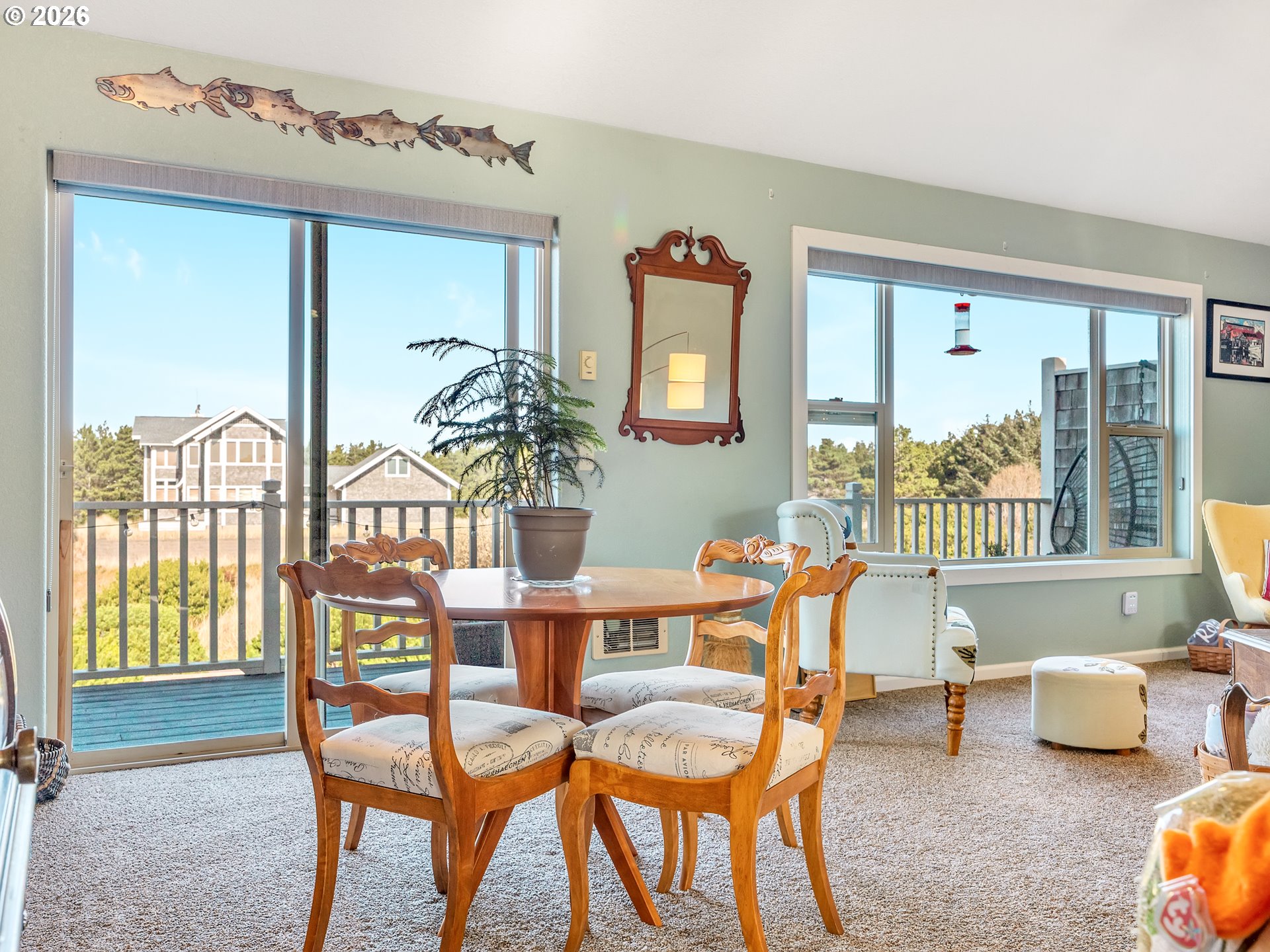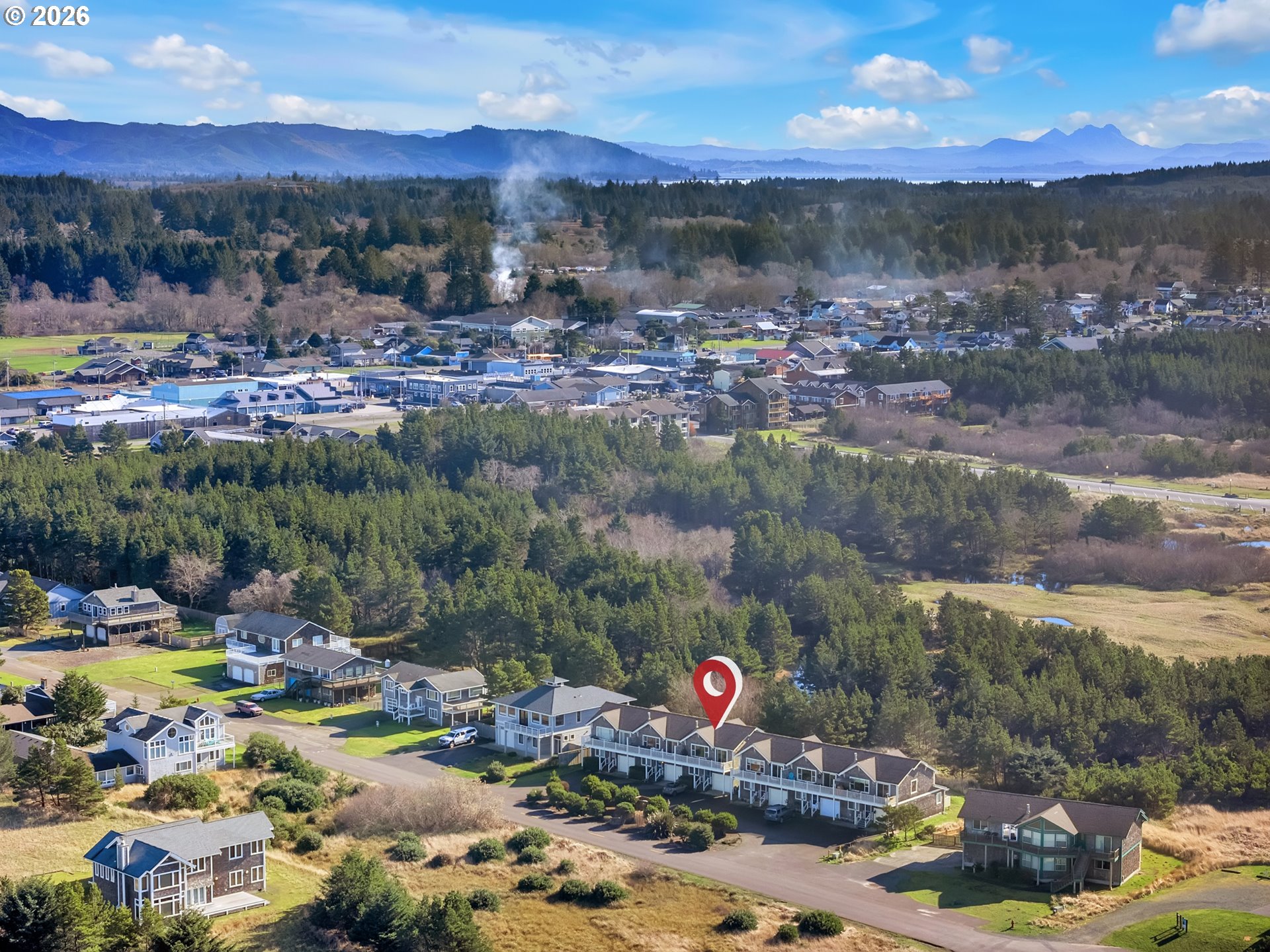 Coastal living awaits in this beautifully updated 2-story condo in Long Beach, WA, with sweeping Pacific Ocean views in an intimate 6-unit complex. This rare end-unit style home lives like a townhouse, offering a smart, comfortable layout with 2 bedrooms and 1 bath on the main entry level. The upgraded downstairs bath features a newly tiled shower and luxurious heated radiant flooring for added comfort after beach walks.Upstairs, an inviting open-concept living, dining, and kitchen space is designed to maximize light and views. Enjoy the warmth and charm of a new electric fireplace with shiplap surround, creating a stylish focal point for relaxing or entertaining. The kitchen has been refreshed with upgraded cabinetry, offering ample storage and a clean, modern look, along with easy flow to the dining area. A convenient half bath on this level adds practicality for guests.With only six units in the building, you’ll appreciate the peaceful, private feel of this small community. A private garage provides secure parking and extra storage for beach gear, bikes, and more. Whether you’re looking for a full-time residence, weekend getaway, or investment property, this ocean-view condo offers the perfect blend of comfort, style, and coastal charm in the heart of Long Beach.