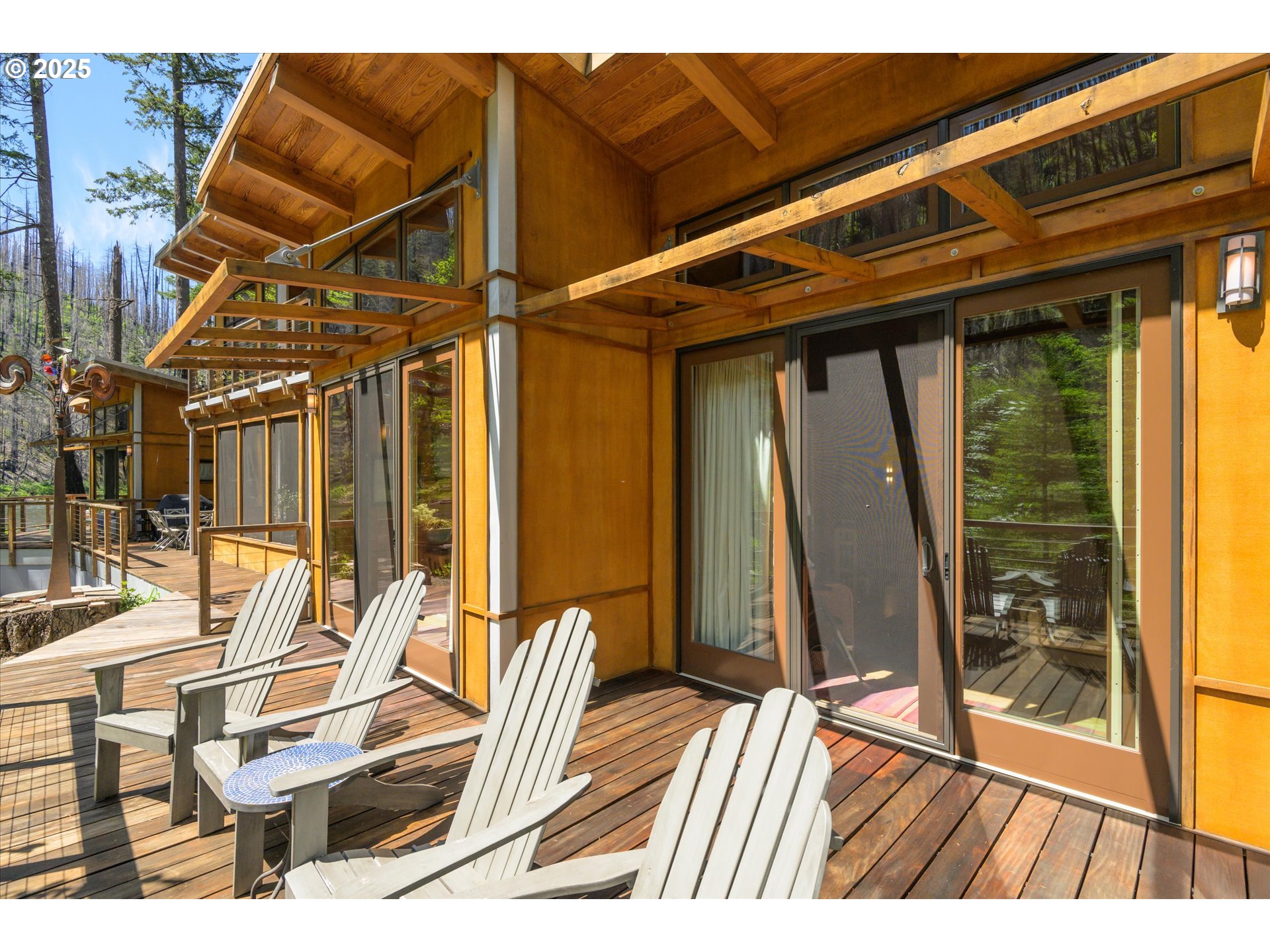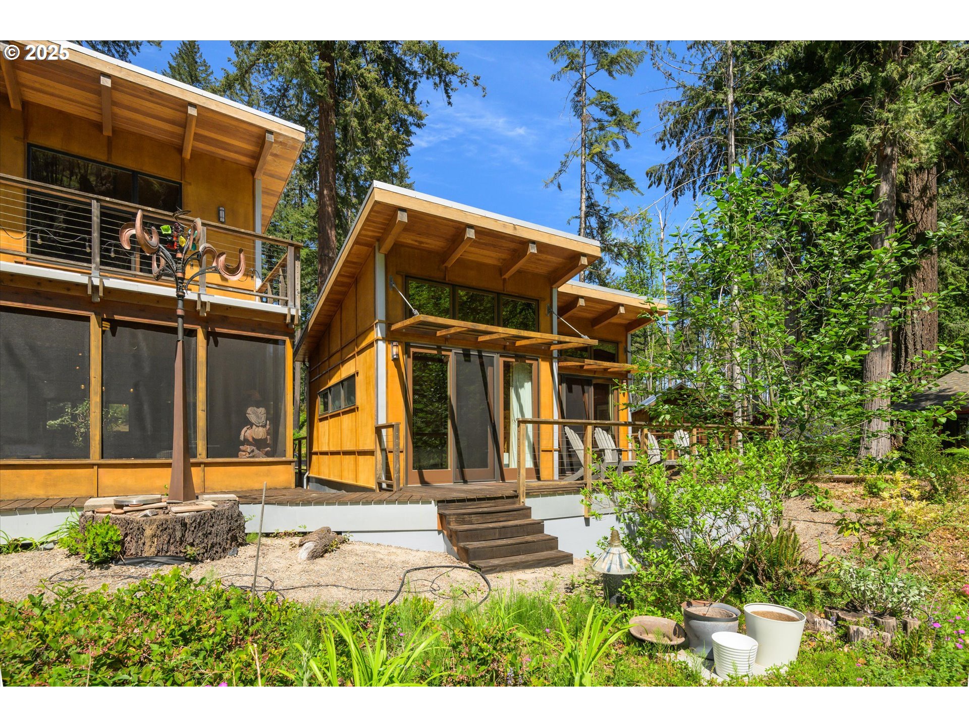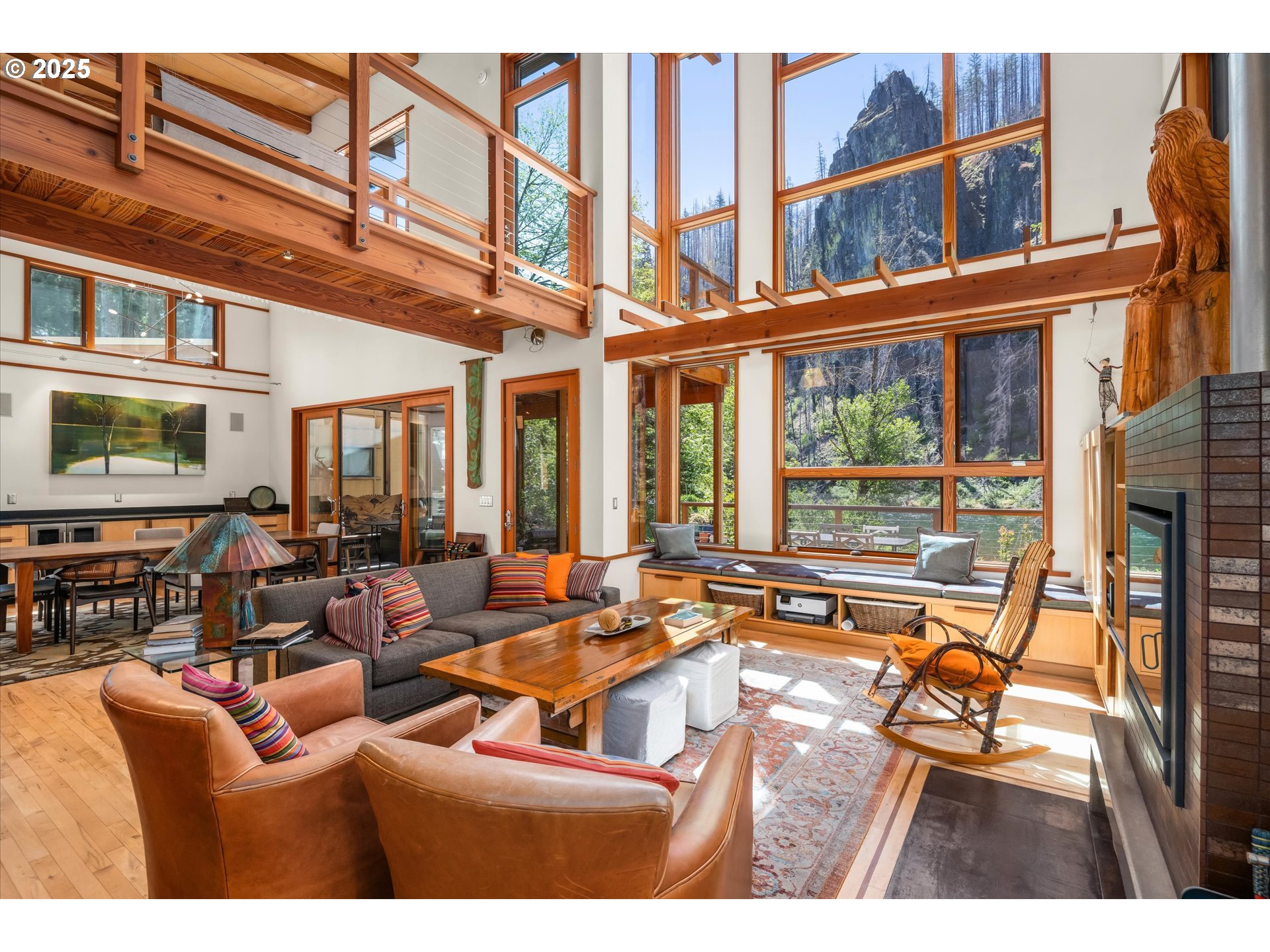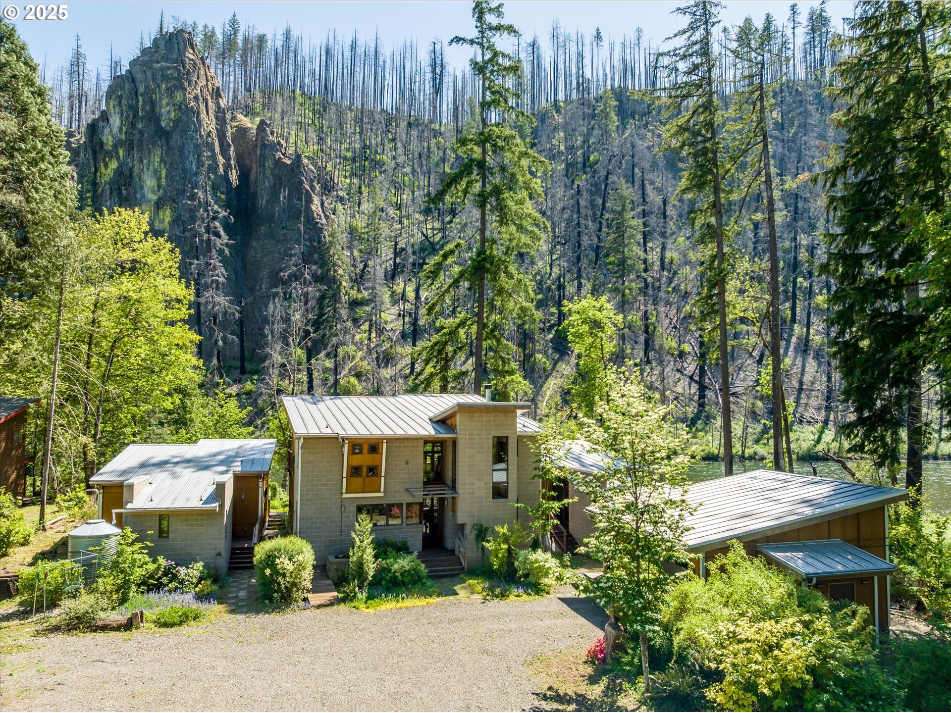 Featured in Oregon Home Magazine, this extraordinary riverfront retreat along the McKenzie River is a masterclass in thoughtful design, sustainability, and heartfelt legacy. Custom-designed and inspired by the owner’s multi-generational connection to the land, this one-of-a-kind home blends architecture, artistry, and Oregon’s natural beauty.Instead of a traditional floorplan, the home unfolds in a unique “pod” design—three detached structures that provide the perfect balance of togetherness and privacy. Each sleeping pod features spa-like bathrooms with sunken concrete tubs, serene views of Eagle Rock or the surrounding old-growth Douglas firs, and access to private decks nestled in the trees.At the heart of the home is the central pod: a dramatic, light-filled gathering space with a gourmet kitchen, spacious dining area, and inviting living room. A custom window seat captures breathtaking views of Eagle Rock, while a screened porch and catwalk-style deck create a seamless connection to the outdoors.Sustainable features include rainwater collection cisterns, operable windows for passive cooling, recycled PaperStone countertops, and thoughtful site design that preserves mature trees. Salvaged beams from the original A-frame cabin have been lovingly repurposed into the new structure, honoring the past while embracing the future.Whether as a primary residence or a vacation haven, this home offers a rare opportunity to experience timeless design, natural serenity, and enduring connection to one of Oregon’s most scenic rivers.