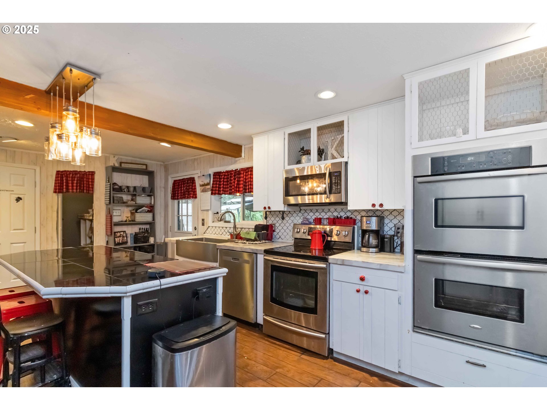 Surrounded by towering evergreens and tucked away on a serene country lane, this spacious two-story red home offers the perfect blend of privacy, comfort, and Northwest charm. The welcoming entry leads to multiple inviting living areas—each designed for connection and relaxation. The double-sided fireplace anchors the home’s cozy living rooms, offering warmth and ambiance on cool evenings. The Disney-themed kitchen is the heart of the home, featuring stainless steel appliances, double ovens, two farmhouse sinks, and a large island that invites family and friends to gather. Breezeway connects a large bonus living area with a canning kitchen.Generous bedrooms and a versatile lower-level bonus space provide flexibility for guests, hobbies, or a home office. Large windows throughout bring in abundant natural light and views of the surrounding evergreens, creating a peaceful retreat-like feel. Step outside to discover a backyard made for entertaining and leisure—complete with a covered patio, an in-ground pool with a slide, and plenty of space to relax or host summer gatherings.A spacious shop and additional outbuildings (including a fire-stoked sauna) offer endless opportunities for storage, recreation, or small-scale farming projects. The property’s park-like setting includes mature landscaping, garden areas, and a backdrop of lush forest for ultimate seclusion. Whether you’re looking for a private retreat, multi-generational living, or room to expand, this home provides the space and setting to make it your own—all just minutes from town conveniences, yet a world away from the bustle.