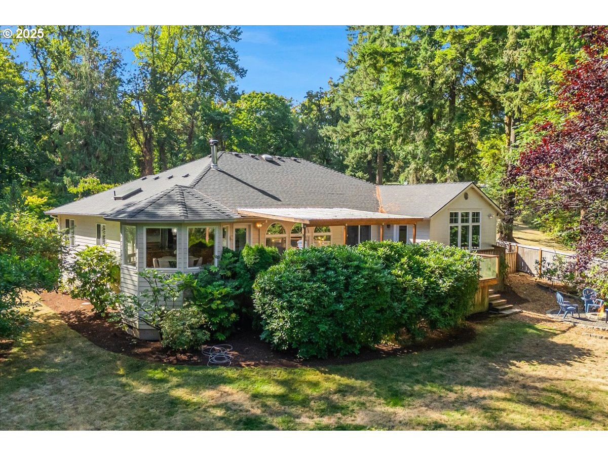 A one of a kind urban oasis! Tucked away on this incredibly private and tranquil 1.07 acre lot you will find a single level 2495 sq ft house as well as an 800 sq ft shop with an additional 500 sq ft studio/guest quarters with a kitchenette, 3/4 bath with shower and full ADU potential. Perfect for multi-generational living or used as a rental (most recently rented for $1050/mo in 2020). Thoughtfully landscaped, established permaculture garden ~ apples, plums, figs, persimmons, berries and more! Complete with a fully fenced yard, garden, tool shed, fire pit, chicken coop and run, livestock pen and shed with room for your very own goats, sheep or other animals as allowed by city code. Enjoy a covered back deck year round and you are likely to be visited by an abundance of wildlife including rabbits and deer. The one level home features updated Luxury Vinyl Plank flooring, trim, light fixtures and ceiling fans throughout. New Rheem high efficiency furnace and AC with nest system as well as an owned security system with cameras. The beautiful built-in European cast iron wood burning stove is a centerpiece of the home. Primary suite with vaulted ceilings, double sinks, walk-in closet and access to the back deck. Spacious kitchen with tons of cabinets for storage, tile counters, tile backsplash and a skylight. All appliances are included! Formal dining room plus large, vaulted breakfast nook off of the kitchen, including bay windows providing tons of natural light. Views of trees and greenery from every window! Includes a two car attached garage plus room for two additional cars or toys in the shop. Located minutes from Mt. Scott Nature Park, Powell Butte Nature Park and Leach Botanical Garden, while also just 20 minutes outside of the city. [Home Energy Score = 4. HES Report at https://rpt.greenbuildingregistry.com/hes/OR10193445]