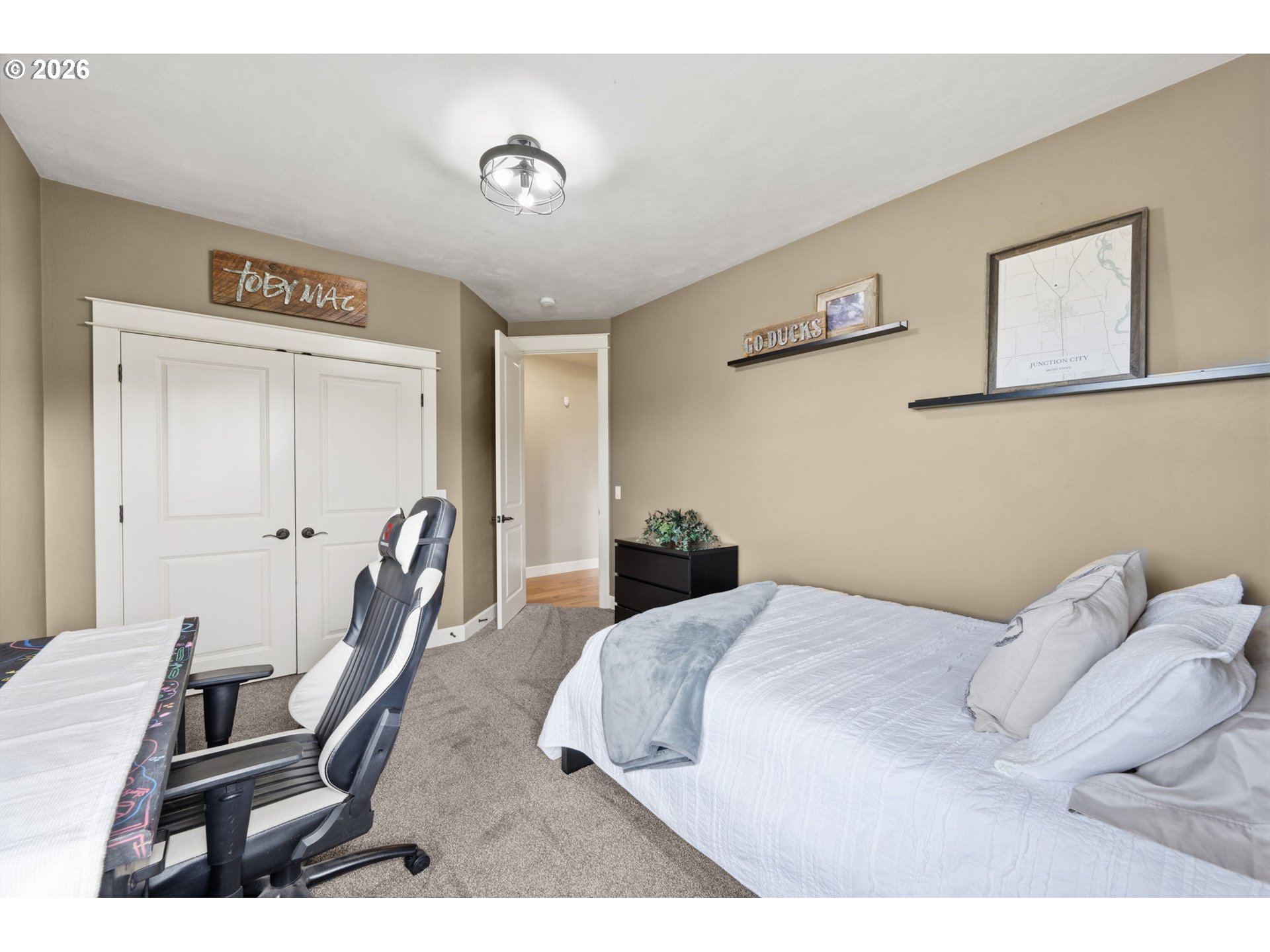 Experience the pinnacle of refined country living with this extraordinary custom-built 2007 daylight ranch estate set on 11.45 private, picturesque acres in Junction City—an exceptional luxury equestrian retreat designed for both elegant living and premier horse stewardship. Stunning single-level residence features soaring vaulted and high ceilings, paired with expansive windows, bathe the home in natural light while showcasing the surrounding pastoral beauty. Rich hickory heritage hardwood floors, plush carpeting, slate tile, and exquisite marble finishes create a warm yet sophisticated ambiance throughout.At the heart of the home, the gourmet chef’s kitchen impresses with stainless steel gas built-in appliances, double ovens, quartz countertops, an island with prep sink, and instant hot water—flowing seamlessly into the inviting great room anchored by a cozy gas fireplace. Entertain effortlessly in the formal dining room or gather around the elegant bar area featuring a striking coffered ceiling. The private owner’s suite is a true sanctuary, complete with a tray ceiling, French doors leading to the covered patio, dual walk-in closets, and a spa-inspired bath showcasing double vanities, marble countertops, heated marble floors, and an oversized tiled shower with multiple shower heads.Designed with both comfort and function in mind, the home also offers generously sized secondary bedrooms with double closets, two laundry areas—including a full laundry room with sink and storage—and a secured room ideal for valuables or equipment. Outdoors, indulge in resort-style living with a covered patio, gas fireplace, built-in firepit with decorative pavers, and a hot tub—perfect for year-round enjoyment in a serene setting.Equestrian excellence defines this property. Thoughtfully equipped for the discerning horse enthusiast, the estate features a premium indoor riding arena, a well-appointed luxury barn, and expansive grounds ideal for training, turnout, and riding.