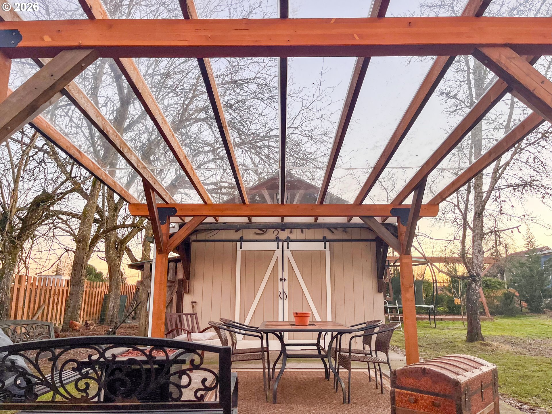 Come see this remodeled 4 bedroom 2 bath, 1836ft home on .31 curated acres. The property is located on a quiet dead end only steps away from a greenspace walking trail and two blocks from wineries, restaurants and a park. The home has a very open floor plan great for entertaining guests. Enjoy features such as tile showers, an infrared sauna, woodstove and pantry, The bright, large south facing windows look outside to many established fruit trees, nut trees, grape vines, herbs and blueberry bushes and much more producing hundreds of pounds of organically grown food per year. A clear covered timber framed 16x20ft patio, epic swing set, cedar decks, a large chicken coop with an automatic door, raised garden beds, 14x14ft tool shed, wood shed and covered parking make the property a place to thrive. Ample parking, an energy efficient ducted heat pump, a 50 year rated roof, new high end LVP floor, concrete board siding are here to last.