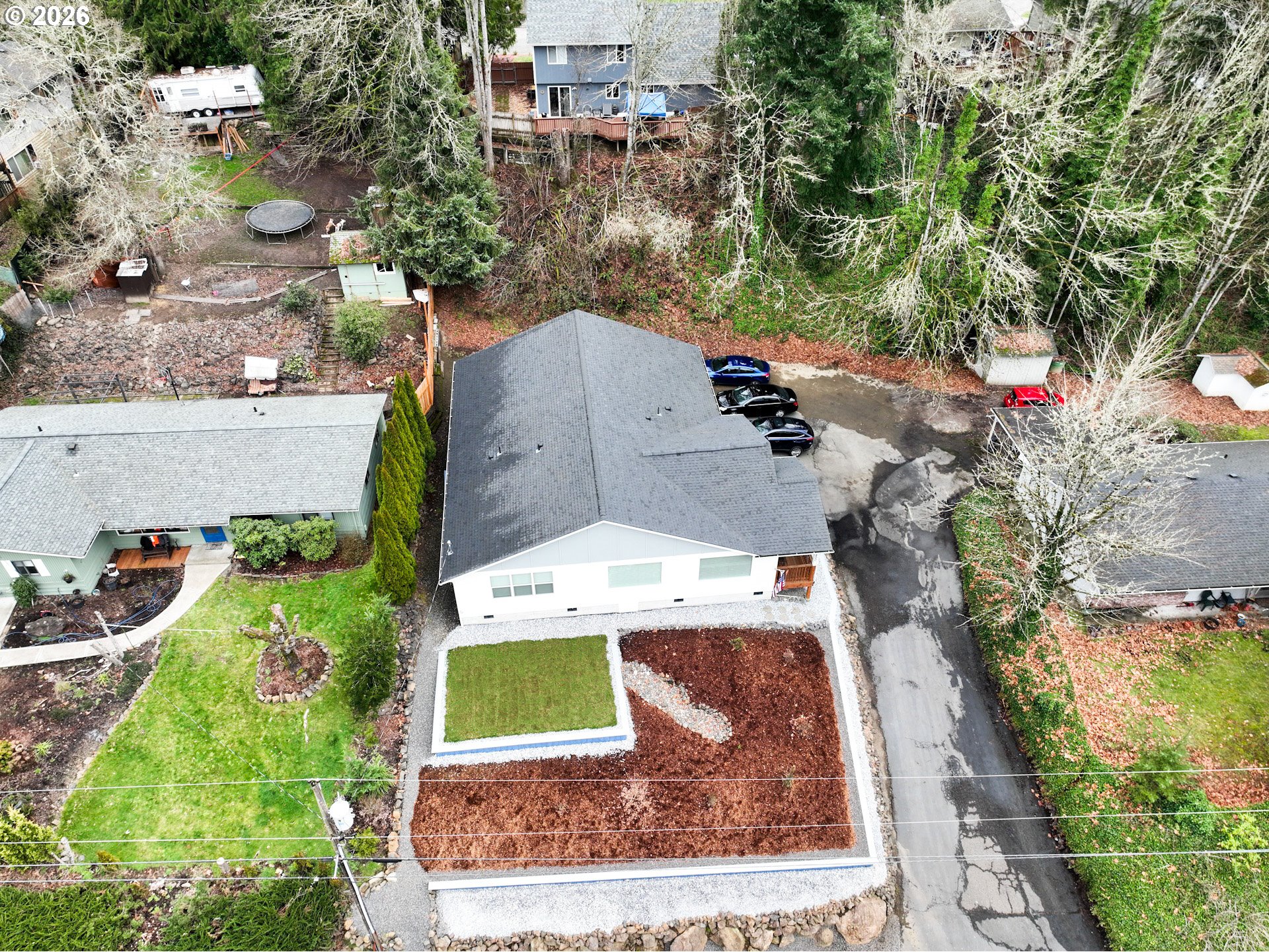 One of the newest homes in this established neighborhood, this inviting single-level custom build offers a bright, open layout with three bedrooms and 1.75 bathrooms, including extra-wide doorways. The kitchen, dining, and living spaces connect effortlessly, creating an ideal setup for gatherings and everyday living. Expansive windows frame a serene, wooded backdrop, giving the home a tucked-away feel while still being just minutes from schools and shopping. Outside, enjoy a low-maintenance yard with terraced landscaping, French drains, and additional gravel parking near the garage and street. The garage features a ductless heat pump, hot and cold water hookups, and the home includes a whole-house water filtration system. A perfect balance of comfort, function, and convenience—don’t miss this one!