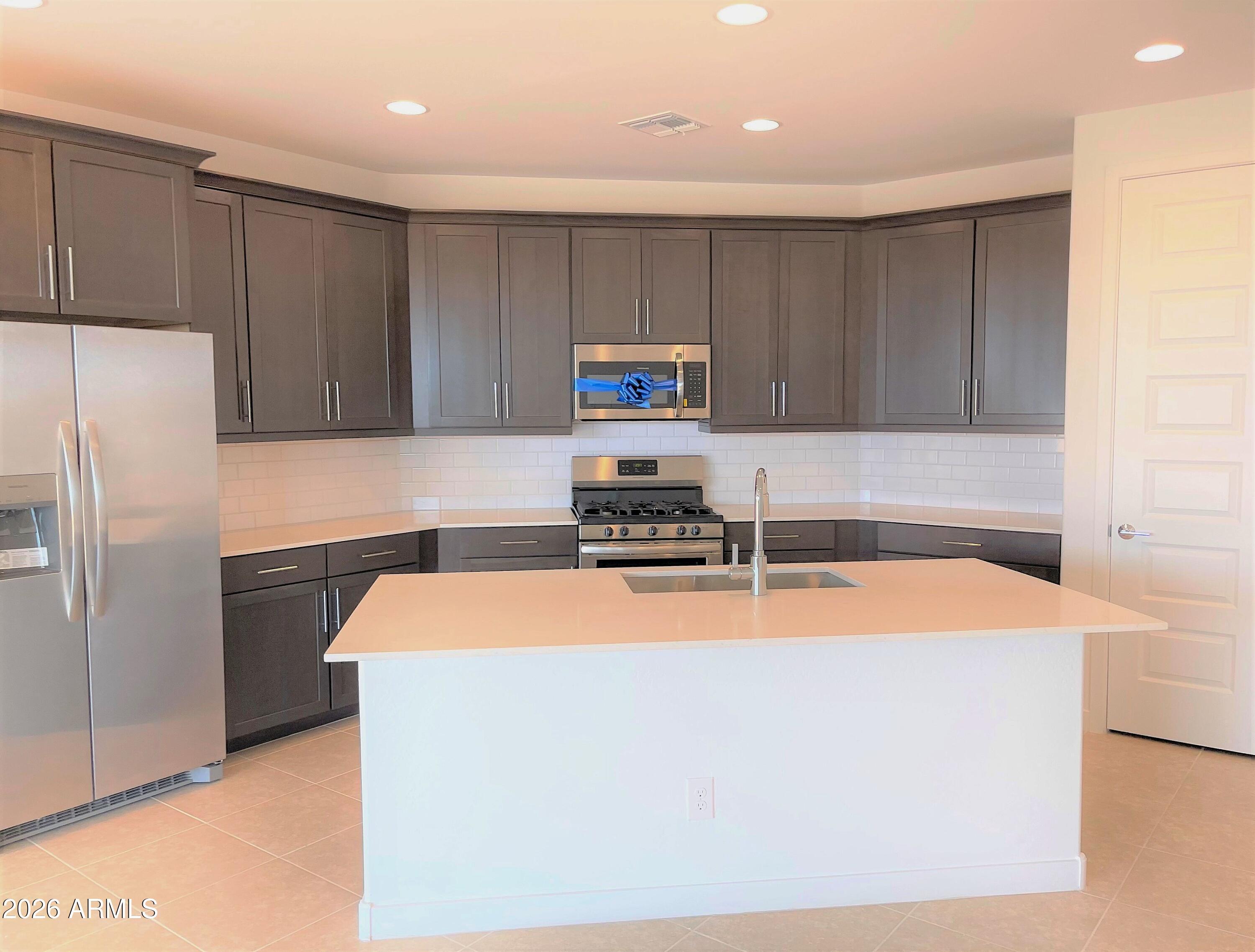 No Application Fees! Newly built 4 bedroom, 3 bathroom single level West Phoenix home located in a gated community offering a spacious open floor plan and modern finishes throughout. This home features a large open living room, separate family room, tile flooring throughout the main living areas with upgraded carpeting in the bedrooms, and excellent natural lighting. The kitchen includes quartz countertops, large island with breakfast bar, gas range, stove top microwave, dishwasher, refrigerator, separate pantry, and upgraded cabinetry. The spacious primary suite includes a walk-in closet, double sink vanity, and large step in shower. Easy to maintain desert landscaping surrounds the home with a covered backyard patio providing comfortable outdoor living space. Located near 91st Avenue and Indian School Road, this home offers convenient access to I10 and Loop 101 freeways along with nearby shopping, dining, and entertainment at Westgate Entertainment District. The area also provides easy access to State Farm Stadium, Desert Diamond Arena, and numerous West Valley amenities while maintaining a gated residential neighborhood setting.