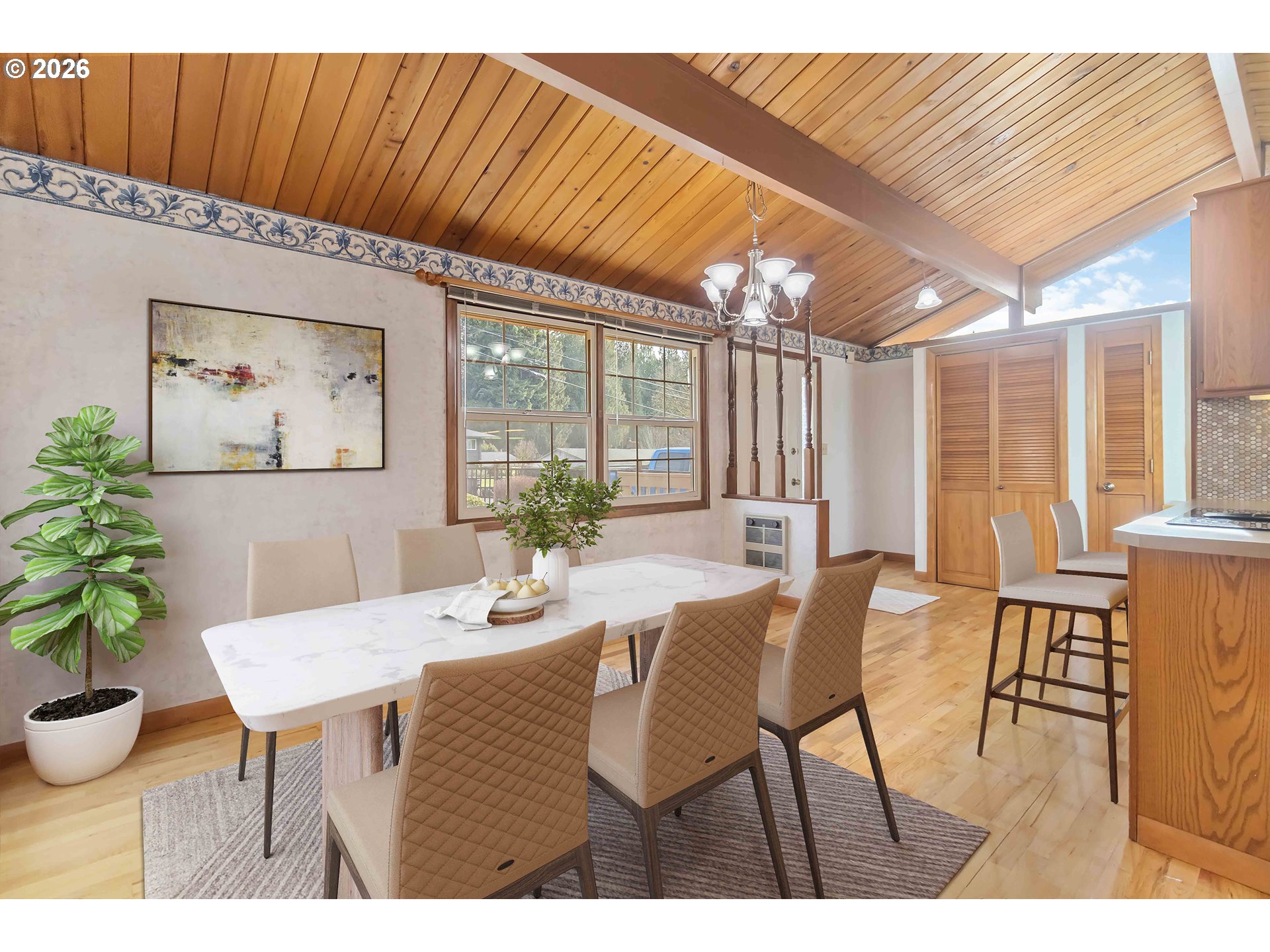Marketing RemarksWell-maintained two-story home with a daylight basement, thoughtfully positioned to capture forest views, natural light, and a strong sense of privacy throughout. Original hardwood floors, cedar-lined ceilings, and generous windows throughout add warmth and architectural character, while the surrounding trees create a peaceful, secluded setting.The main floor offers a comfortable and functional layout with two bedrooms and a full bathroom, along with inviting living spaces that connect easily to the heart of the home. The updated kitchen is both practical and welcoming, offering good flow for everyday living.Downstairs, the daylight basement includes a third bedroom, direct access to the backyard, and an office space that provides flexibility for a potential fourth bedroom, guest room, or work-from-home setup.Recent updates include a new roof installed in summer 2023, along with a heat pump and mini-split system added approximately two years ago for efficient, year-round comfort. With a flexible floor plan, backyard access from the daylight basement, and thoughtful updates already in place, this home has been carefully maintained and is ready for its next chapter.