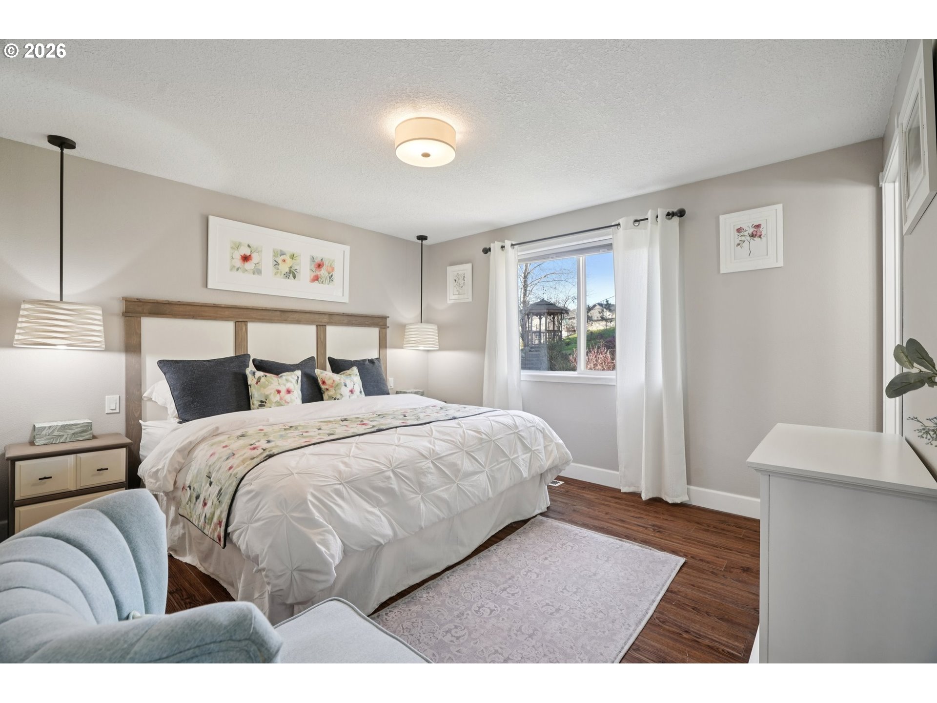 A must-see in person, this beautiful 4-bedroom, 3-bath home offers ideal flexibility for multi-generational living, set on an expansive fenced lot with breathtaking Mt. Hood sunrises and sunsets. And that’s just the beginning. Over the years, this home has seen many thoughtful updates and improvements, including new insulated garage doors, a stainless steel GE Profile four-door refrigerator, Ring doorbell with solar charger in 2025, along with a Ring floodlight camera added in 2024. The main suite was refreshed with a spa inspired shower in 2023, followed by a new cedar gazebo roof in 2022. In 2021, major upgrades included a Bryant 96% efficiency gas furnace, a new AC unit, a Nest smart thermostat, Gutter Helmet, insulated Jeld-Wen French doors with interior blinds, quartz countertops in the kitchen, and a custom primary closet by Portland Closet Co. Earlier updates in 2020 featured refaced kitchen cabinets, stainless steel KitchenAid induction range and dishwasher, motorized living room blinds, composite deck and railing, paver patio with retaining wall and fire pit, expanded in-ground sprinklers and drip irrigation. Additional improvements include a Sunsetter motorized awning with wind sensor in 2019, a new roof in 2017, LVP flooring, solid red oak stair treads, and the original in-ground sprinkler system installed in 2016.WOW so much to list and so much to miss if you don't get here soon!