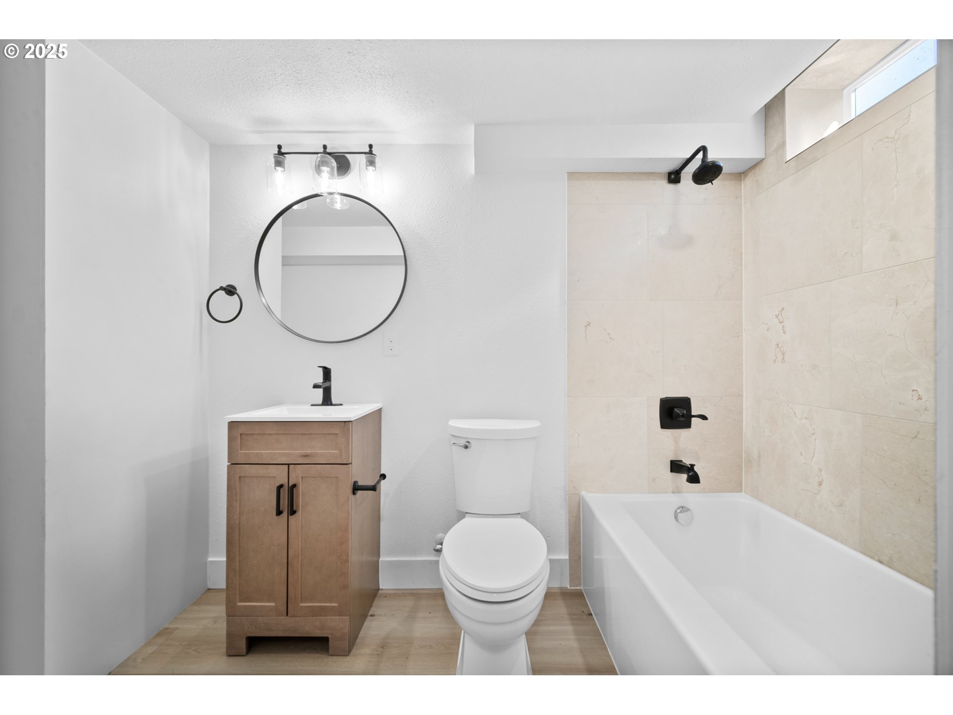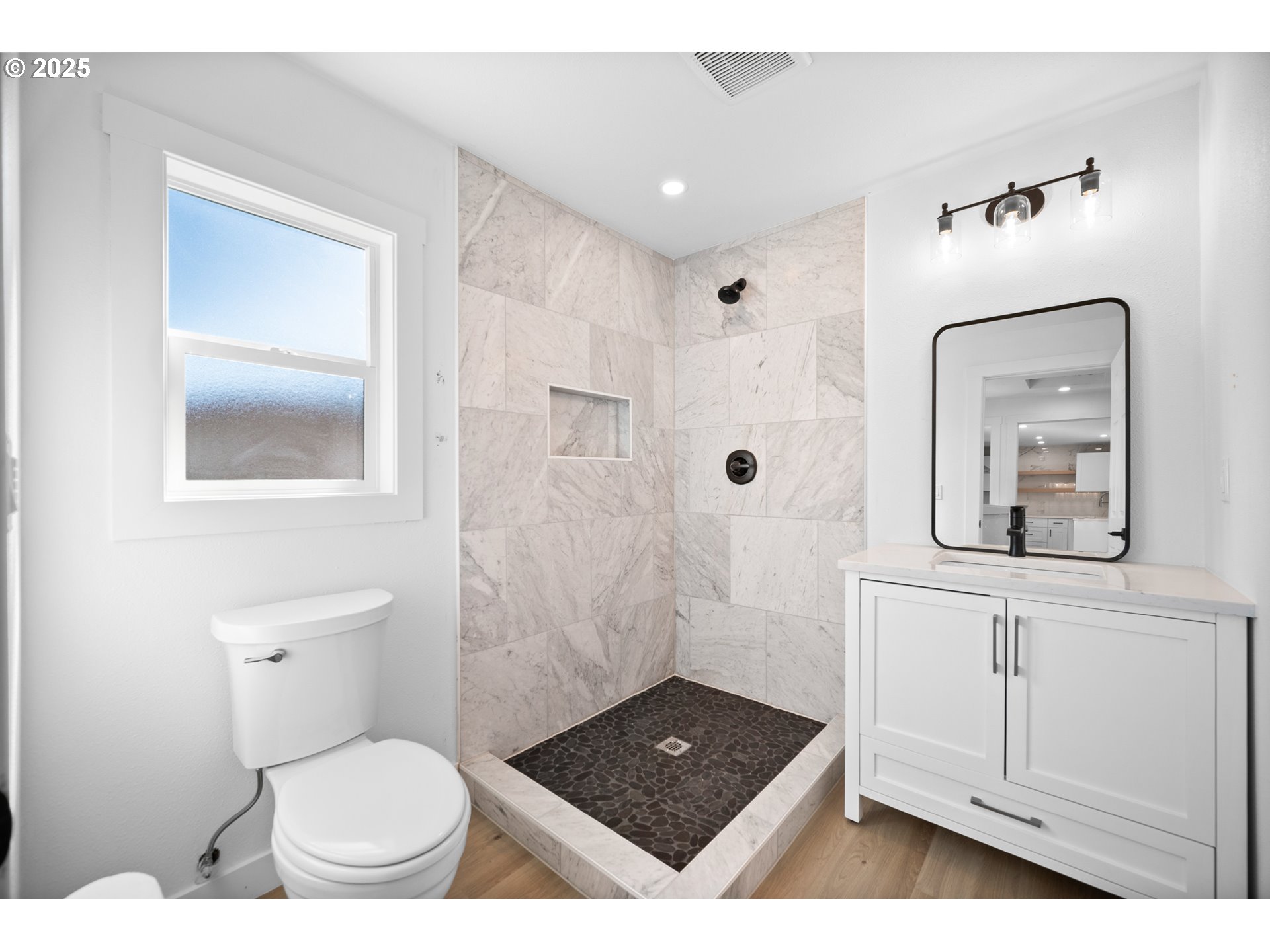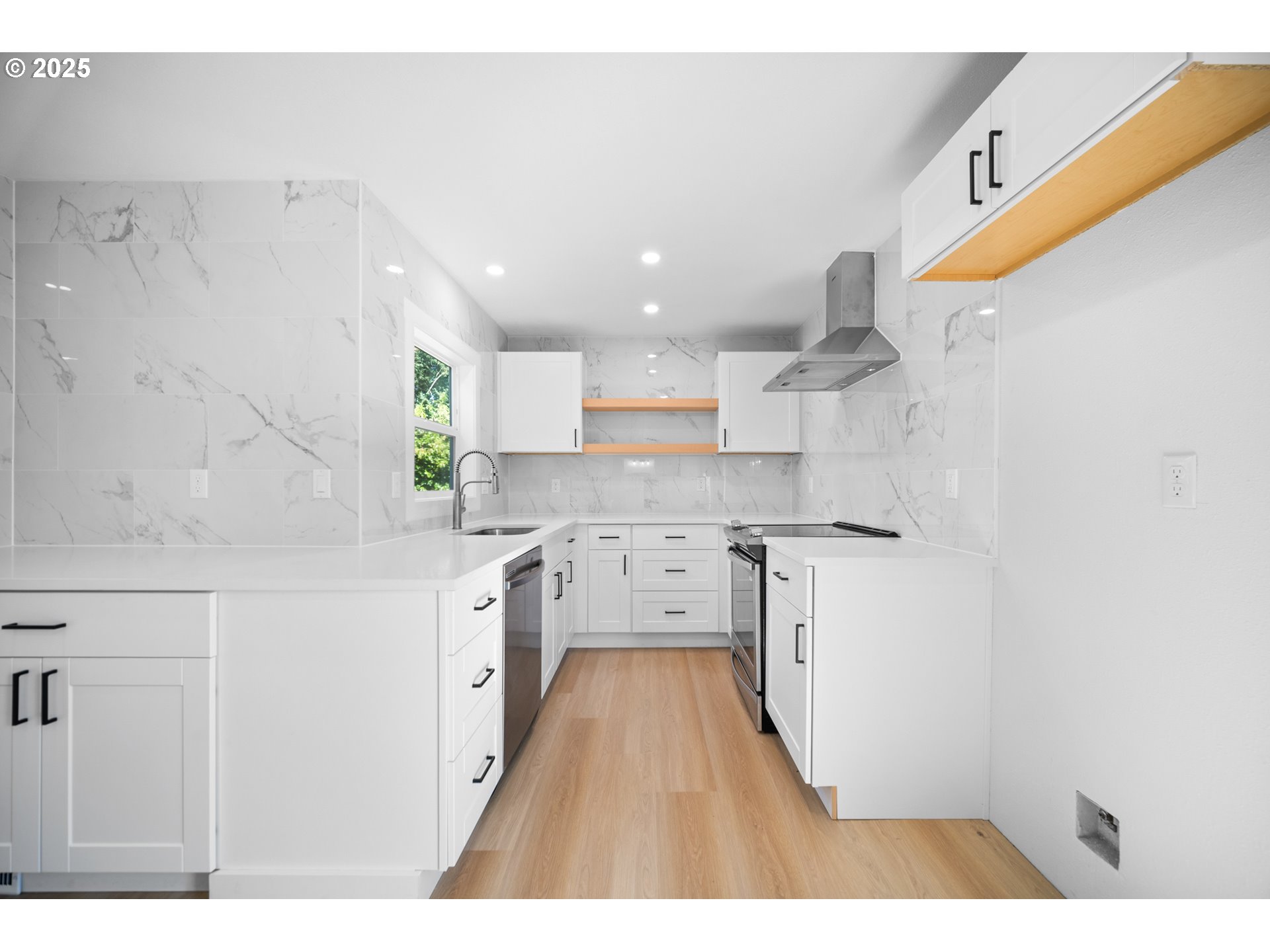 Tastefully remodeled cozy home centrally located in SE Portland. All new interior equipped with high end finishes throughout including a beautiful custom kitchen with full wall backsplash quarts. New roof, new electrical panel and appliances. Luxury vinyl laminate flooring throughout. This home has style and character with a corner wood burning fireplace, original to home. Basement is fully finished, some rooms can be converted to extra bedrooms.