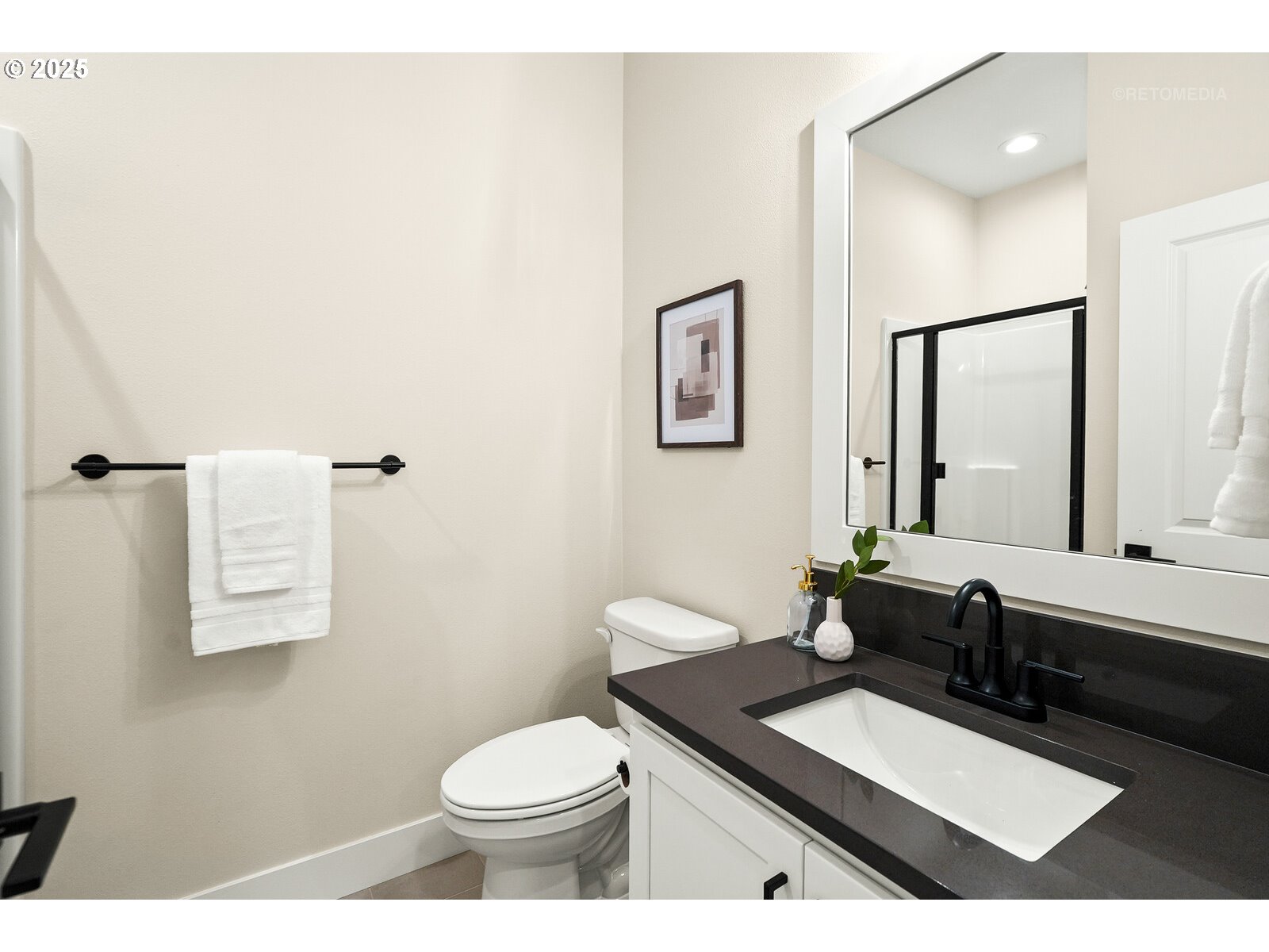 This gorgeous like-new home sits at the end of the street on one of the community’s largest lots, backing to protected green space for ultimate privacy and serene views. With 4 bedrooms (plus bonus room), 3.5 bathrooms, and modern touches throughout, this home combines timeless style with contemporary convenience.The main level features an open-concept layout connecting the living room, dining area, and chef’s kitchen. The living room showcases an elegant electric fireplace, while the kitchen is a chef’s dream with Bosch stainless steel appliances, quartz countertops, and a large island for casual dining or entertaining. Engineered hardwood flows throughout, and a versatile bonus room serves as a home office, fifth bedroom, or playroom. Step onto the deck and enjoy the peaceful backdrop of the lush green space. Upstairs, the primary suite is a private retreat with spa-like bath, large walk-in closet, and serene views. Two additional bedrooms, another full bath, and a convenient laundry room complete the upper level. The lower level offers a spacious family room, bedroom, full bath, and exterior access, making it perfect for guests or multi-generational living. Modern upgrades include a tankless water heater and an electric car charger in the garage, combining style with today’s lifestyle needs. Outside, the covered patio and fully fenced yard provide space for entertaining, gardening, or simply enjoying the natural surroundings. Located near top-rated schools, parks, trails, shopping, dining, and major employers, this home blends modern living with a serene, private setting.