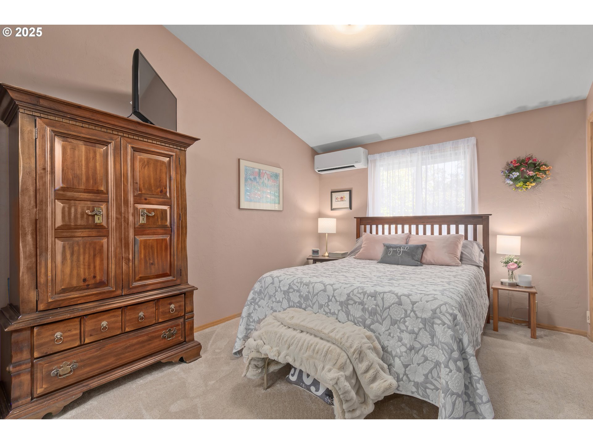 Discover your new sanctuary in this immaculately remodeled home, perfectly situated on a panhandle lot at the end of a quiet cul-de-sac for ultimate privacy. This turnkey property combines the convenience of modern updates with the serenity of a private setting. Step inside to find a home transformed with modern charm. New Luxury Vinyl Plank flooring flows throughout the bright and airy space, complemented by large vaulted ceilings. The kitchen features new quartz countertops and freshly refinished cabinets. Stay comfortable all year long with the newly installed ductless A/C or cozy up by the woodstove during the winter. The living space seamlessly extends outdoors to your own private, fully-fenced backyard. Entertain guests or simply relax in any weather on the large covered deck, all while enjoying the beautifully landscaped surroundings maintained effortlessly by an in-ground sprinkler system. Don't miss this rare opportunity to own a home that perfectly blends privacy, style, and modern comfort.