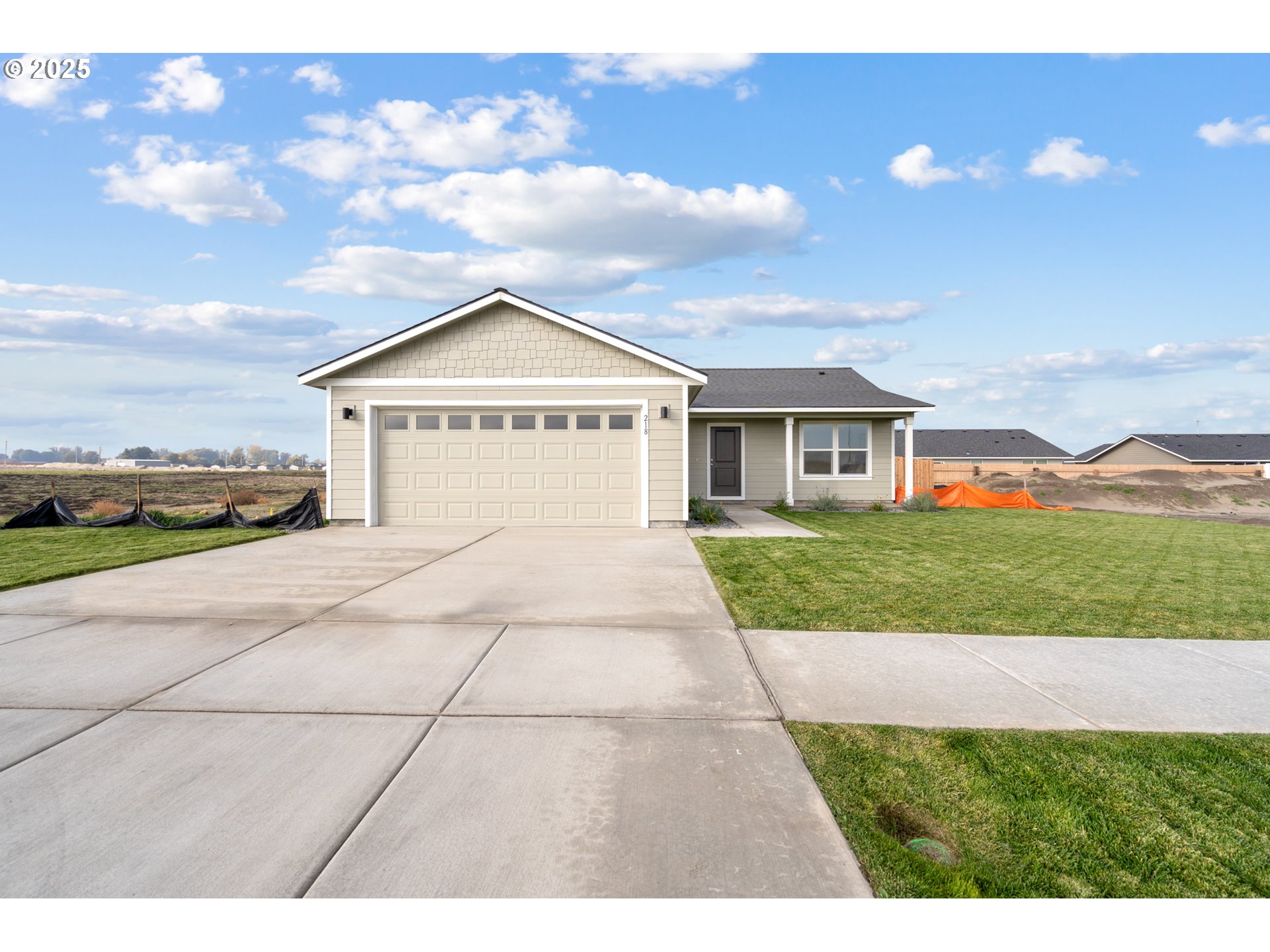 New, Improved Price + Cedar Fencing! Smart design, energy efficiency, and everyday comfort come together in the Yucca plan by Woodhill Homes, located in Boardman’s growing River Ridge Estates community. This 1,260 sq ft one-story home offers 3 bedrooms, 2 bathrooms, and a spacious insulated 2-car garage. Thoughtfully designed for modern living, it features vaulted ceilings, durable LVP flooring throughout the main living areas, and Shaw carpeting in the bedrooms. The kitchen includes Huntwood soft-close cabinetry, stainless steel appliances, slab quartz countertops, and a central island that opens to the dining and living spaces. The private primary suite offers a walk-in closet, dual-sink vanity, and a step-in shower with glass doors. Outside, enjoy a covered front porch, landscaped front yard with underground sprinklers, and a newly installed 6-foot cedar privacy fence in the backyard. Built to Energy Star standards for long-term savings and comfort. Buyers are encouraged to inquire about the BCDA Home Buyer Grant program for potential incentives.