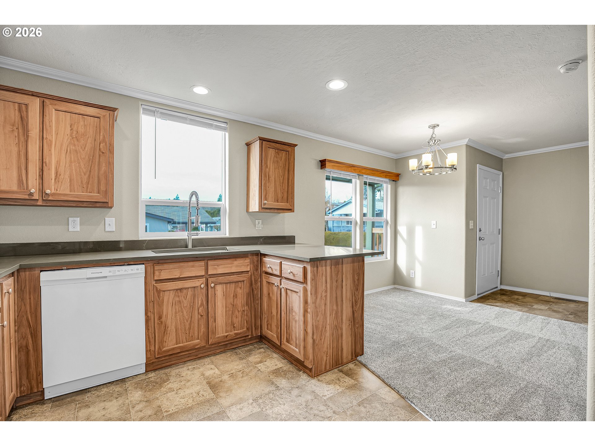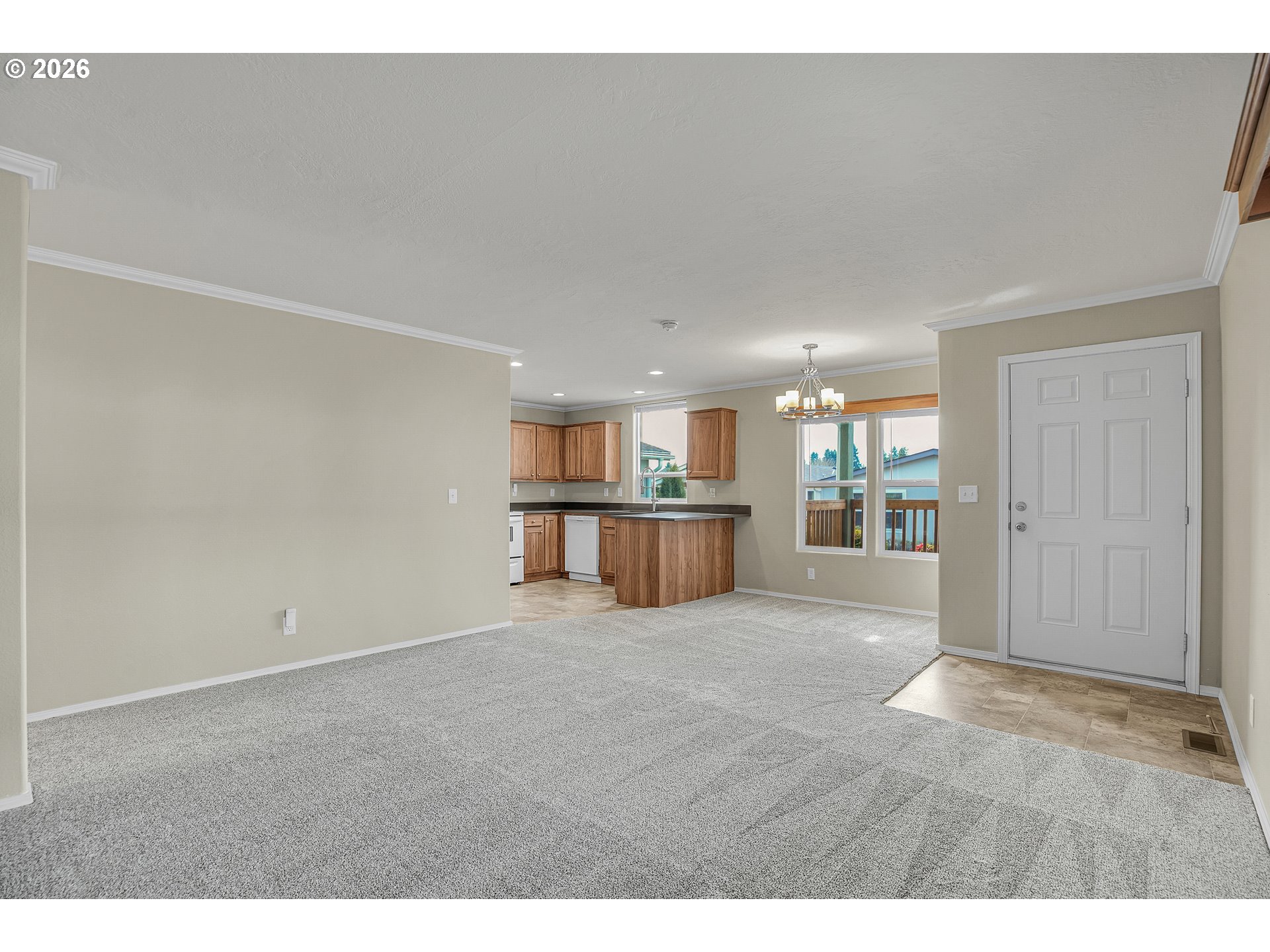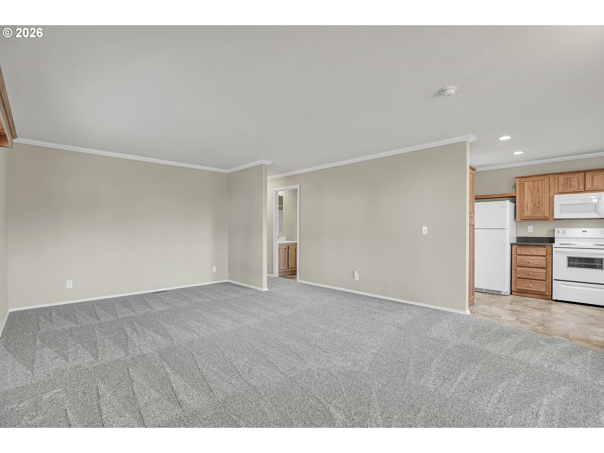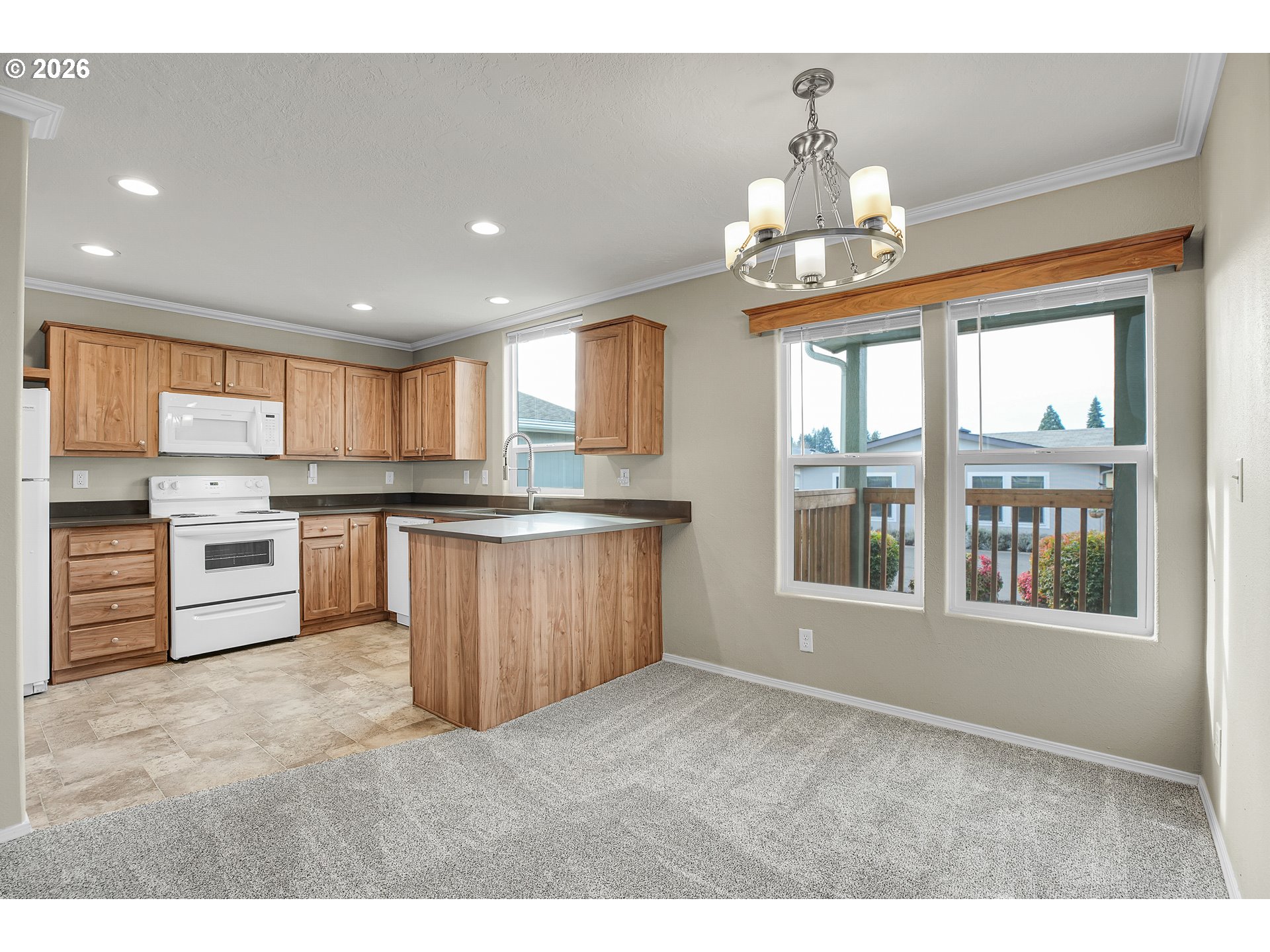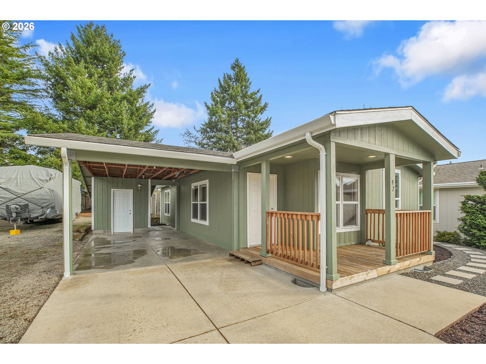 Updated 2018 manufactured home, the newest in the Oak Haven community, in this desirable over 55+ park. With 1,036 sq ft, this 2 bedroom, 2 bath home offers a modern, move-in-ready feel with thoughtful updates. Recent improvements include quartz countertops in the kitchen and both bathrooms, new modern sinks and faucets, brand new carpet, cordless blinds, new LED lighting throughout most of the home and a brand-new HVAC system installed August 2025. Washer and dryer included with an attached carport and storage shed. The exterior has been refreshed with new bark dust and a step-stone paver walkway for added curb appeal. A functional floor plan and comfortable living spaces make this hime easy to enjoy. Current space rent is $834.75. Two small pets allowed (up to 30 lbs, registration required). RV parking may be available for an additional monthly fee. Seller is a licensed real estate broker in Washington State.