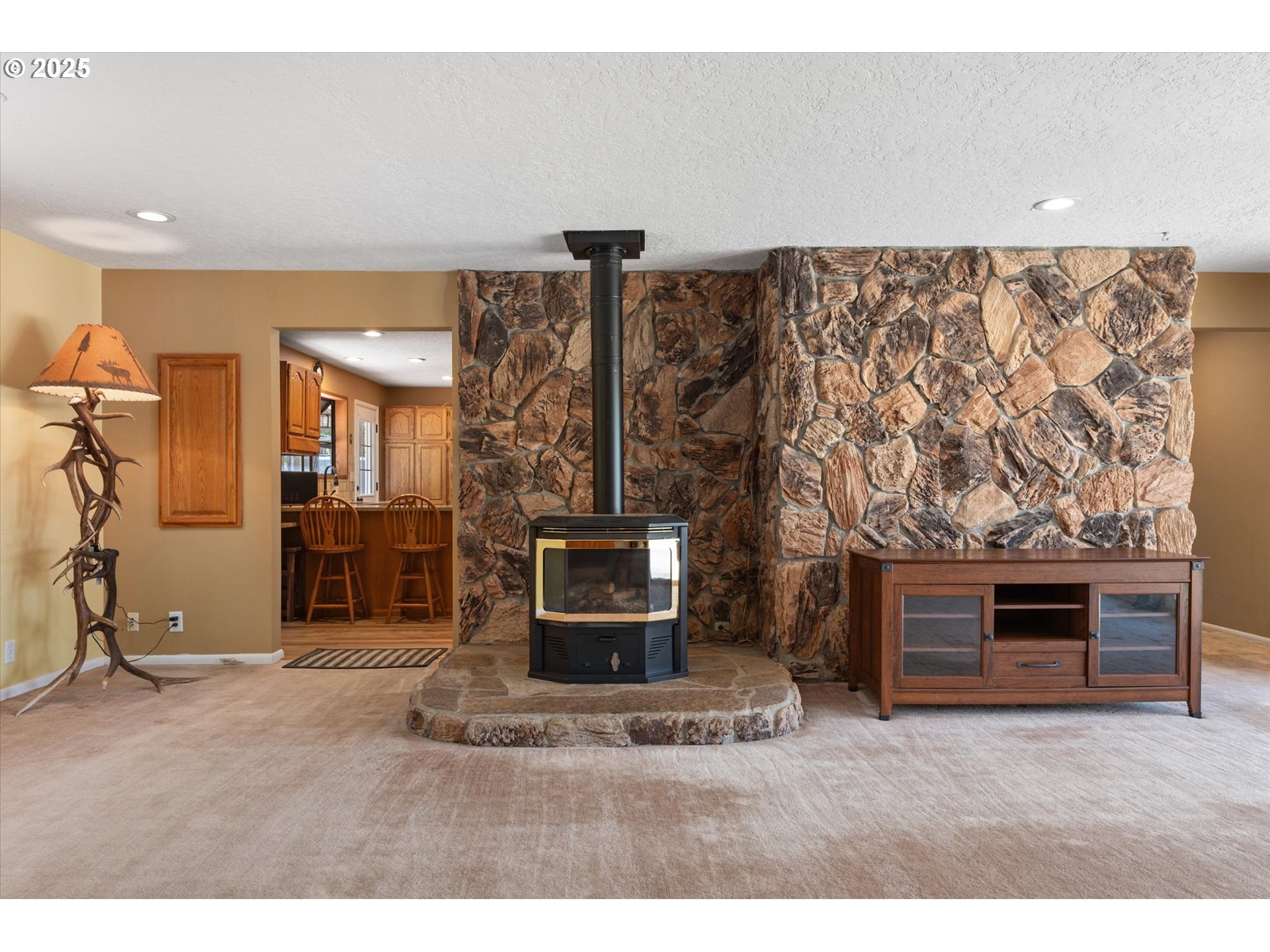 Set in the peaceful foothills of the Elkhorn Mountains, this expansive single-level ranch offers 3,424 sq ft of living space on 2.03 acres. With 5 bedrooms and 3 full baths, the home blends comfort, space, and scenic surroundings. Two spacious living areas with oversized windows capture abundant natural light and sweeping views of the meadows and mountains. The kitchen is designed for gathering, featuring granite countertops, an island with seating, and a wet bar or coffee station. The primary suite is a private retreat with its own wood stove, sunken jetted tub, sauna, and dual sliding doors leading to a patio and secluded hot tub area. Additional highlights include dual furnaces, dual water heaters, two wood stoves, and two gas stoves for year-round comfort. Outside, enjoy an attached 2-car garage, outbuilding for storage, RV parking, and a private driveway for added seclusion. Ideally located near Phillips Reservoir, Sumpter, and Baker City with easy access to hunting, fishing, hiking, and ATV/snowmobile trails. A rare opportunity to own a versatile mountain retreat.