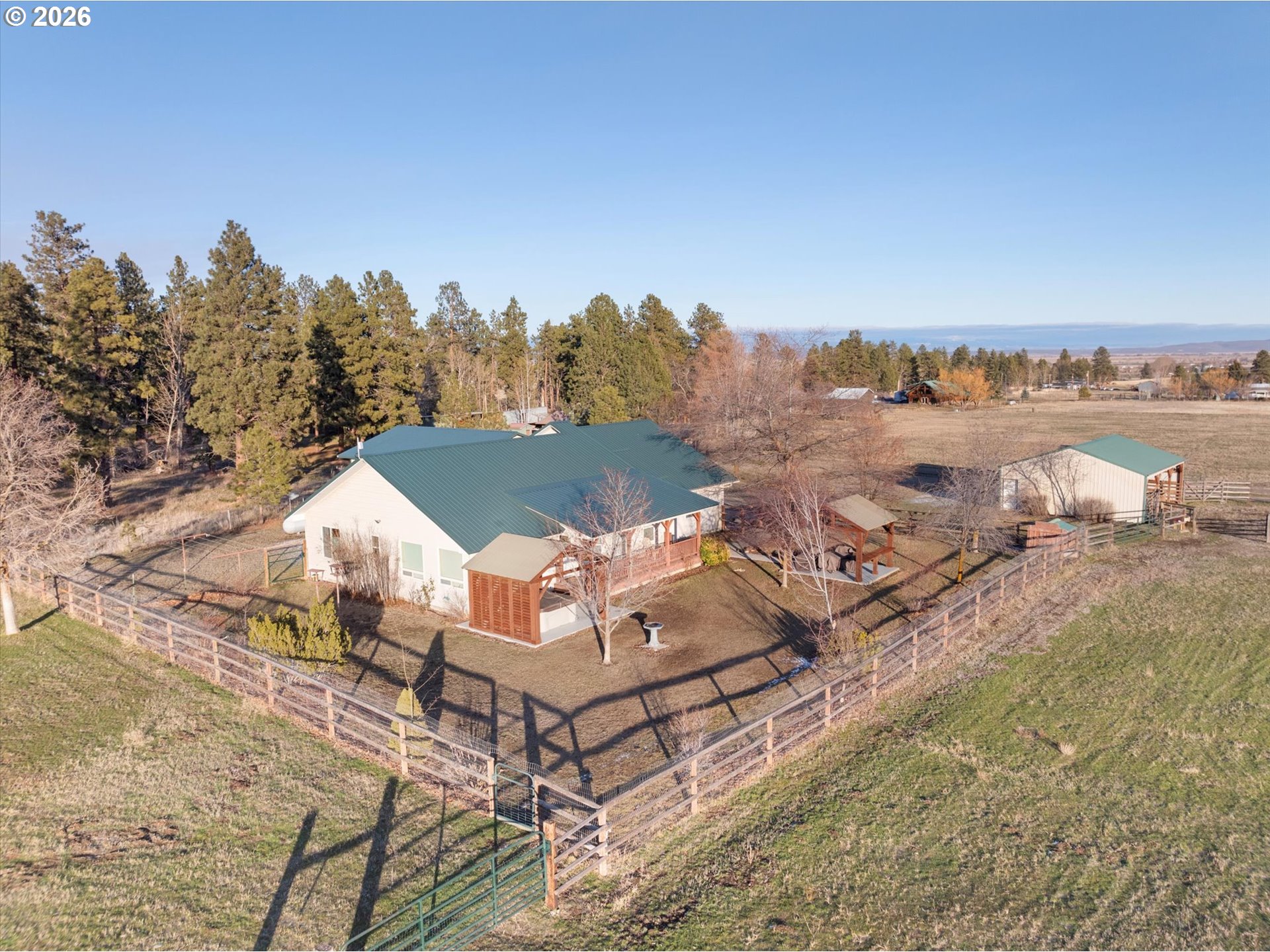 Mountain View Retreat with Horse-Ready Facilities! Wake up to mountain views galore at this rural property that perfectly blends comfortable living with exceptional outdoor amenities. The home features 3 bedrooms and 2 bathrooms, both with modern walk-in showers. A dedicated office provides the ideal space for remote work or quiet study, while the double garage offers ample room for vehicles and storage. Designed with functionality in mind, the property includes a barn area with tack room and hay storage and water rights for irrigation, making it a standout for equestrian enthusiasts. Outside, you’ll find fenced and cross-fenced pastures, corrals, and two pole buildings with three sides enclosed, ideal for equipment. A 10 x 20 m/l storage building adds even more versatility. Generator and transfer plug. This property has it all! Unwind and enjoy the scenery from the patio area or relax year-round in the covered hot tub, all while taking in sweeping mountain vistas that surround the property. This is a rare opportunity to own an acreage offering comfort, functionality, and breathtaking views—perfect for horse lovers or anyone seeking space and serenity. Schedule your showing today and experience this remarkable property for yourself.