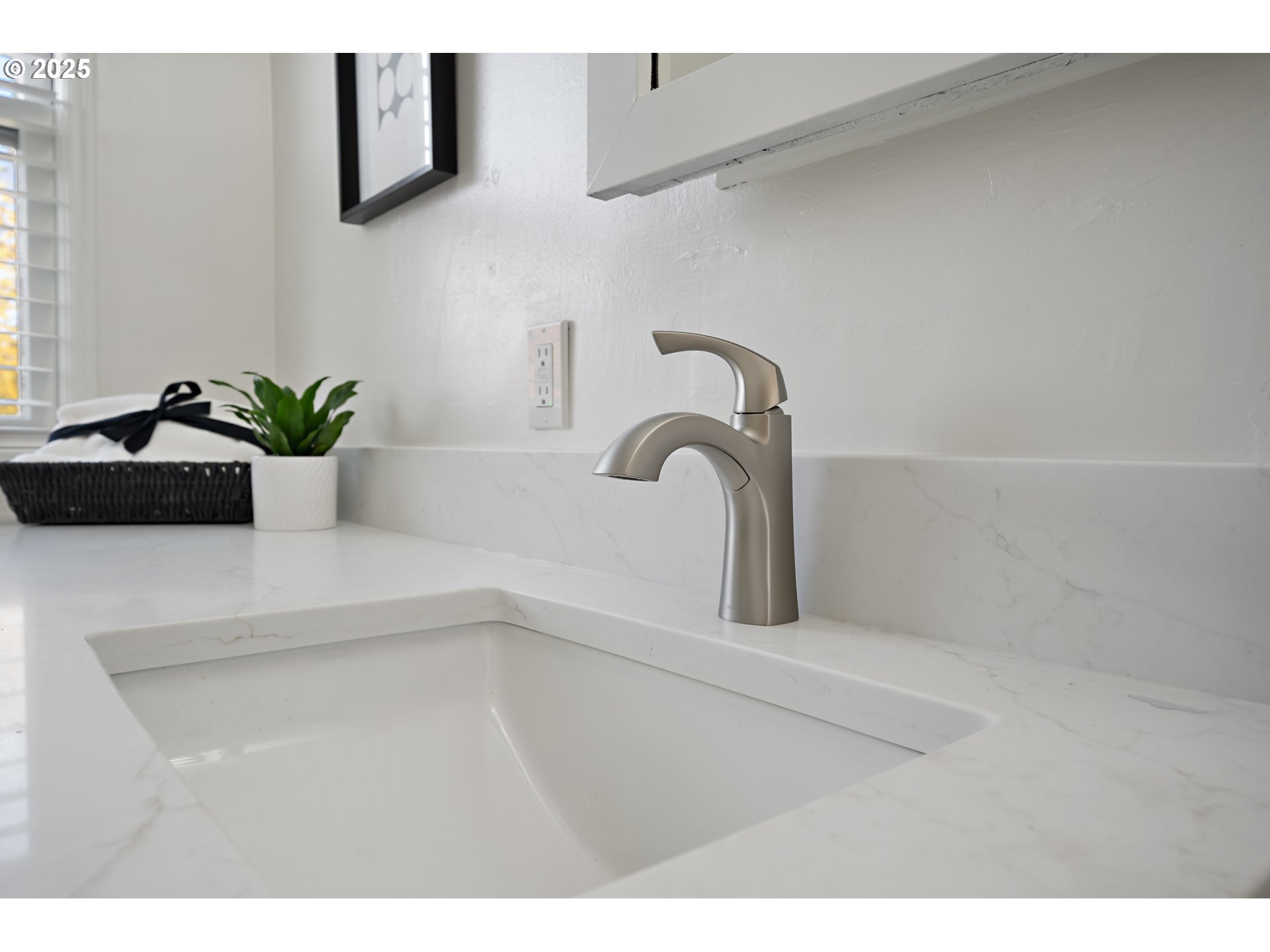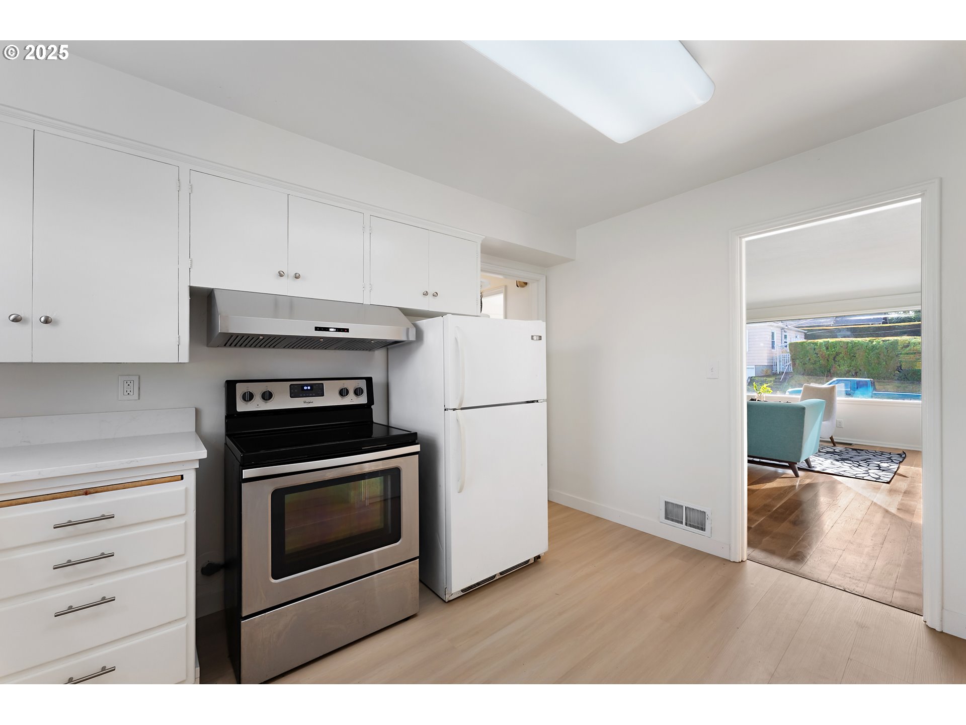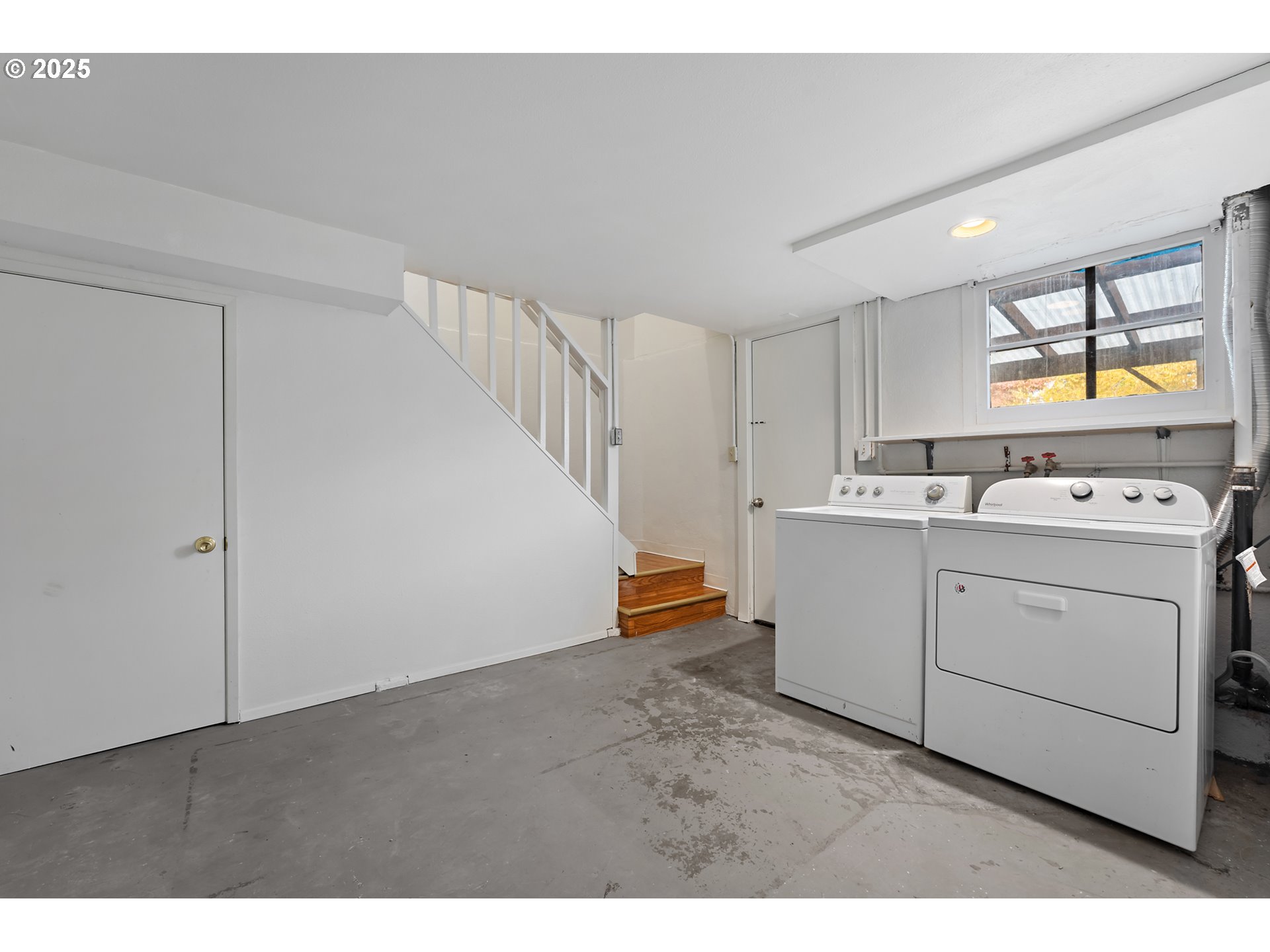 Great location in North Tabor, easy living with lots of updates. Just the right size and with the conveniences you need- attached garage plus two beds and full bath on main. Gleaming, newly refinished hardwoods paired with large windows make the living room warm, bright and welcoming. A woodburning fireplace with mantle add to the coziness factor. The spacious area has plenty of room for guests to gather. New paint throughout is a blank canvas for art and decor. Newer central air conditioning ready when summer returns. Updated kitchen is equipped with a brand new SS dishwasher, hood, quartz slab counters, large SS sink and LVP flooring. Main floor bath also features new LVP flooring, sink and slab quartz counters. Both upstairs bedrooms, dining room and entry have beautiful light fixtures. Separate entrance downstairs, for possible ADU or multi-gen living. Steps to the basement entrance are along the east side of the house. Lower level has large laundry area with washer & dryer, allowing plenty of room for cabinets, shelves, and hanging space for wash day. A full bath with new, shiny shower stall is next to the spacious, non-conforming third bedroom, perfect for guests or teens who prefer a little privacy, media room, craft area, play room- or WFH space. The adjacent storage room is large enough for sports/camping/ski equipment, or could be finished as a den for extra living space. Attached garage has EV outlet installed. Substantial, private back yard is a possible space for a detached ADU (Buyer to do due diligence).This North Tabor home is conveniently located 1 block from QFC, 2 blocks from Tabor Tavern, and just minutes to Fred Meyer on Glisan, Providence Hospital, and Mt Tabor Park. Sewer line replaced in 2017, tank decommissioned in 2022, new hot water heater 2025. Move-in ready so you can get settled before the holidays.