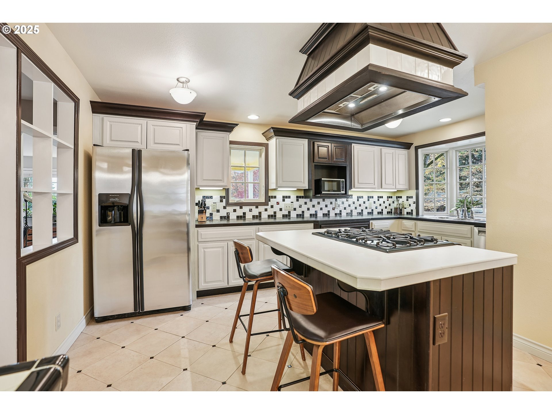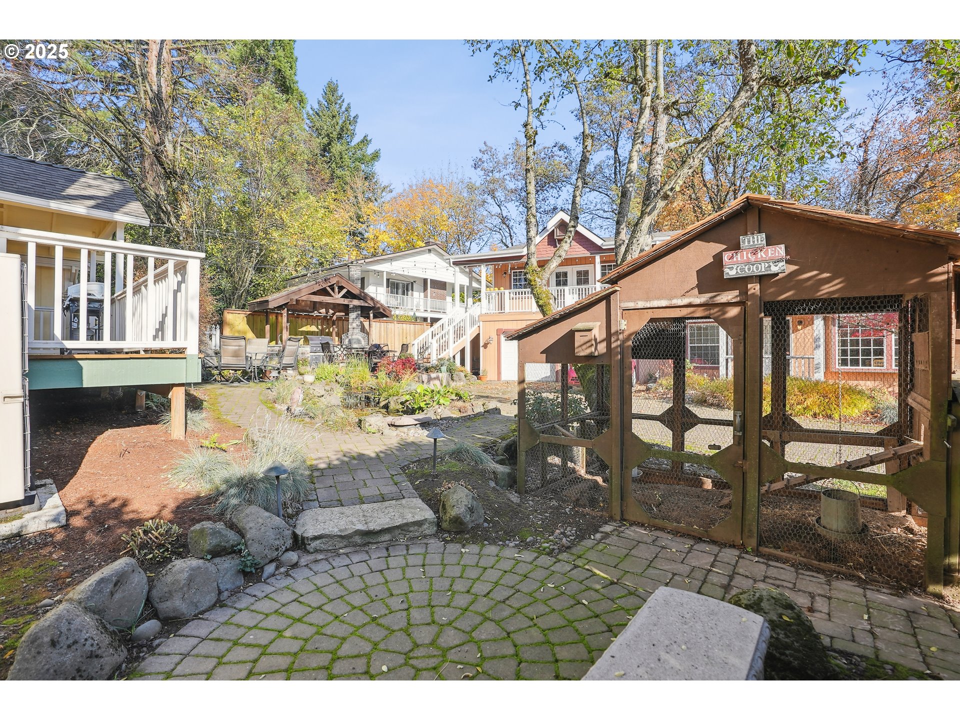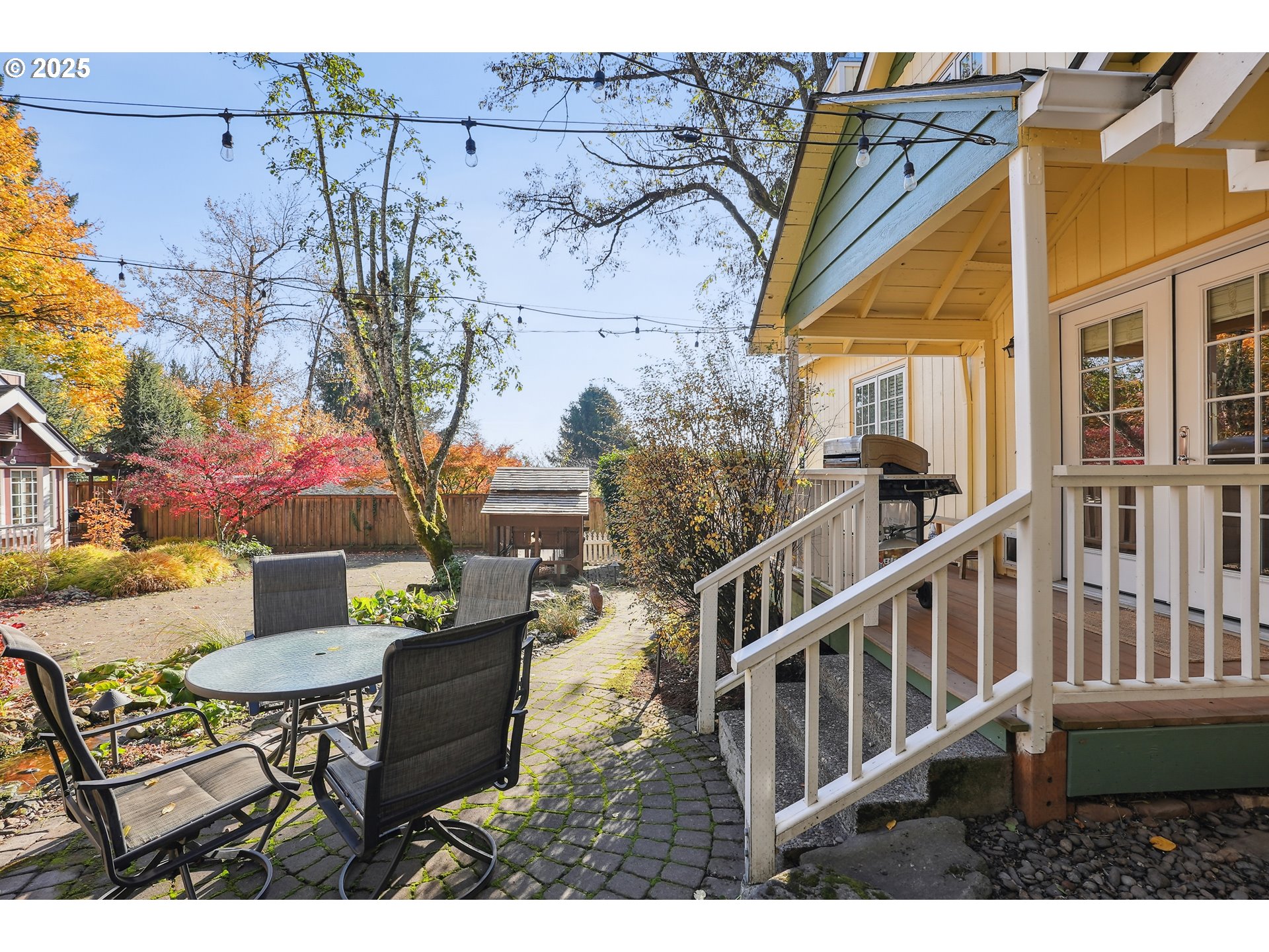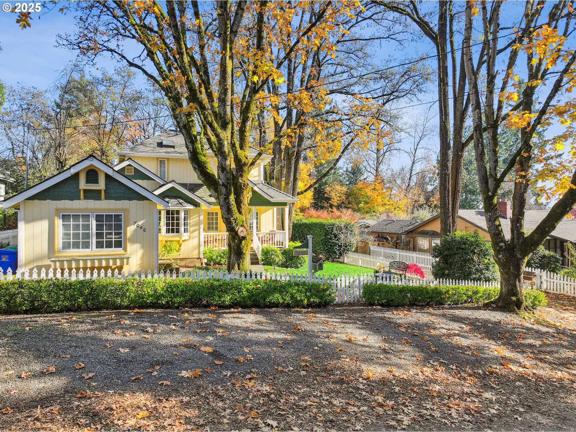 Set in the heart of sought-after Multnomah Village, this storybook farmhouse delivers classic charm and modern updates that make it feel like home from the very first step. A white picket fence frames the front yard, leading to a covered porch perfect for leisurely mornings with coffee or serene evenings watching the sunset. Inside, natural light fills the home, highlighting a layout designed for both comfort and connection. The living room centers around a striking gas fireplace, a focal point that sets the tone for cozy gatherings or quiet nights in. The open floor plan flows effortlessly into the dining area and kitchen, where style meets function. Expansive counters, a gas stove, custom cabinetry and a breakfast nook that complements the home’s character make this space ideal for everyday meals or entertaining. Thoughtful details throughout the main level combine warmth and practicality. Upstairs, the primary suite is a private retreat. Vaulted ceilings create an airy, tranquil atmosphere, while a generous walk-in closet and spa-inspired ensuite, complete with a jetted tub, walk-in shower, double sinks, and private balcony, offer a luxurious escape. Two additional bedrooms provide flexibility for guests, a home office, or play, including one with a built-in loft bed. A newer HVAC system ensures comfort year-round. Step outside to an expansive porch, extending your living space into a lush oasis. A cascading water feature and functional waterwheel bring a touch of whimsy, while mature landscaping, a flourishing apple tree, and chicken coop provide a serene retreat. Just beyond your front door, adventure and community await. Hike tree-lined trails, stroll through the charming shops and eateries that make the Village so special, or visit nearby Gabriel Park with 90 acres of green space, trails, and recreational amenities. All of this - just six miles from downtown Portland- where small-town character blends w/ effortless living and the city at your fingertips. [Home Energy Score = 9. HES Report at https://rpt.greenbuildingregistry.com/hes/OR10238612]
