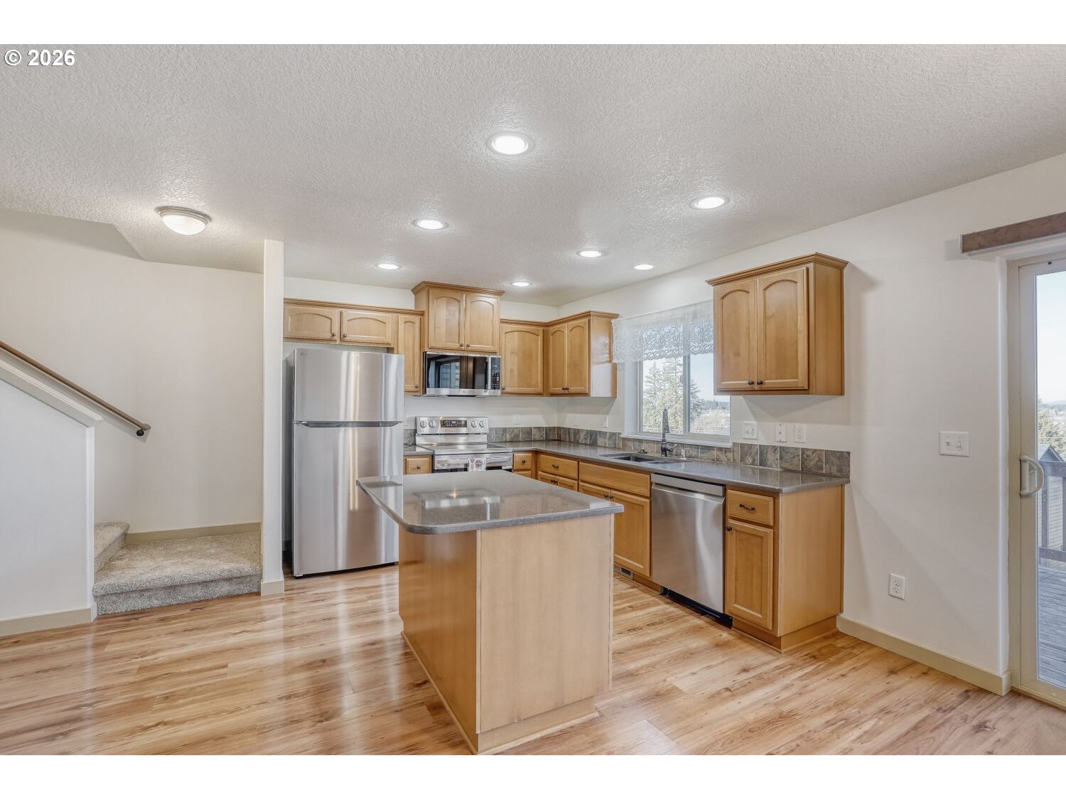 Beautifully maintained residence located at 1402 NE 71st Dr, Vancouver, WA 98665. Interior has been freshly painted and features new carpeting. The kitchen is equipped with quartz countertops, an island, brand-new appliances, bronze hardware, updated lighting, and faucets.All kitchen appliances included. Home offers 8-foot ceilings and is highly energy efficient. Blackout curtains are installed in the primary suite only. Washer and dryer are included. Enjoy a spacious deck with a Mt. St. Helens view and a fully fenced backyard. location with easy access to I-5 and I-205, approximately 20 minutes to downtown Portland.