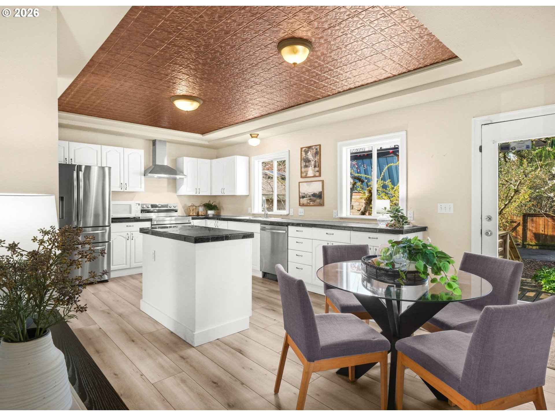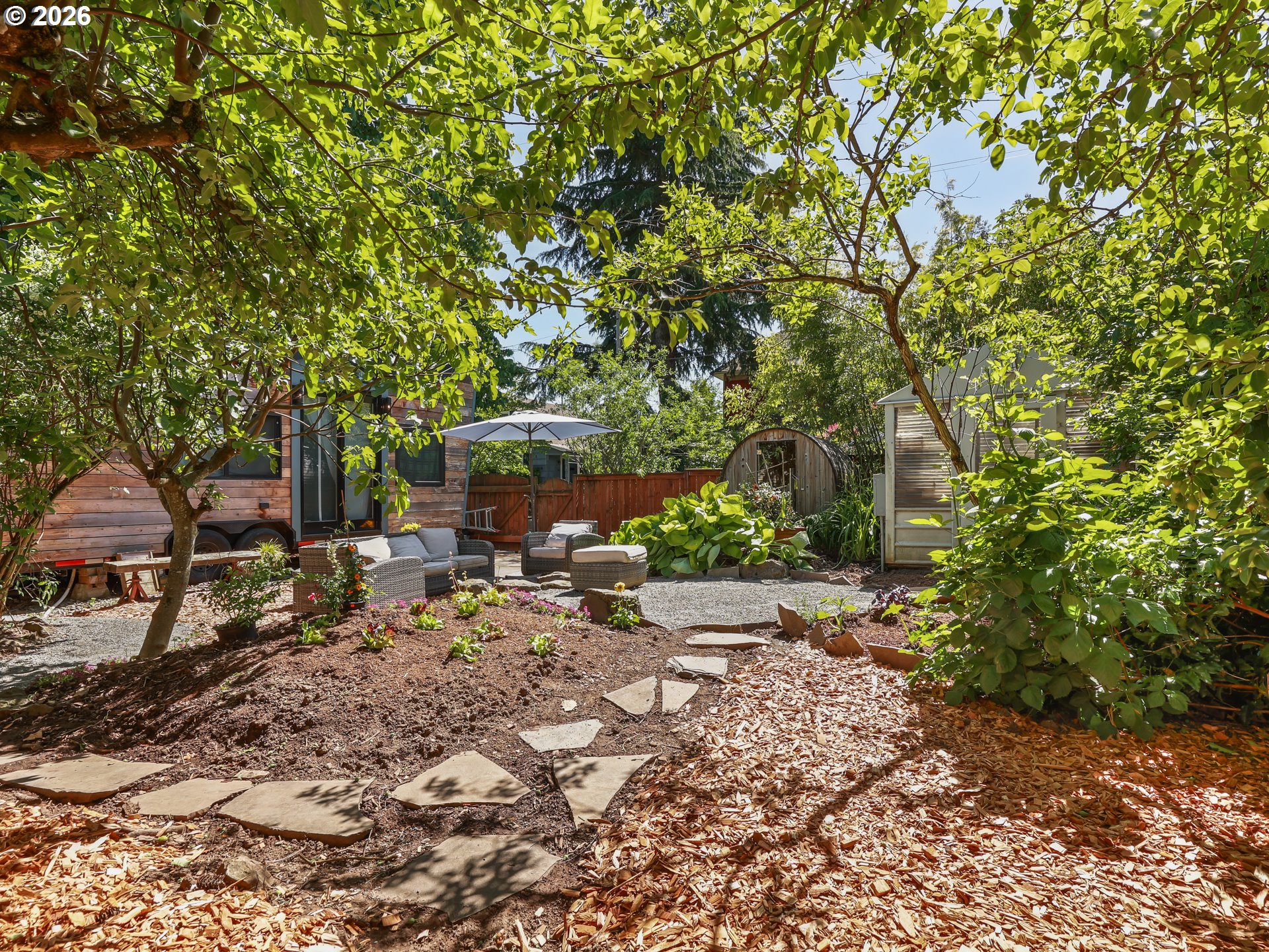 This isn’t just a home, it’s one that grows with you.1925 Dutch Colonial in the heart of St. Johns, one of the area’s original farmhouses, full of warmth, character, and everyday livability. With 5 bedrooms and 2 full baths, the layout offers flexibility for how you live, gather, and unwind. Two bedrooms and a full bath on the main level create easy, comfortable living, while three bedrooms upstairs offer space to spread out.At the center of the home, the kitchen is filled with natural light and looks out onto something truly special, a lush, established organic permaculture garden. This is not just a yard, but a thriving urban food forest with apple, peach, pear, plum, persimmon, jujube, raspberry, huckleberry, and more. A space to slow down, harvest, and connect to the rhythm of the seasons.Recent updates including new flooring in the kitchen and bathrooms, updated appliances, attic insulation, fresh exterior paint, and new windows bring ease to daily living while still leaving room to make it your own.Outside, alley access and a flexible backyard create opportunity for gathering, projects, or expansion. A dedicated pad for a tiny home, 50-amp hookup, and additional power for a sauna or greenhouse support a lifestyle that blends creativity, sustainability, and possibility.The basement offers additional potential with a legal egress window and separate exterior electrical access, opening the door for future living space or dual living, buyer to verify.Just minutes from Pier Park, Cathedral Park, Forest Park, and the shops, cafes, and local favorites that define the St. Johns vibe, this home offers a rare balance of charm, community, and connection to nature.A home that invites you to live simply, gather often, and grow something meaningful.