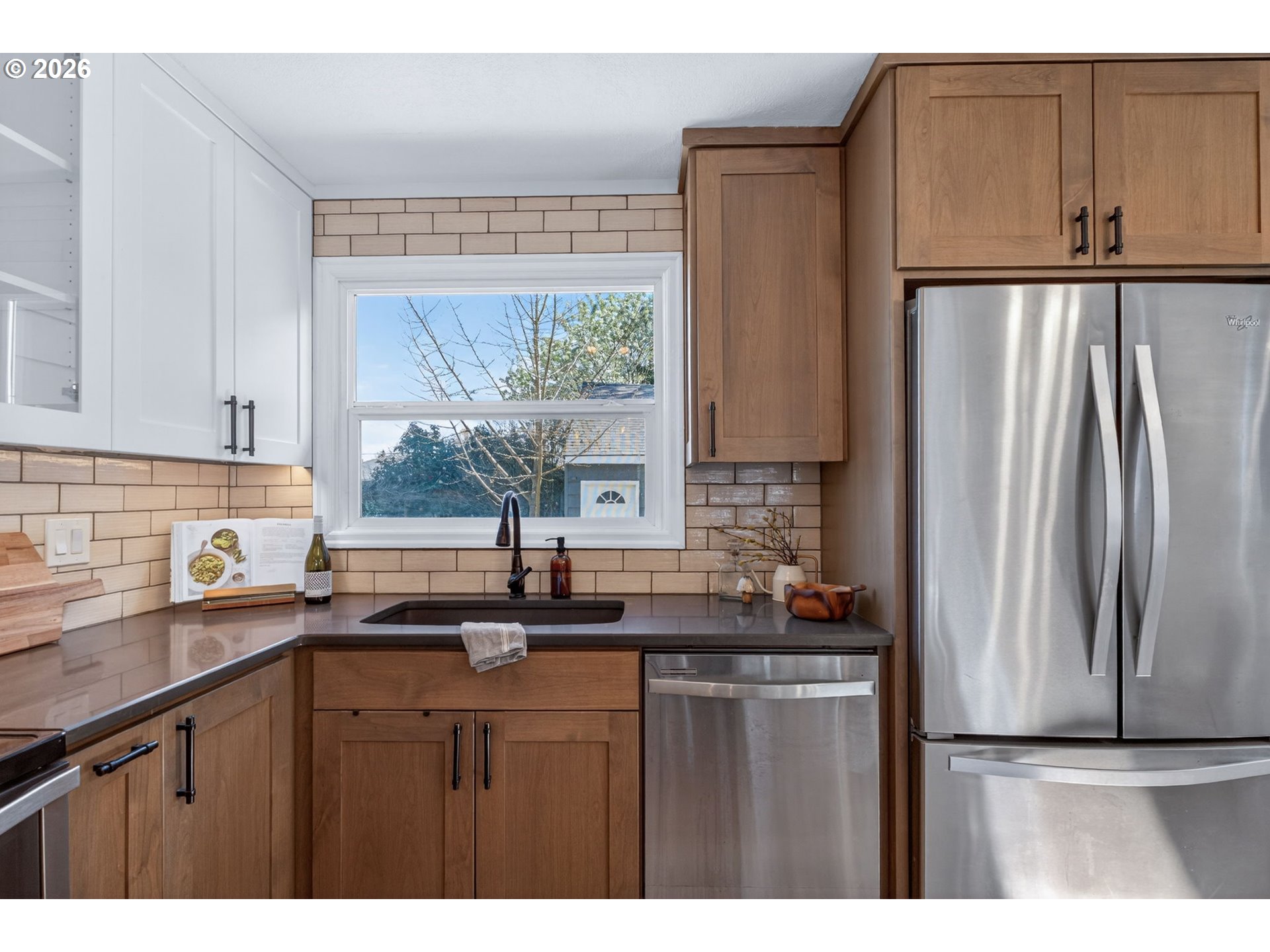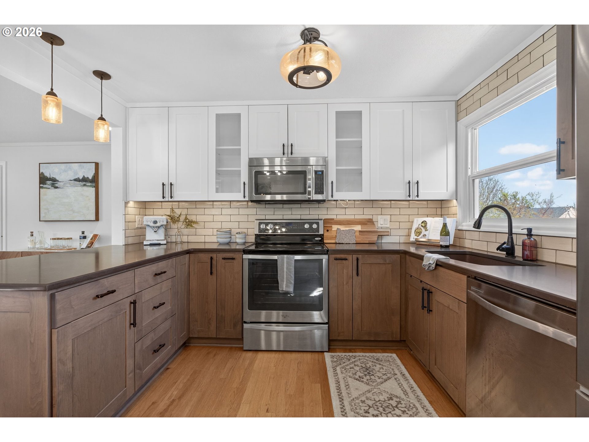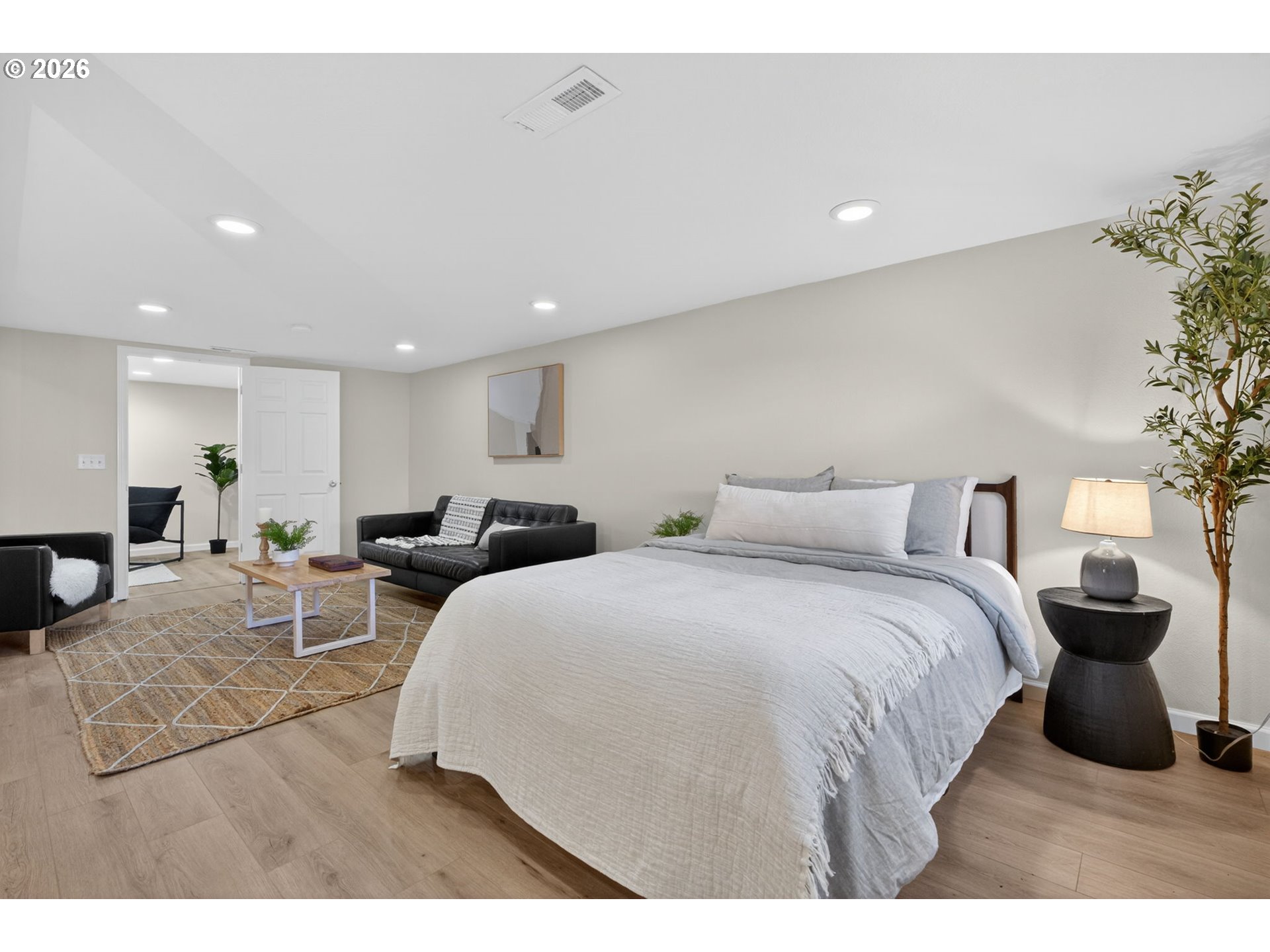 This is an adorable Roseway bungalow that's been lovingly and practically updated. Even before you step in, the charm begins on the front porch great for sitting. Inside you're warmly welcomed by the living room with hardwood floors, reclaimed wood hearth and built in shelving. The kitchen is open to the living room, incredibly functional and includes a bar seating area. Two bedrooms and a full bath round out the main floor. The current owners created a fully permitted primary suite in the basement, including a walk in closet, jetted tub and huge bedroom. The space includes enough room to add a kitchenette and create a second living area or simply take advantage of the room to set up crafts, games, workout... whatever you choose. Easy parking on the driveway leads to the two car garage great for studio space, an additional rec room, or even an actual place to park your car. With Wellington Park, Guilder Coffee and food carts nearby, the Roseway neighborhood offers as much charm as this well kept home. [Home Energy Score = 8. HES Report at https://rpt.greenbuildingregistry.com/hes/OR10246472]
