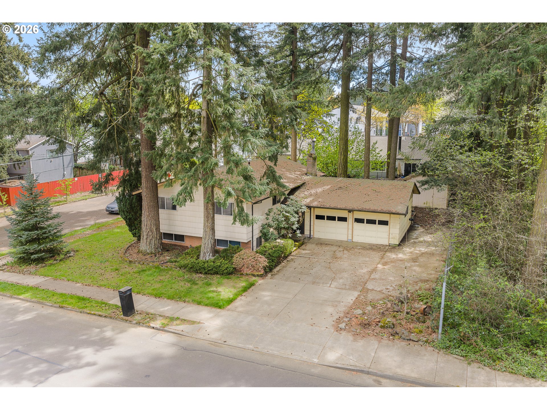Opportunity awaits in this split level with daylight basement tucked into the trees on a spacious .18 acre corner lot in Gresham’s Wilkes East neighborhood. This fixer offers strong upside with a flexible layout and generous square footage across two levels. The main floor features three bedrooms and two full bathrooms, including a bedroom with a full bathroom for those seeking minimal use of stairs. A bright living room centered around a fireplace and large windows brings in natural light, while the layout offers easy flow between the living, kitchen, and dining areas. A covered deck off the dining space extends your living area outdoors. The lower level adds two additional bedrooms, a full bathroom, and a spacious bonus or family room with its own fireplace, offering great separation of space for guests, multigenerational living, or rental potential. A full laundry room with utility sink provides added convenience and storage. Gas forced air heating helps support efficient utility costs. Outside, the .18 acre corner lot features a fully fenced backyard, a wooded backdrop for added privacy, and multiple storage outbuildings that could serve as workshop spaces or additional storage. Ideally located adjacent to Nadaka Nature Park and in close proximity to Blue Lake Regional Park, Gresham Station Shopping Center, Columbia Gorge Premium Outlets, and Downtown Gresham, offering access to trails, recreation, shopping, dining, and local amenities. A compelling opportunity for investors or buyers looking to build equity in an established neighborhood with convenient access to everyday amenities and commuter routes.