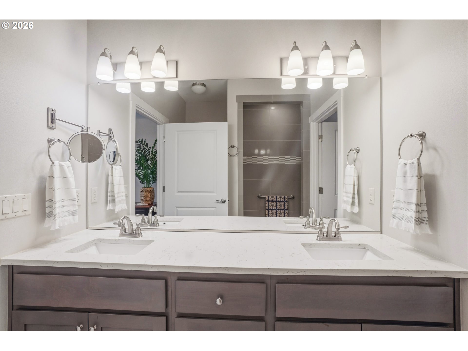 Detached single-level home in the gated 55+ community of Whipple Creek Village — two gated entrances, no shared walls. Originally the model home, loaded with builder upgrades. Features hardwood floors, quartz countertops, vaulted ceilings, gas fireplace, and a dining nook off the main living area. Primary suite includes a roll-in shower and walk-in closet. Covered patio with electric awning overlooks a fully fenced, low-maintenance yard with drip irrigation. Minutes from Legacy Salmon Creek Hospital, Kaiser Permanente, Ilani Casino, and Clark County Fairgrounds.