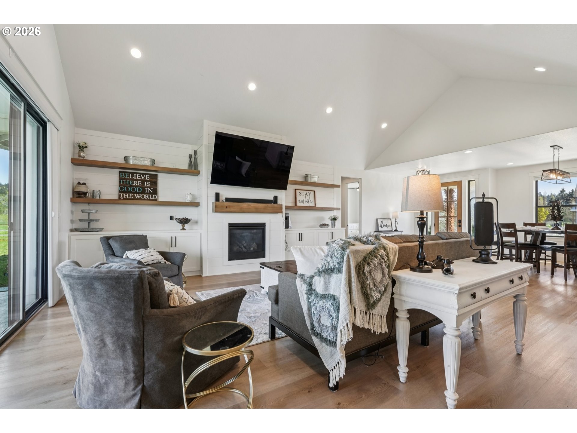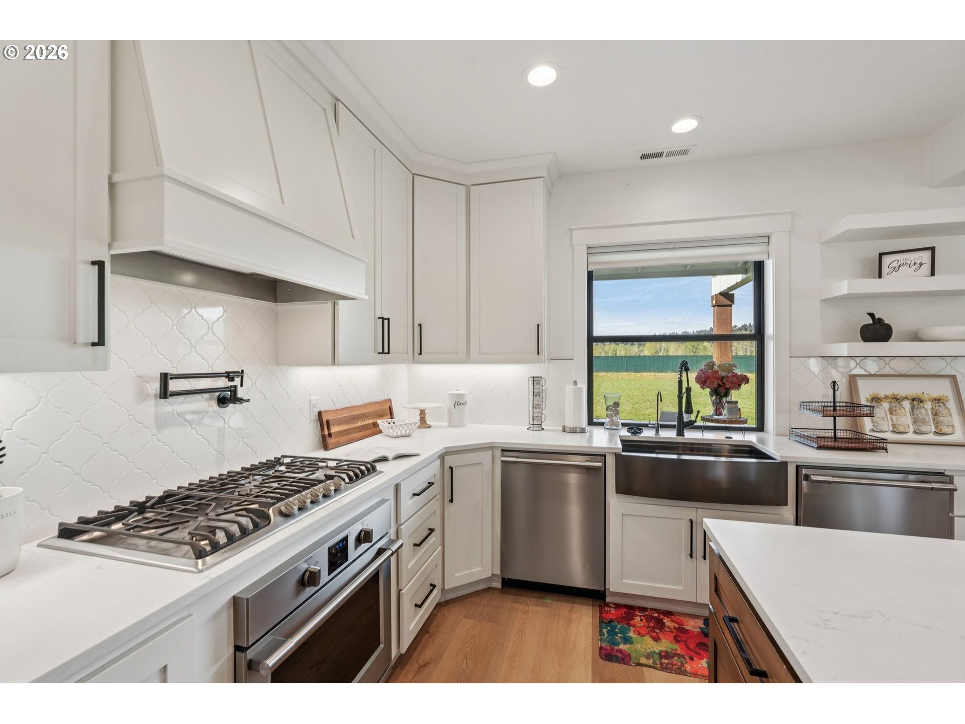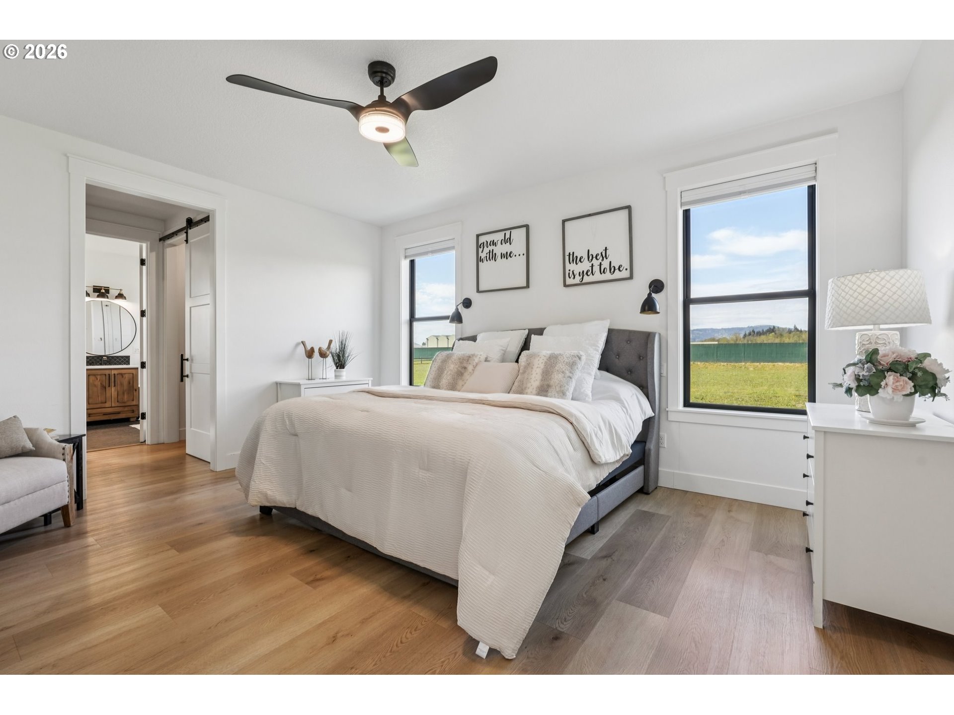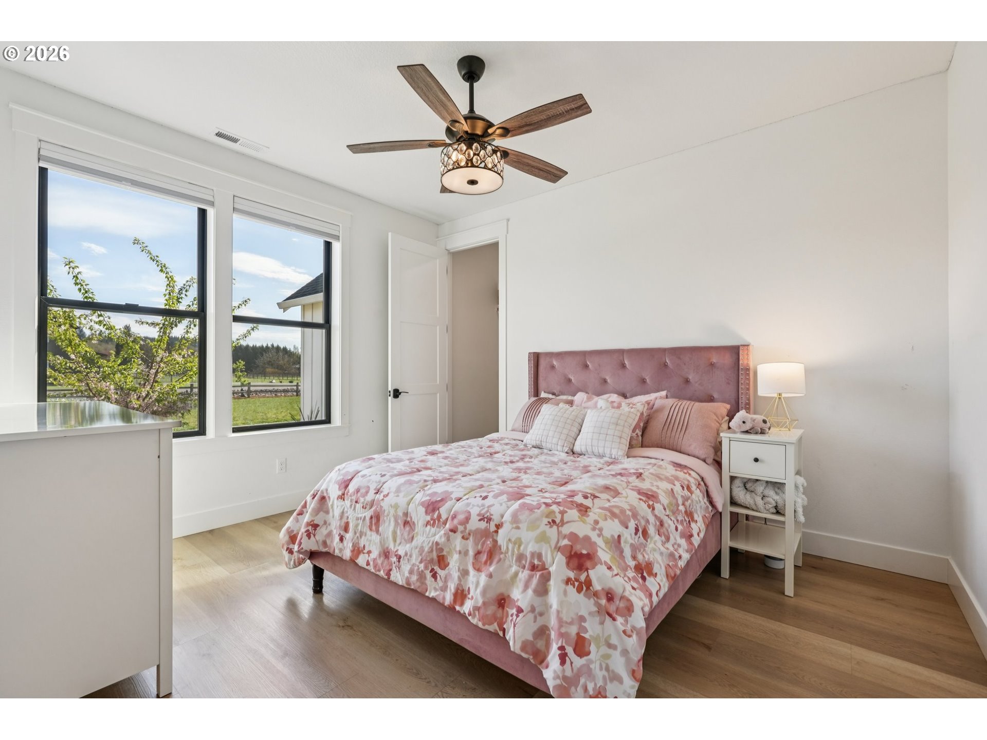 Welcome home to your custom homestead on two flat, usable acres in growing Woodland, WA! You are greeted by a thoughtfully designed circular driveway. All bedrooms are on the main level. Key features include LVP flooring throughout the living spaces, a gourmet kitchen with an oversized island, two dishwashers, and a pass-through window to the covered patio for easy entertaining. Extra-large back sliders lead to the heated back patio. The primary bedroom has heated floors. All bathrooms have stone and tile. Two full-sized washers and dryers in the tiled laundry/mud room. Central vacuum. Wide hallways and doors make for a relaxing living space. The second level has bonus rooms and a recreational or office area. The large, three-car garage has a 20-ft. wide door and a 9-ft. wide door. Irrigation covers the entire yard, and an invisible fence system is installed. There is plenty of space to design the shop and garden of your dreams! Close to I-5 for easy commuting, shopping, and Horeshoe Lake and the Lewis River for outdoor activities. Buyer to verify all information, including square footage, to their satisfaction. Available by appointment only. Be sure to see the 3D tour and floor plan. Schedule a private showing today!