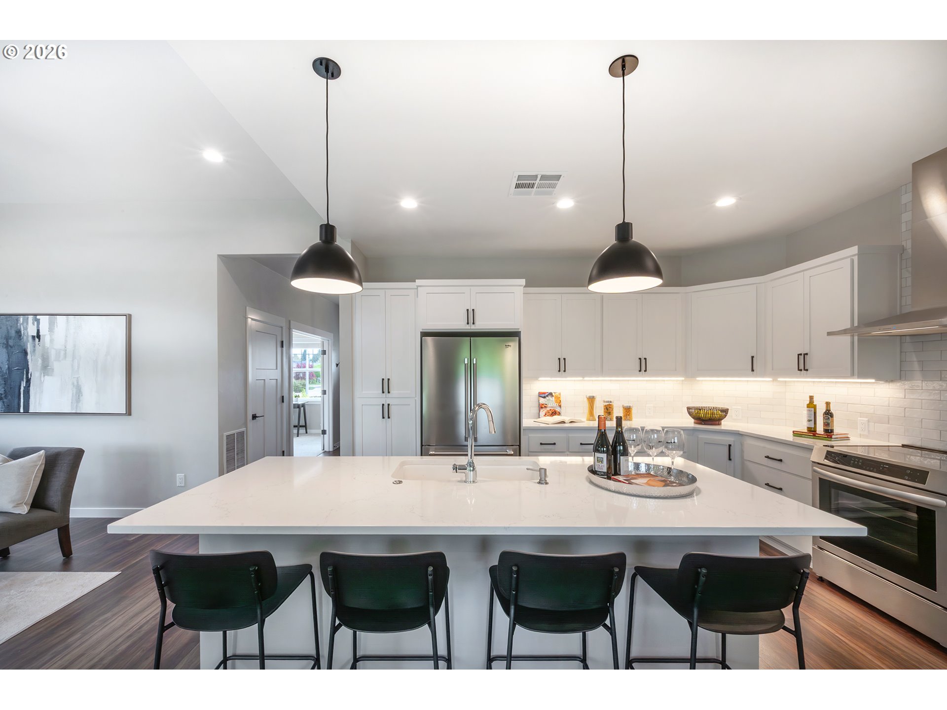 Stunning single level custom home built by Anslow & DeGeneault in the Osprey neighborhood close to the scenic riverfront. High ceilings add to the spacious feel of the open living room with gas fireplace. The kitchen features a large kitchen island, gleaming quartz counters, stainless appliances and custom cabinets. The dining area invites entertaining and includes a door to the covered patio in the fenced and landscaped back yard. The primary suite includes a luxurious bath with quartz countertops and a walk-in shower as well as a spacious walk-in closet. The oversized two car garage includes storage and a workbench. Seller added a solar system for utility cost savings.