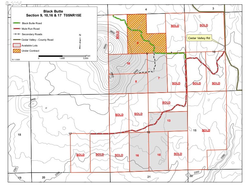 Black Butte – 80-acre Country Residential Estates. No HOA or CCR’s. Available in 80-acre sized parcels. Previously held by the timber companies in very large tracts only and not accessible to the average Buyer. Covered with trees, Ponderosa Pines, White Firs and even some Oaks mixed in. Currently in Forest/Timber Tax Deferment Status, with an approved County Timber Plan Continuance, the Property Taxes can remain ridiculously low. 5 total parcels remain to choose from in this section, all have varied terrain and topography to satisfy about anyone’s personal dreams of what their slice of heaven should look and feel like. Most of the parcels are Criss crossed with old skid roads that can still be maintained or improved for better access into the acreage for their owner’s enjoyment or to reach that perfect, one of a kind view. Wildlife galore, Bears, Cougars, Bob Cat, Elk, Turkeys and of course LOTS of Deer. Exciting viewing opportunities or your own private hunting reserve. Located just 15 minutes North of the slowly growing Agricultural Town of Goldendale, WA. on county maintained paved roads as soon as you come out of your private woodlands. Just about anything you need from Lumber to Groceries to Fuel and supplies, plus several wonderful restaurants. The town is the Klickitat County Seat and home to the historic courthouse and all the County offices full of helpful folks that want to assist you in developing your own country living dream. Goldendale is a 30-minute drive up the impressive Columbia River Gorge from The Dalles, OR. A 90-minute drive to the Portland International Airport. An hour drive to the Yakima valley and finally a 2-hour drive from the Tri-Cities. Give us a call today to arrange your private personal tour of this spectacular Pacific Northwest opportunity. Let’s Talk!