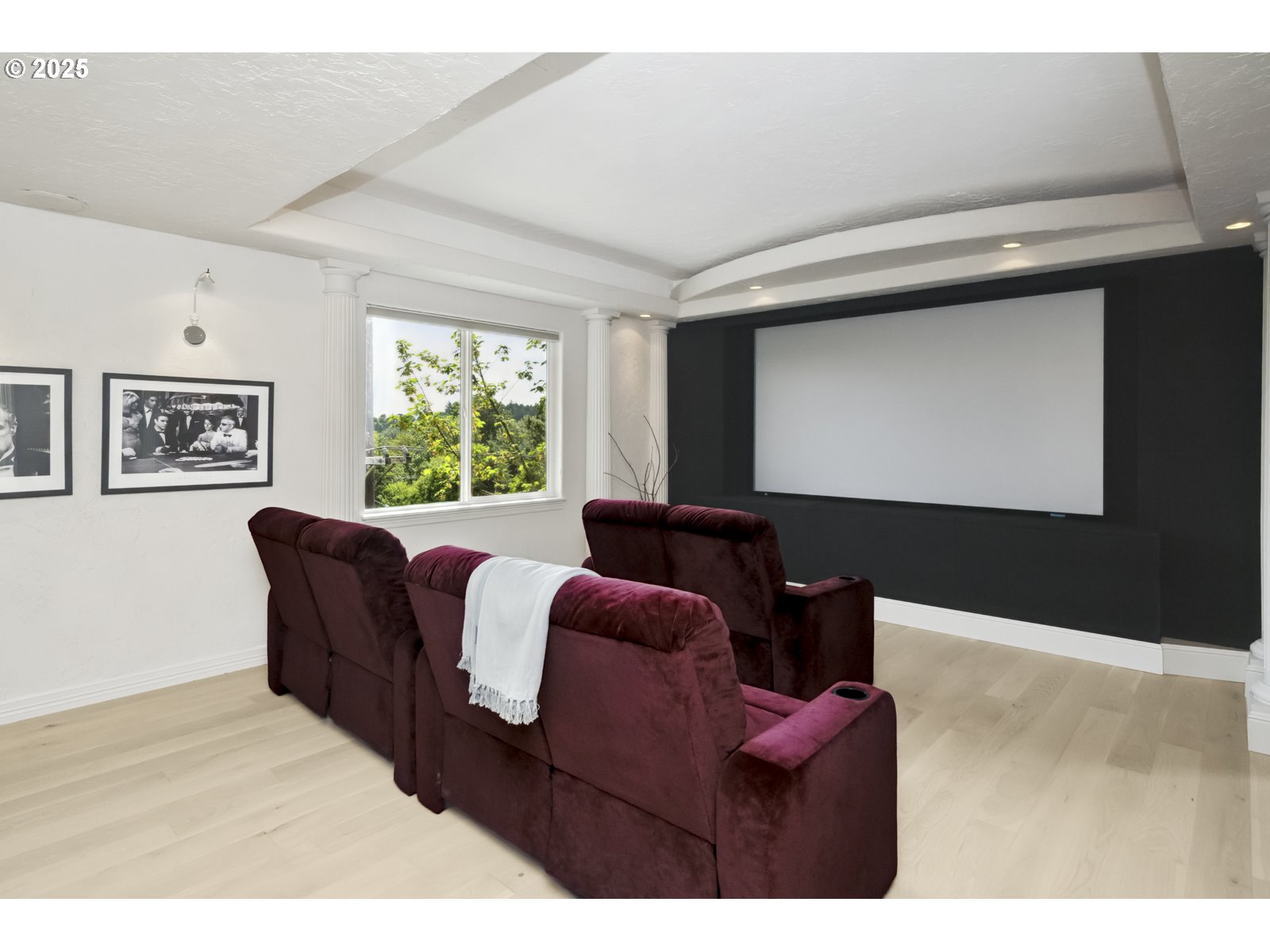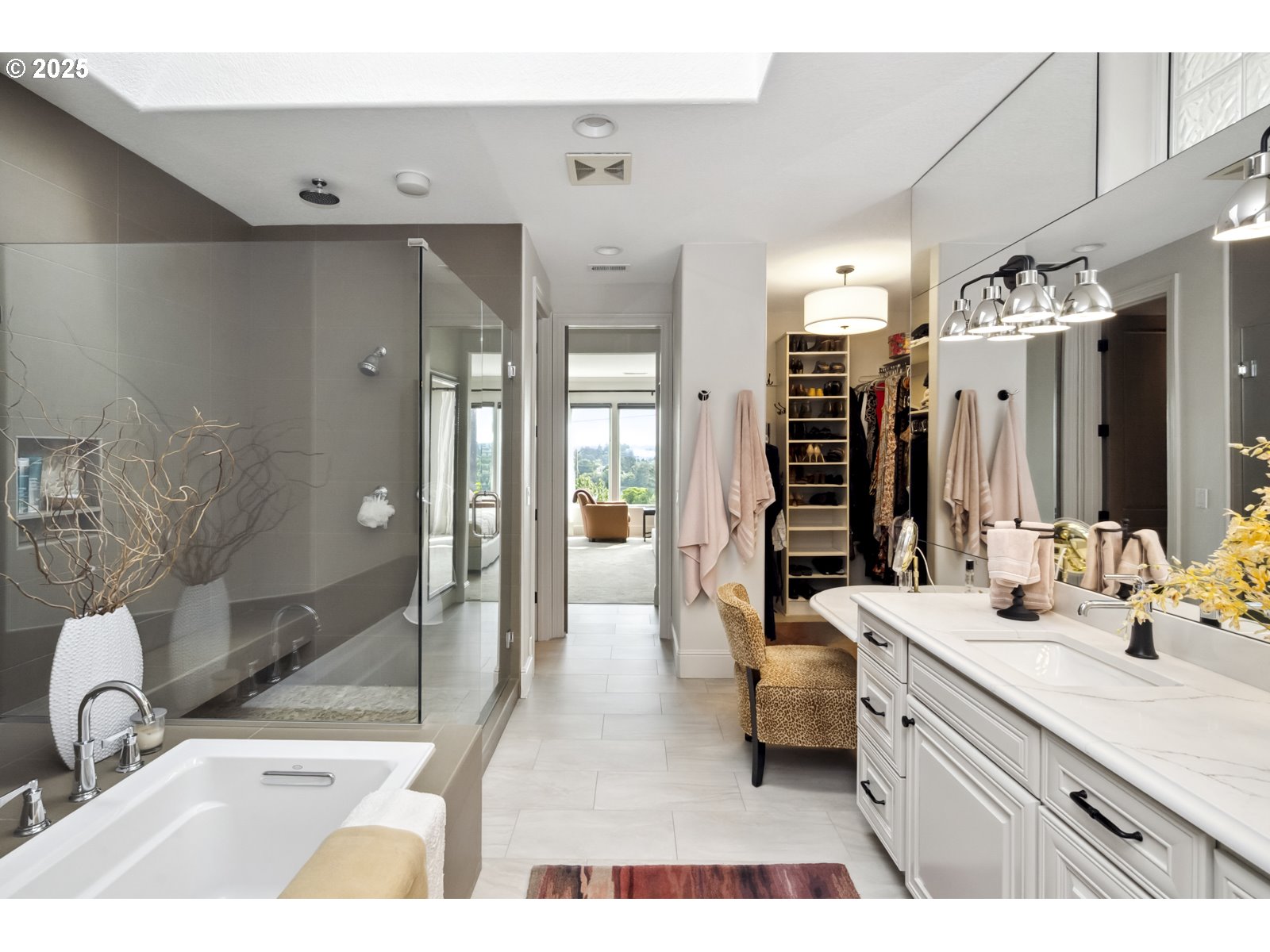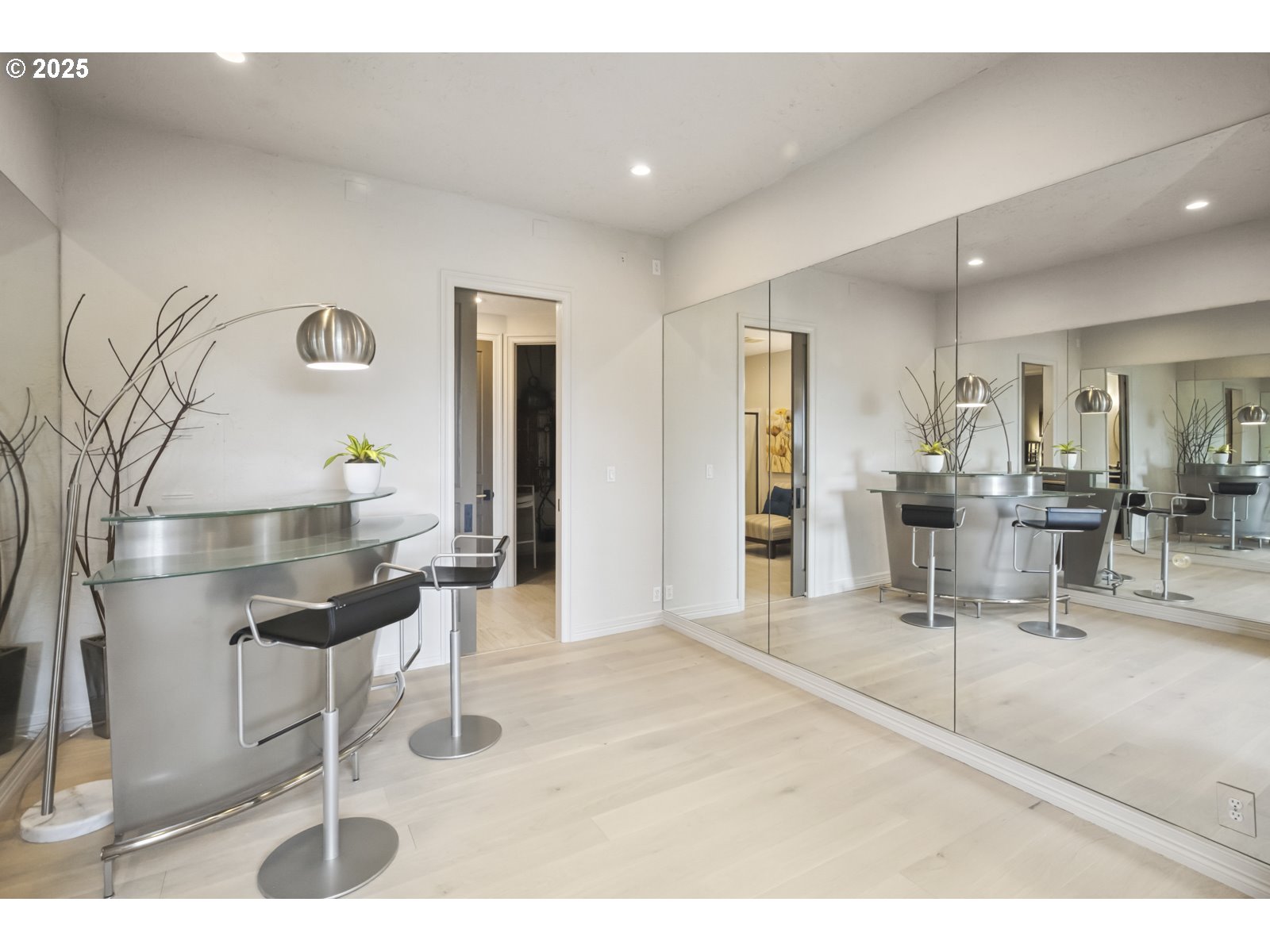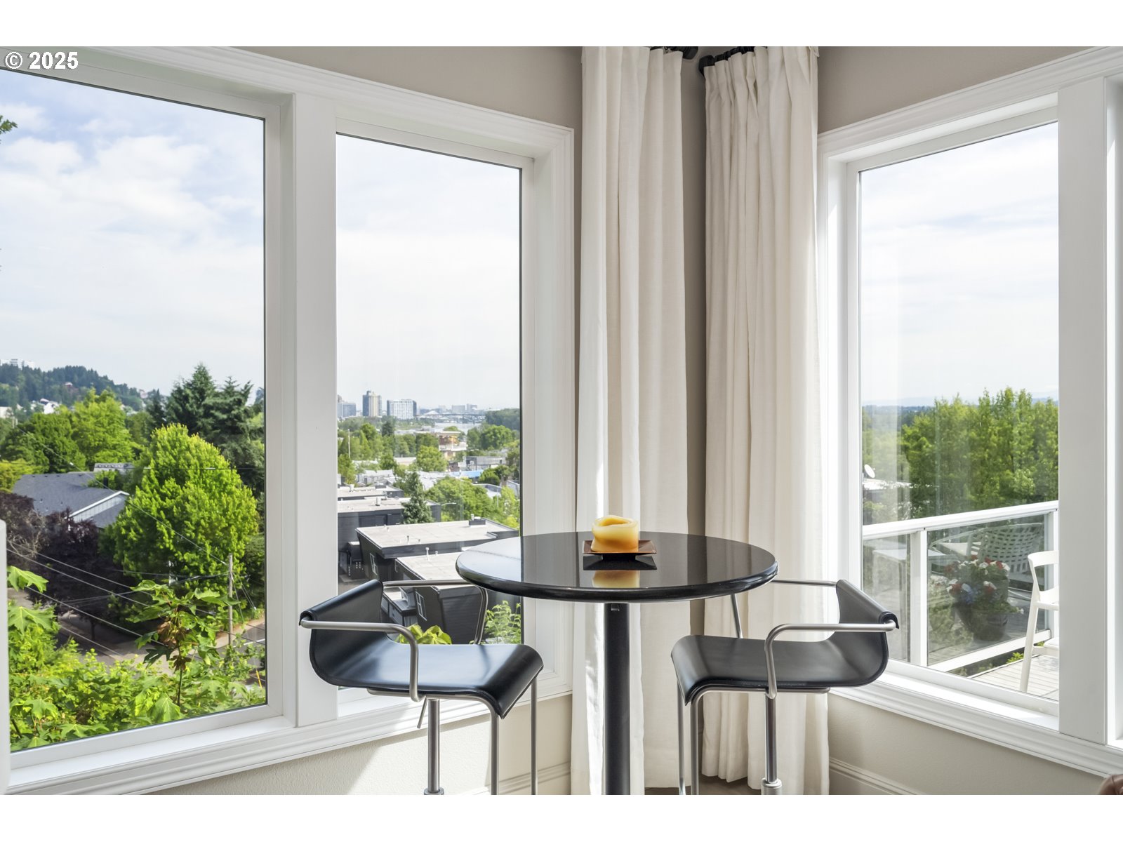 Stunning views, high ceilings and abundant natural light take center stage at this exceptional Portland home. Perched just above Portland’s South Waterfront, this exceptional residence offers sweeping views of downtown, Mt. Hood, and the Willamette River. An entertainer’s dream, the open floorplan is both luxurious and comfortable, offering seamless flow through expansive living areas designed for effortless hosting and everyday enjoyment. The gourmet kitchen is a showstopper with new quartz countertops, backsplash, and updated lighting. A cozy gas fireplace adds warmth and ambiance to the living room, while new flooring, paint and finishes throughout elevate every detail. Off the main level, you will find an expansive back deck, perfect for enjoying a sunset cocktail or summertime entertaining. The main-level primary suite offers true one-level living and includes a spacious walk-in closet with custom organizers and nearby laundry. Downstairs, you’ll find three additional bedrooms, two full bathrooms, a large recreation room with projector screen, and an Italian-inspired wine room for a touch of European charm. On the lowest level, a fully permitted 1-bedroom, 1-bath ADU with its own private entrance offers ideal space for guests, multi-generational living, or rental income (currently rented at $1950). Recent upgrades include new garage doors, brand new boiler and air conditioning and elegant linen drapery panels. An attached three-car garage and low-maintenance front yard complete this rare opportunity to live in a tucked away street overlooking Johns Landing and South Waterfront. Experience luxury, comfort, and convenience all in one breathtaking home.