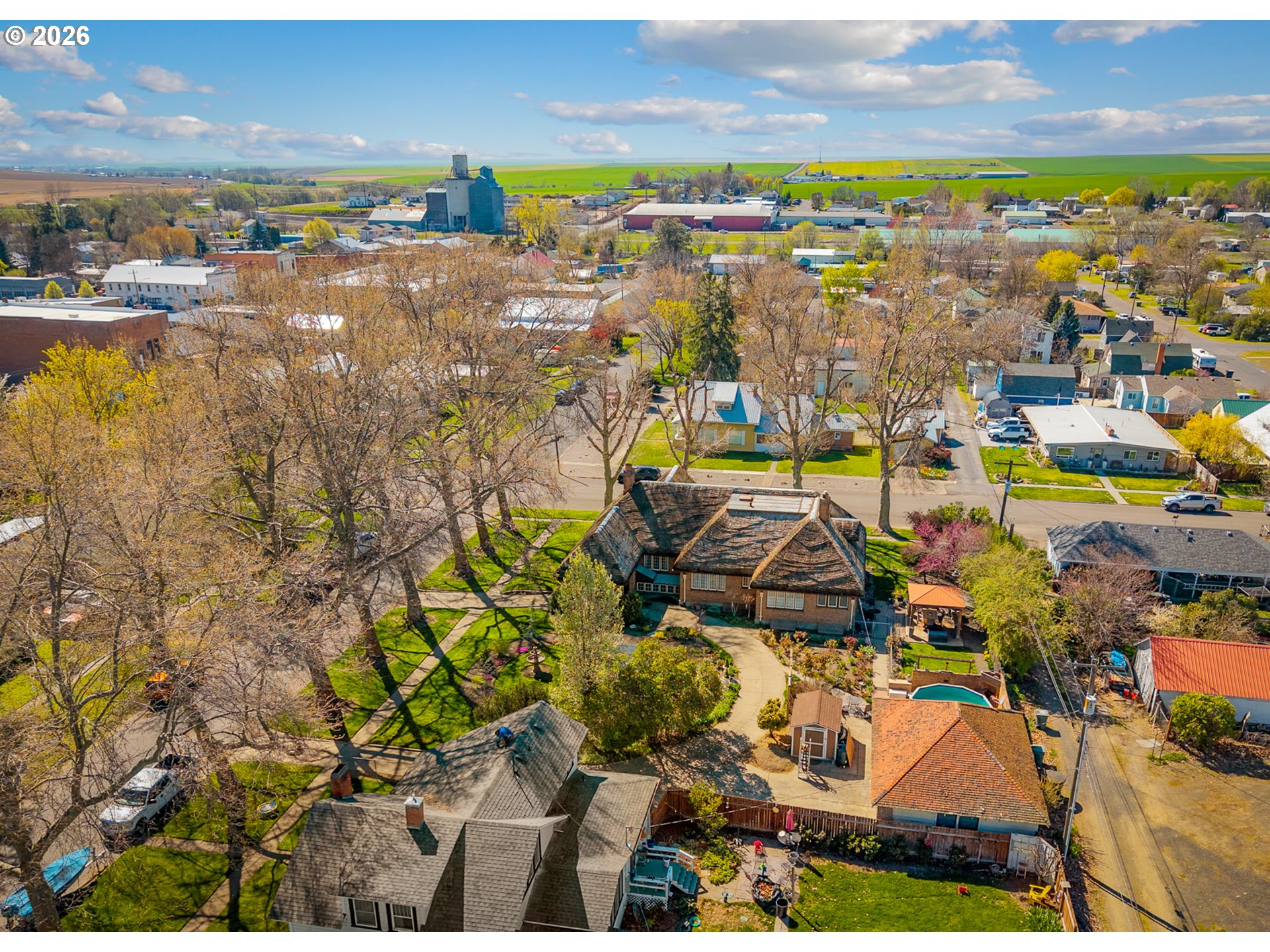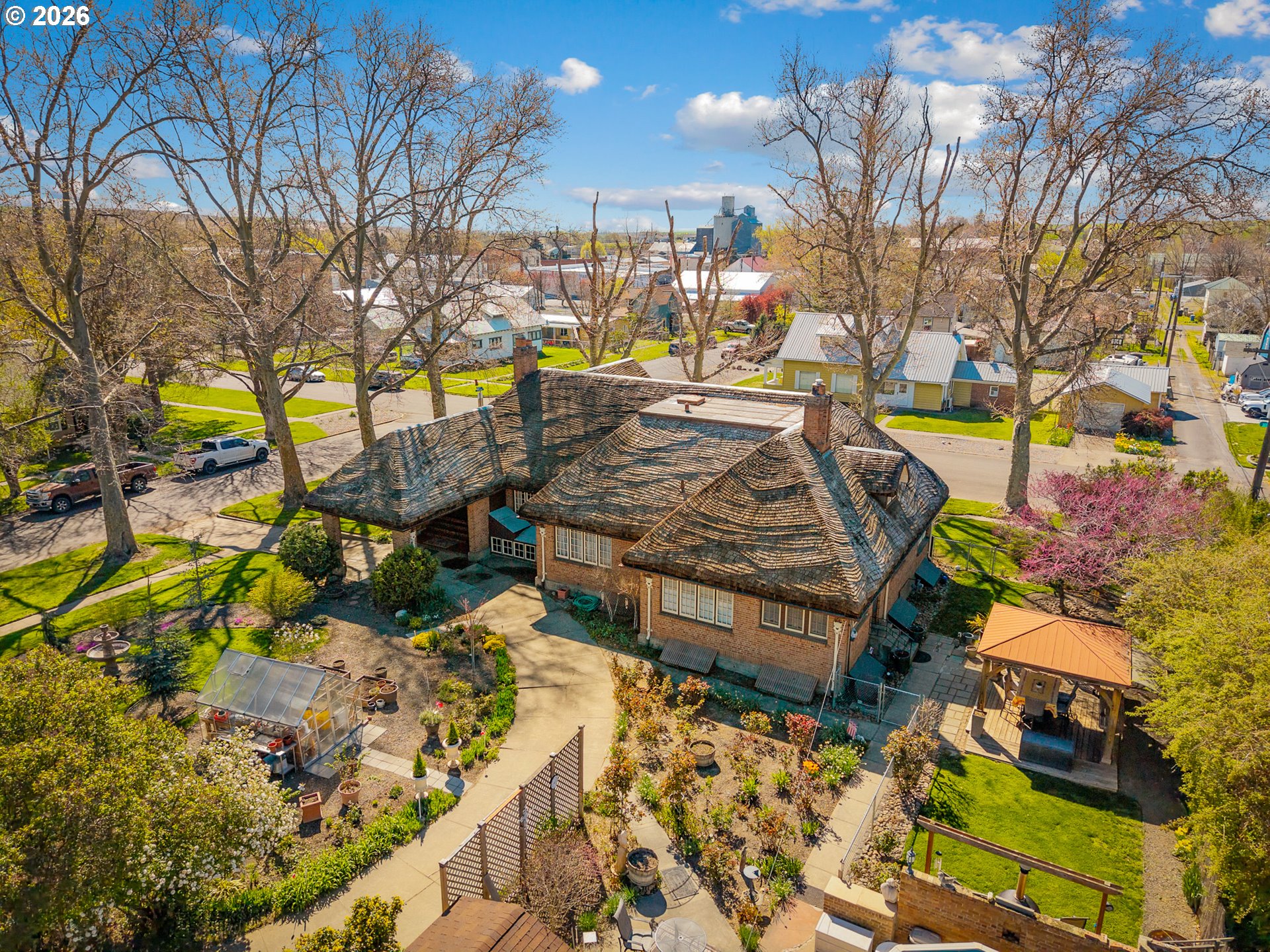 Tucked into the heart of Athena, this iconic home blends storybook charm with grand scale. Known locally as the “Gingerbread House”, this one-of-a-kind residence offers just over 6,000 square feet of living space, featuring 5 bedrooms and 2 full bathrooms, built in 1927 as the M.L. Watts House. From the moment you arrive, the home’s distinctive architecture captures your attention. A rare cedar shingle roof, crafted with a whimsical, cottage-inspired design, pairs beautifully with the timeless brick exterior—creating a look that feels both historic and unforgettable. Inside, the expansive layout offers room to spread out, entertain, or reimagine the space to fit your vision. Outside, the grounds unfold into a private, garden-rich retreat. A detached garage/shop provides excellent space for projects, storage, or hobbies, while the greenhouse and large gardening area invite you to cultivate your own slice of Oregon soil. Warmer days are made for enjoying the above-ground pool or relaxing beneath the covered gazebo, creating a setting that feels leisurely and peaceful. Lining the streets, mature sycamore trees cast a shifting canopy of shade throughout the day, giving the property a calm, sheltered feel and adding to its timeless presence. Rich in character and local lore, this property stands as one of Athena’s most recognizable homes. Whether you're drawn to its architectural significance, generous square footage, or the opportunity to own a true landmark, this residence offers a rare chance to step into a piece of Eastern Oregon history. Schedule your showing today!