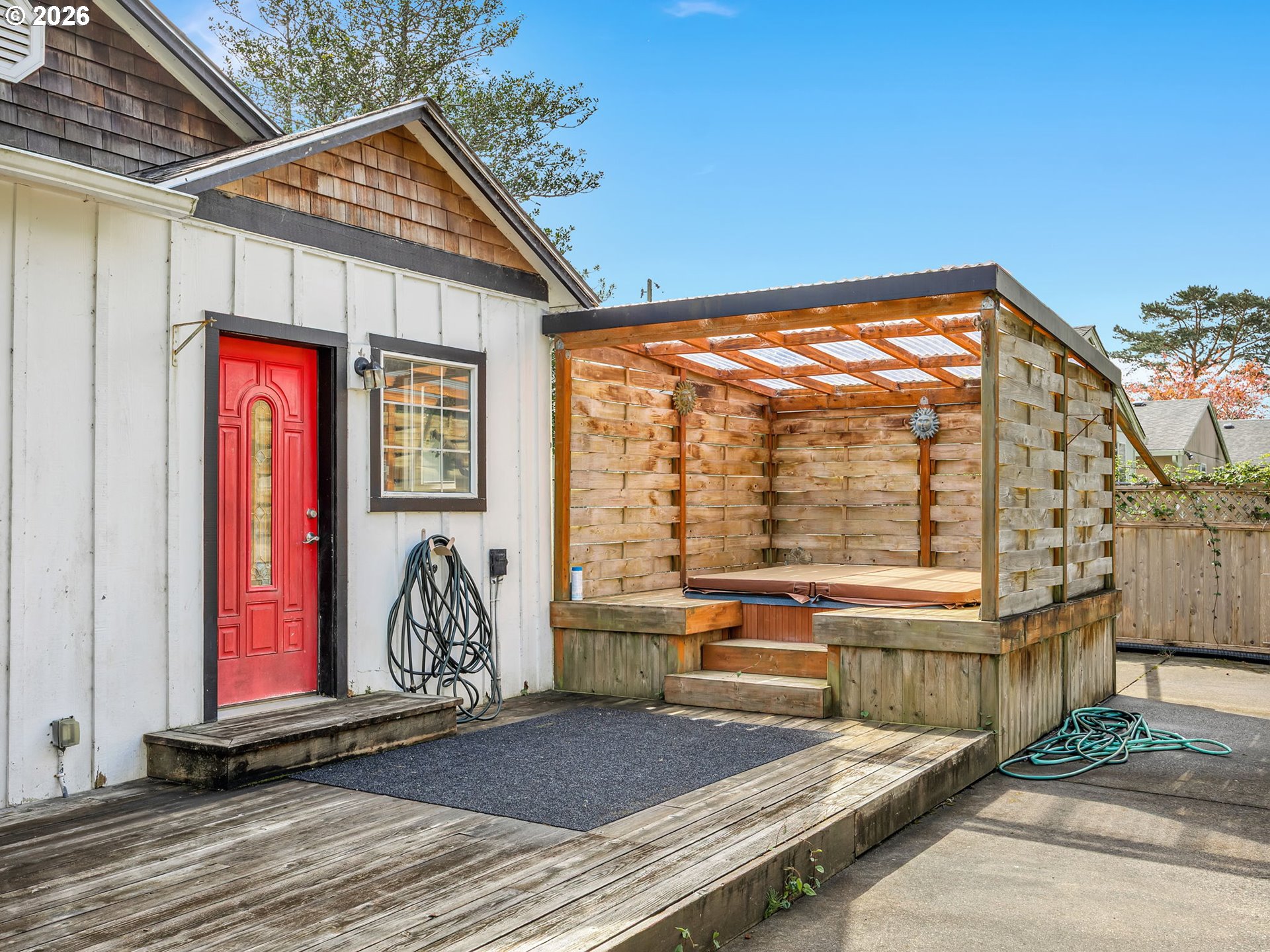 Charming one level cottage on a large fenced lot backing to greenway in a convenient central location. Remodeling over the last 5 years includes roof and gutters (2022), wiring, plumbing, insulation, kitchen, windows, and french drains. All appliances and washer/dryer included. Detached garage with covered breezway access to the house, built in hot tub and deck in back yard with greenway so no neighbors behind the house for privacy. Come take a look - We think you'll love what you see!