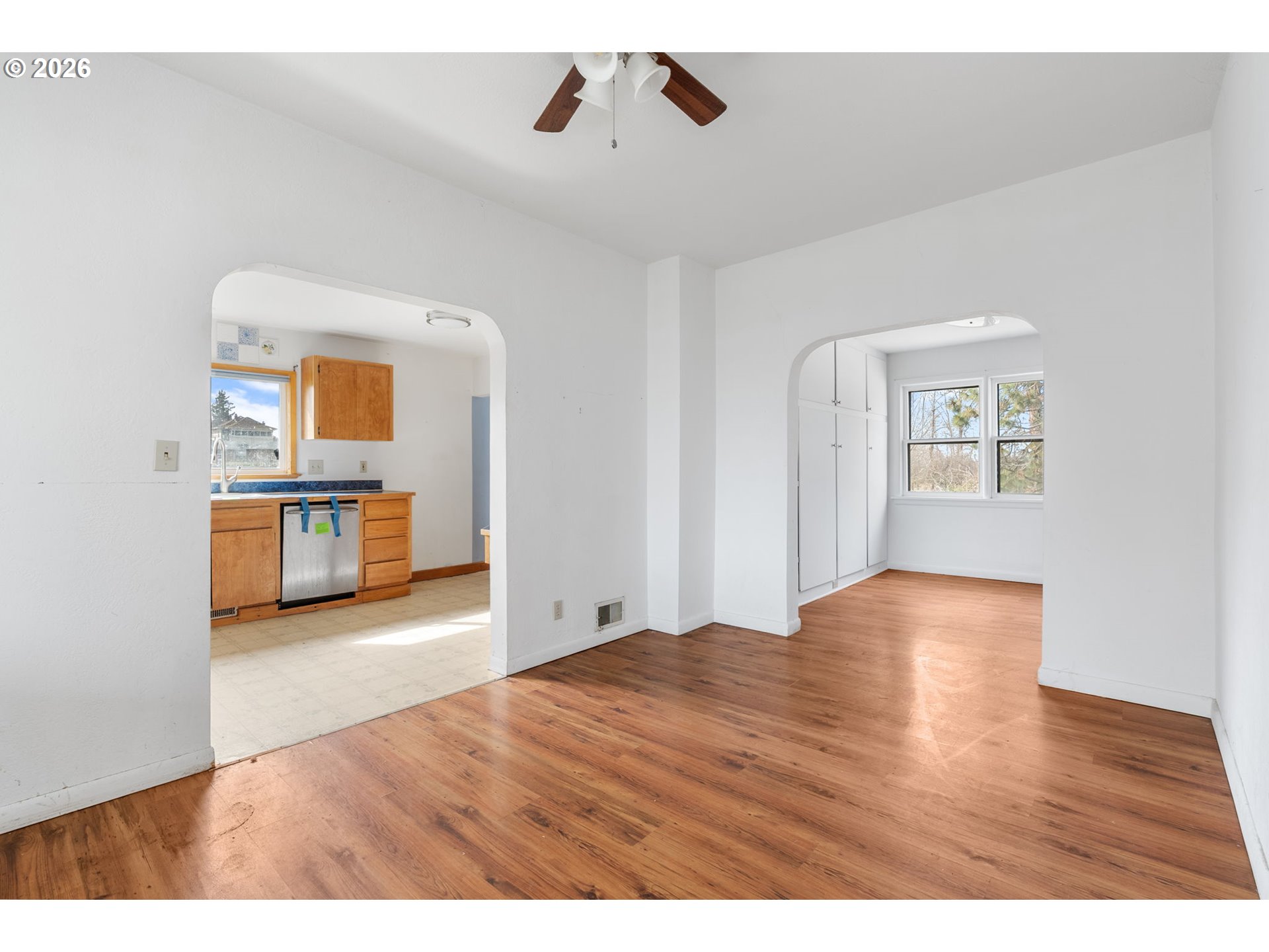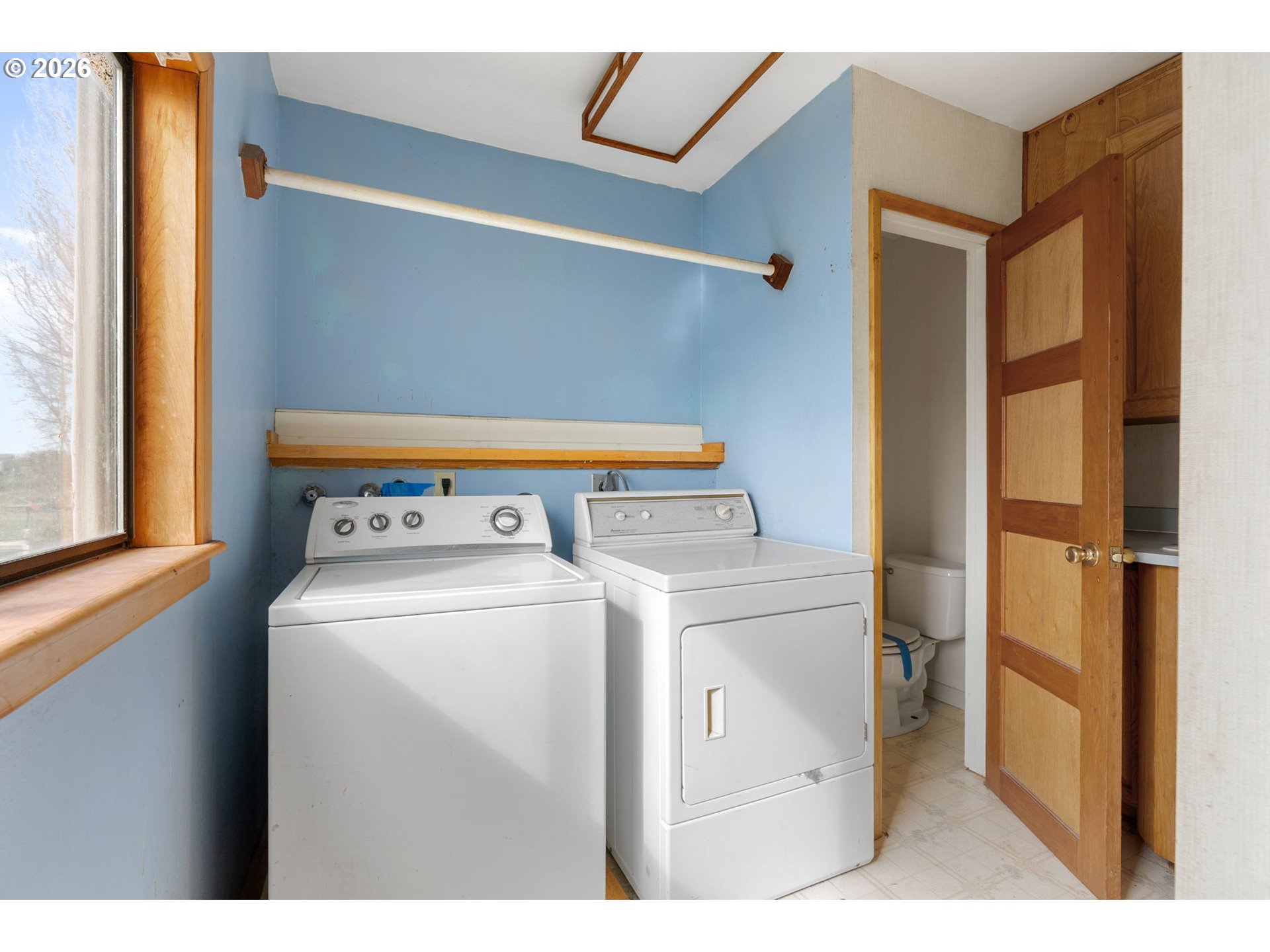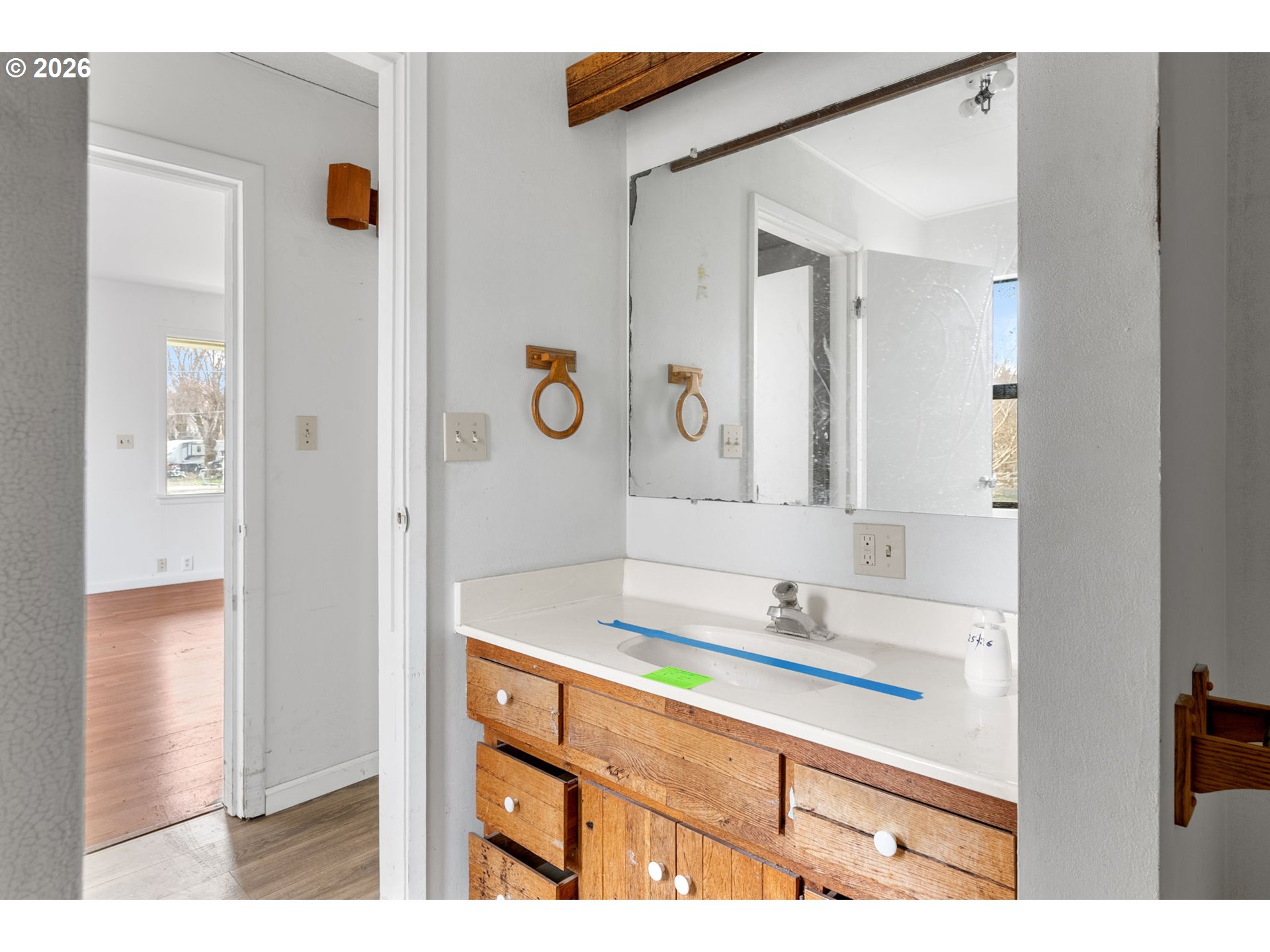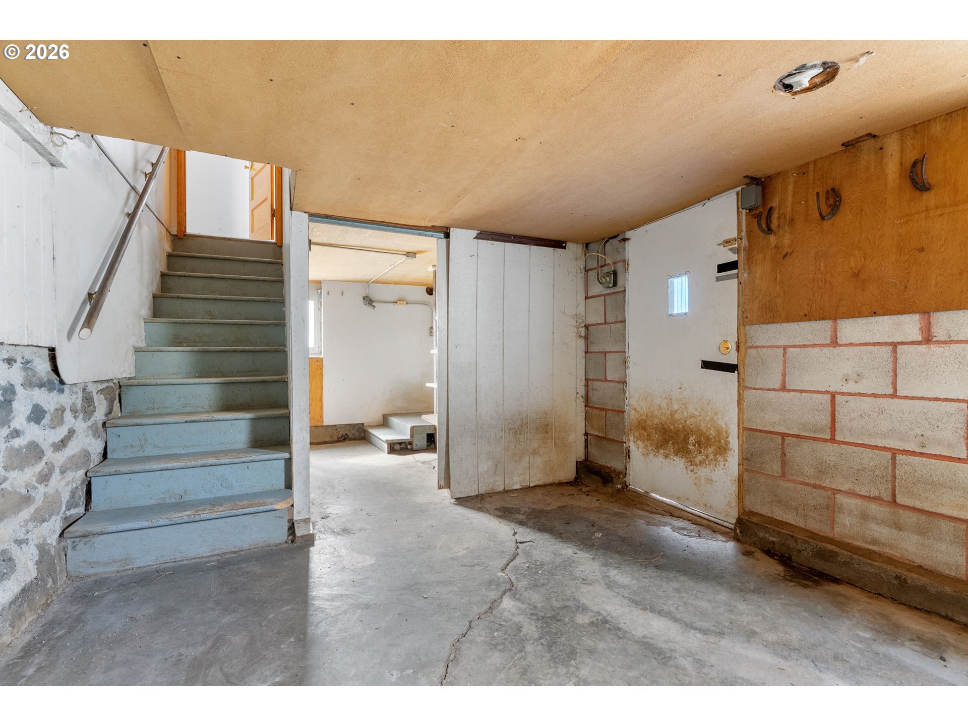 This 1920-built 3 bedroom, 2.5 bath home offers approx. 2,061 above grade square feet on a level 0.86-acre lot in Goldendale. This farmhouse features vinyl siding, a composition roof, a covered front porch, and a fenced front yard, with a detached one-car garage plus ample off-street and RV parking. Additional outbuildings include two horse stalls, a tack room, hay storage, and fenced pasture, along with a separate fenced garden area. The property includes a well for water service and public sewer, with city views. Interior spaces include living areas with high ceilings, multiple built-in shelving units, a primary bedroom on the main level, two upper bedrooms, and bathrooms on both levels. The unfinished basement provides exterior access and storage space,