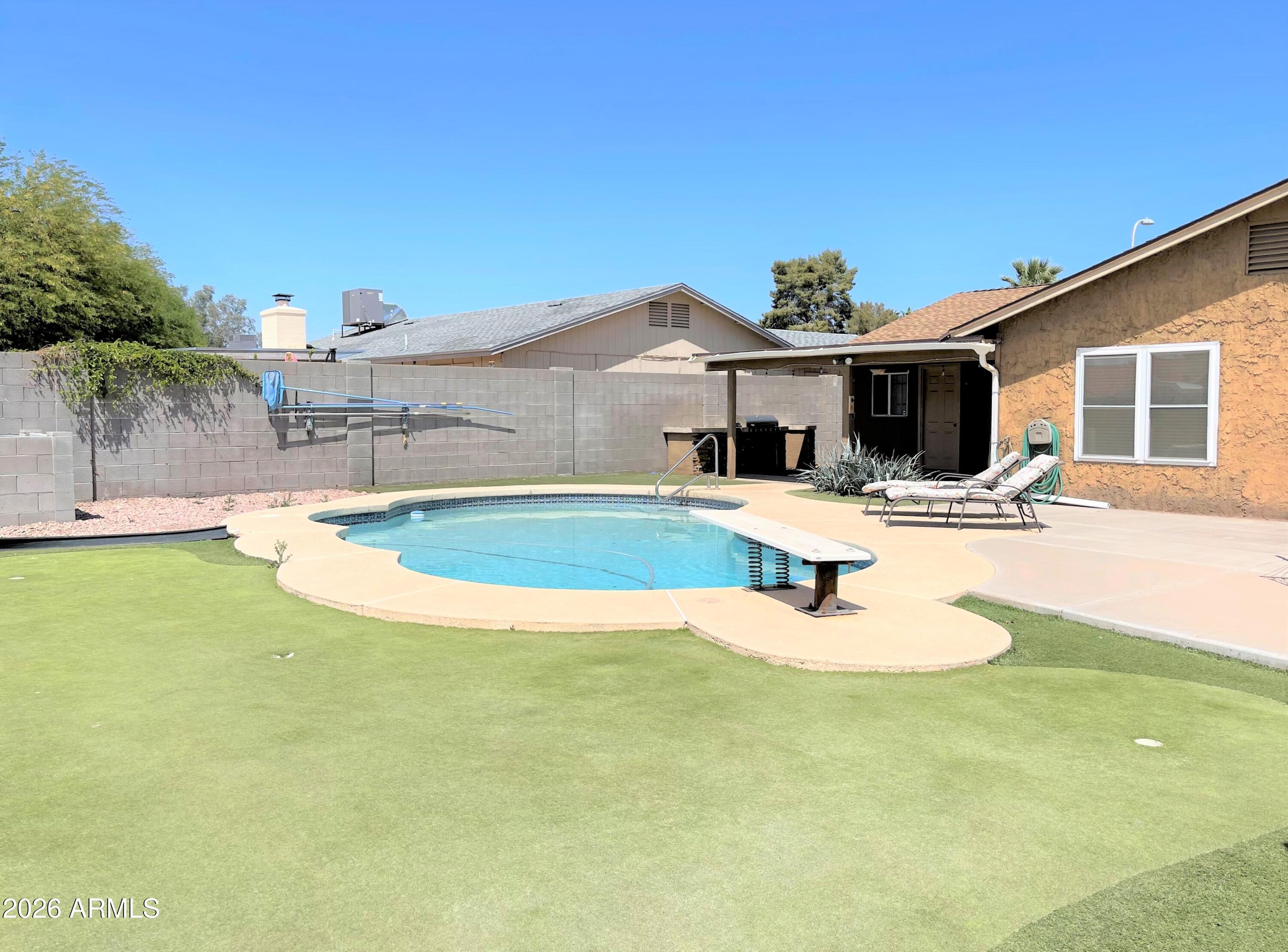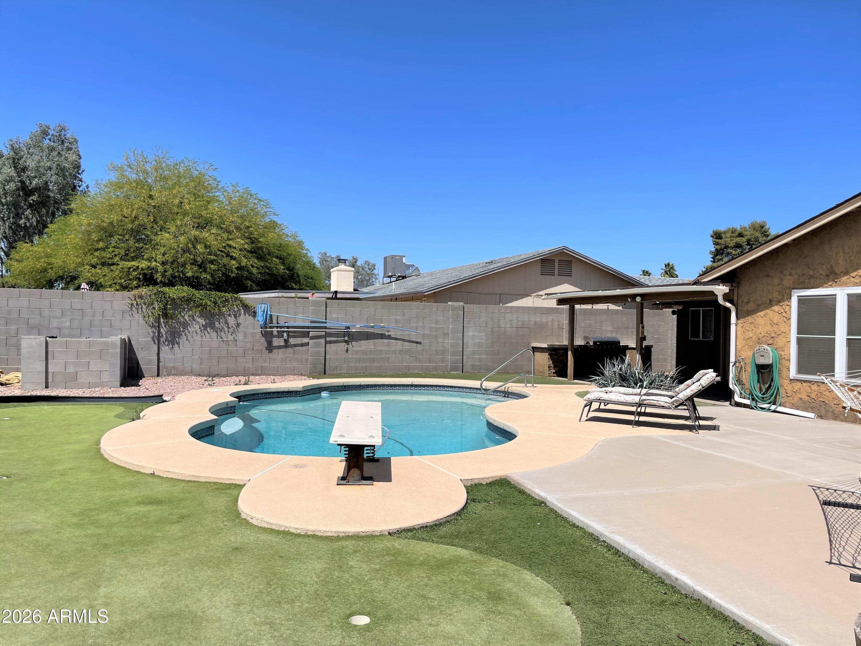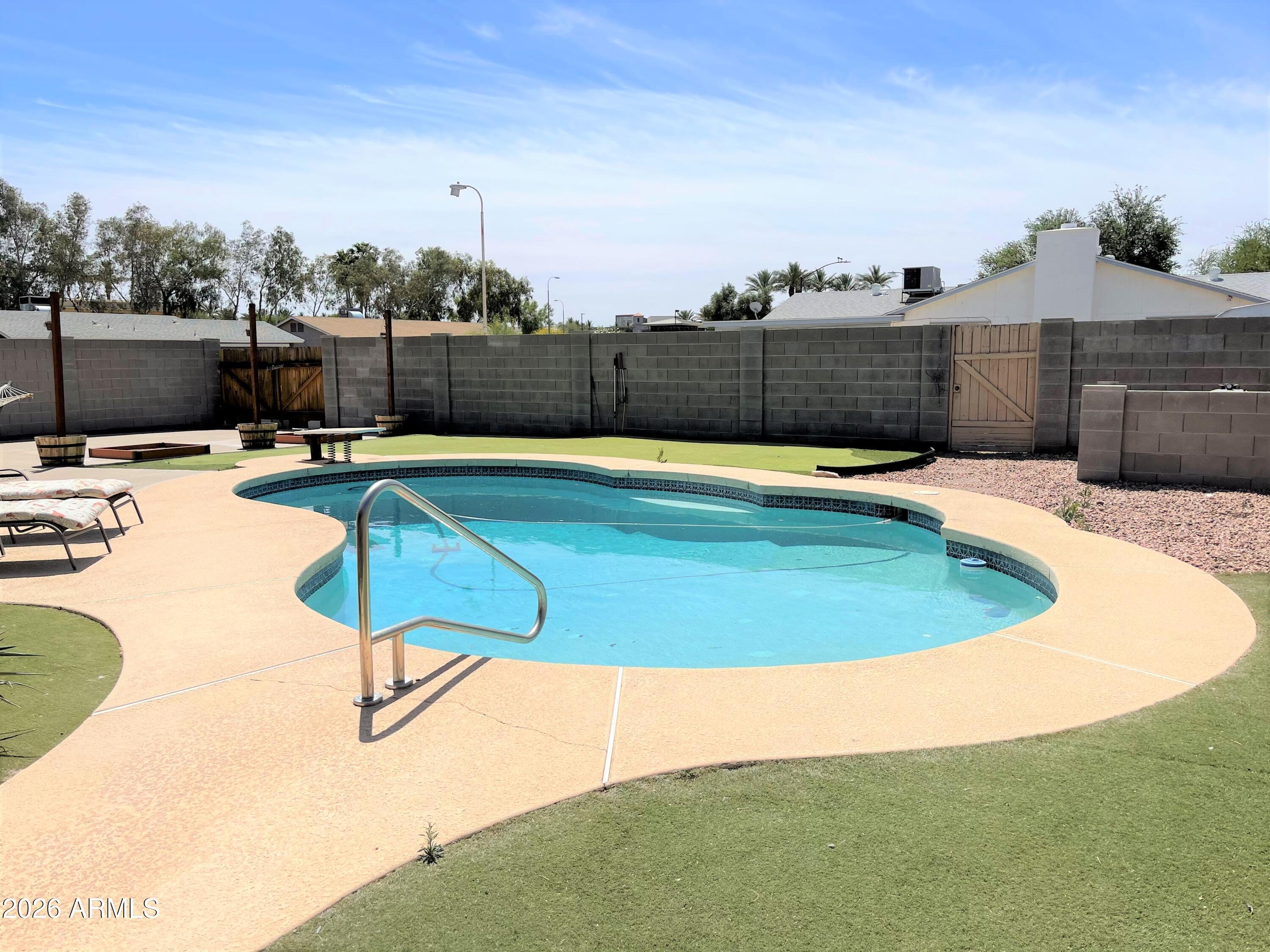 No Application Fees! Single level 3 bedroom, 2 bathroom Chandler home situated on a large corner lot with a private pool and generous outdoor space. The home features neutral paint throughout, wood laminate and tile flooring in all main living areas, carpeting in two bedrooms, ceiling fans in each room, upgraded window blinds, and remodeled bathrooms. The kitchen includes granite countertops, tile backsplash, breakfast bar, large pantry storage room, ceramic top electric range, dishwasher, and refrigerator. The oversized backyard is designed for entertaining and outdoor living with a sparkling pool, extended patio area, covered patio, and RV gate. Located near Chandler Boulevard and McClintock Drive, this home offers convenient access to Loop 101 and Loop 202, Chandler Fashion Center, Downtown Chandler, shopping, dining, and neighborhood schools. The location provides excellent connectivity throughout the East Valley while maintaining a residential neighborhood setting.